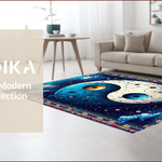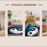 Ultra Soft Area Rug, Non Slip, Stain Resistant, Washable Area Rugs for Living Room, Bedroom, Boho Yin Yang Trippy(Blue) Overview: