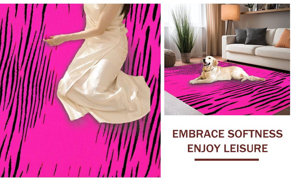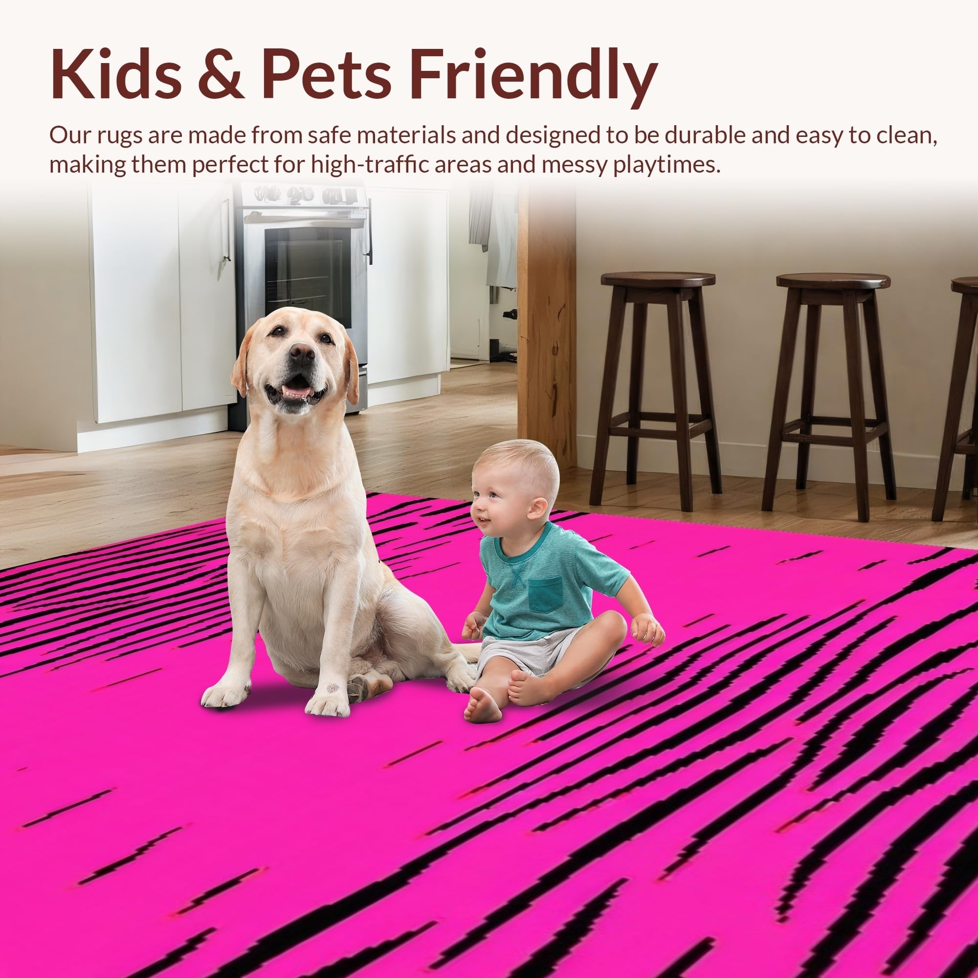 Ultra Soft Area Rug, Non Slip, Stain Resistant, Washable Area Rugs for Living Room, Bedroom, Bold Abstract Animal Print Style(Pink) Overview: