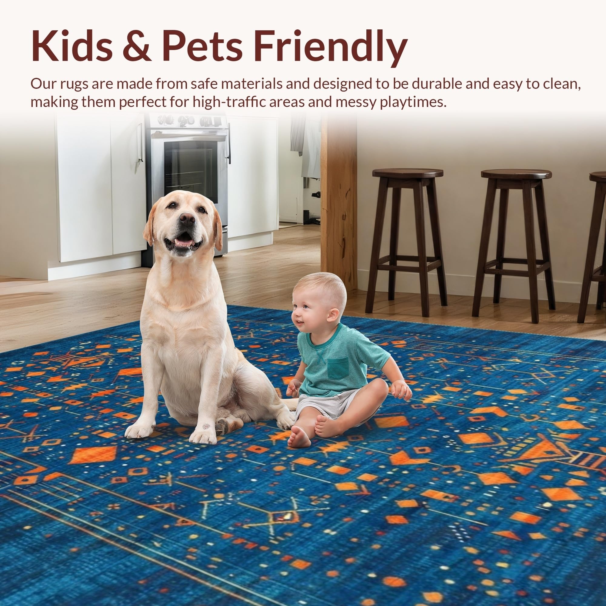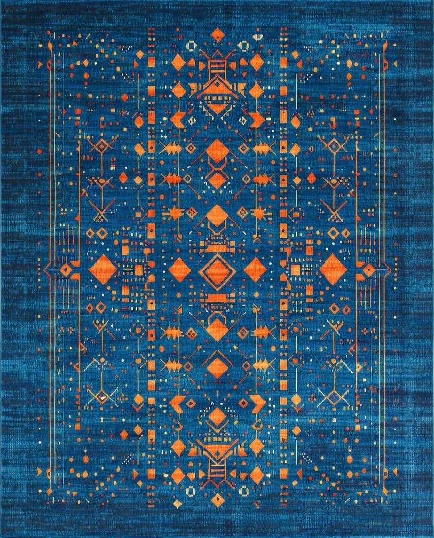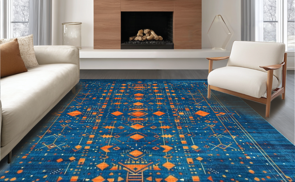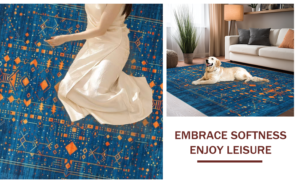 Ultra Soft Area Rug, Non Slip, Stain Resistant, Washable Area Rugs for Living Room, Bedroom, Bold Abstract Color Block Composition(Blue) Overview: