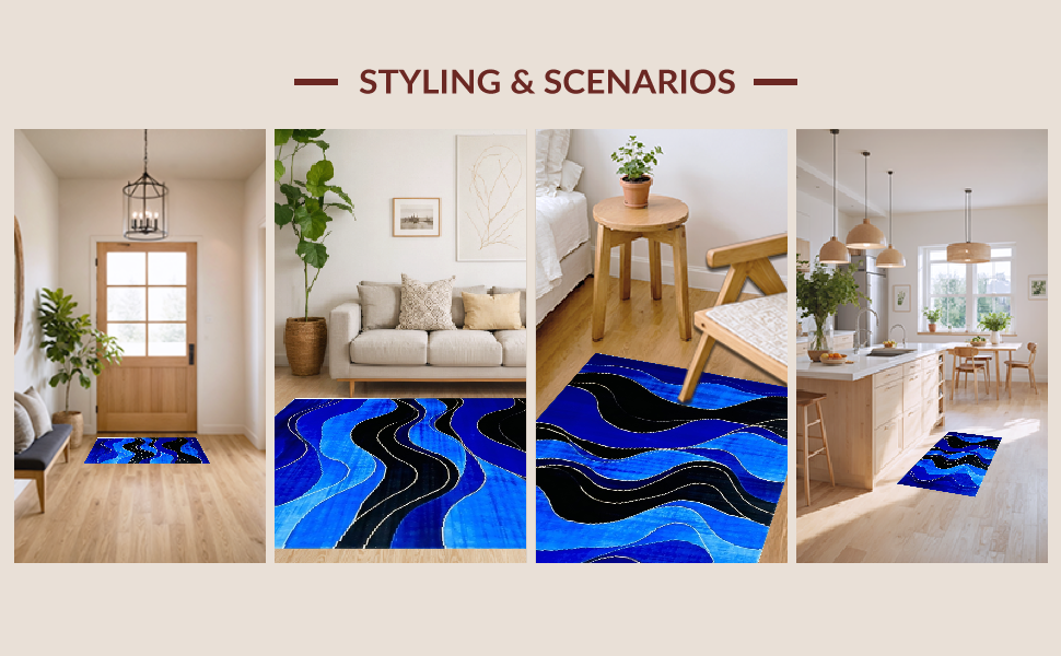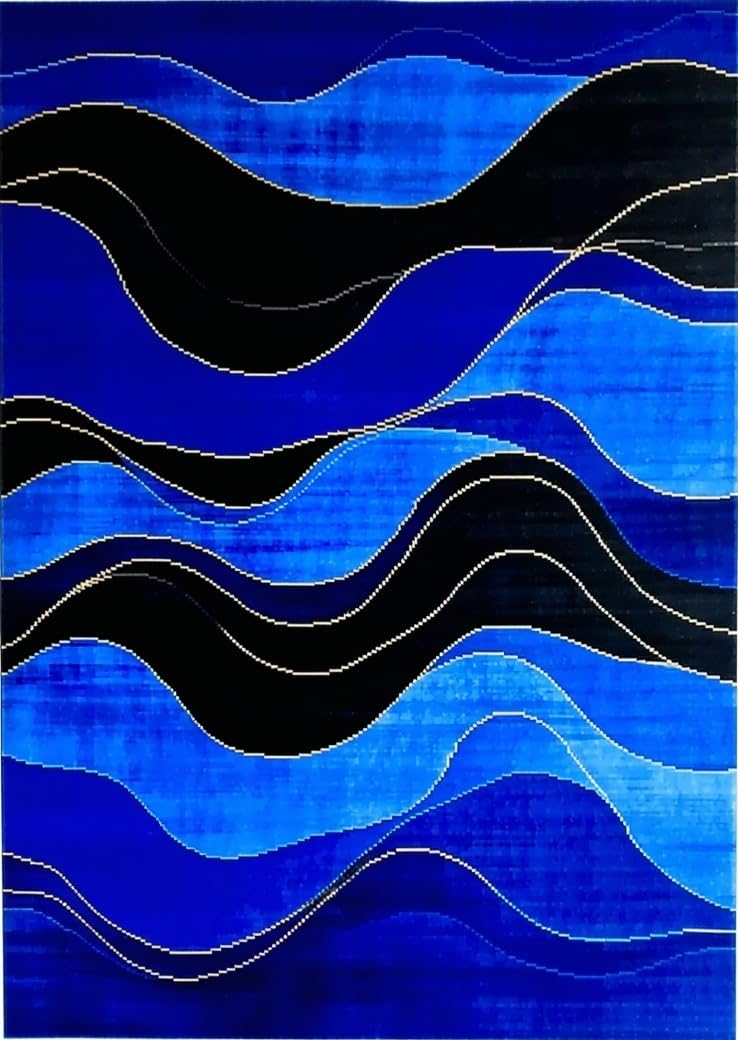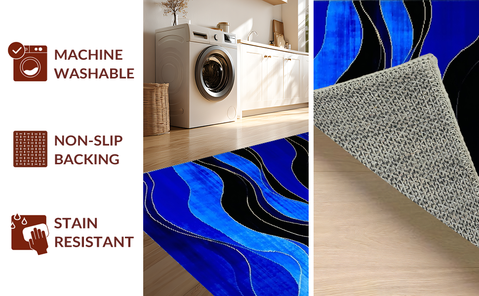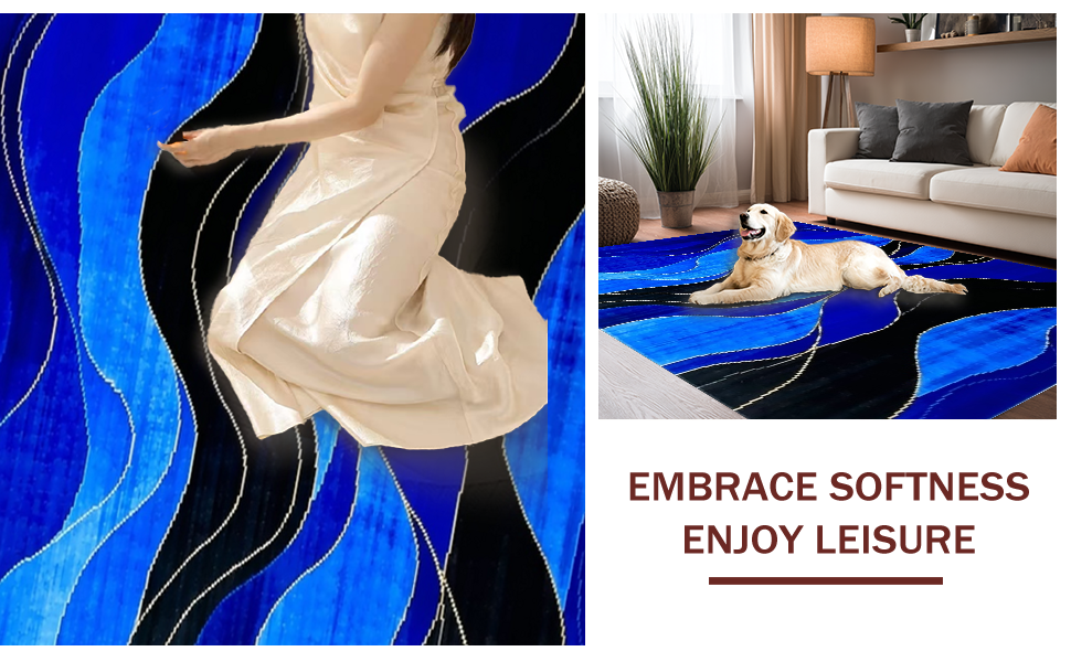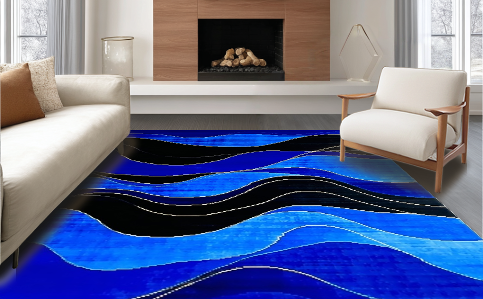 Ultra Soft Area Rug, Non Slip, Stain Resistant, Washable Area Rugs for Living Room, Bedroom, Bold Abstract Texture Harmony(Blue) Overview: