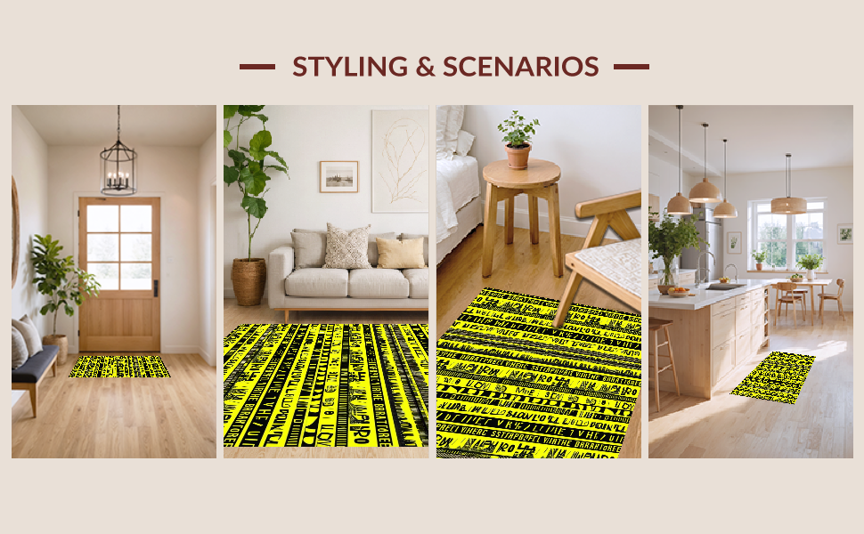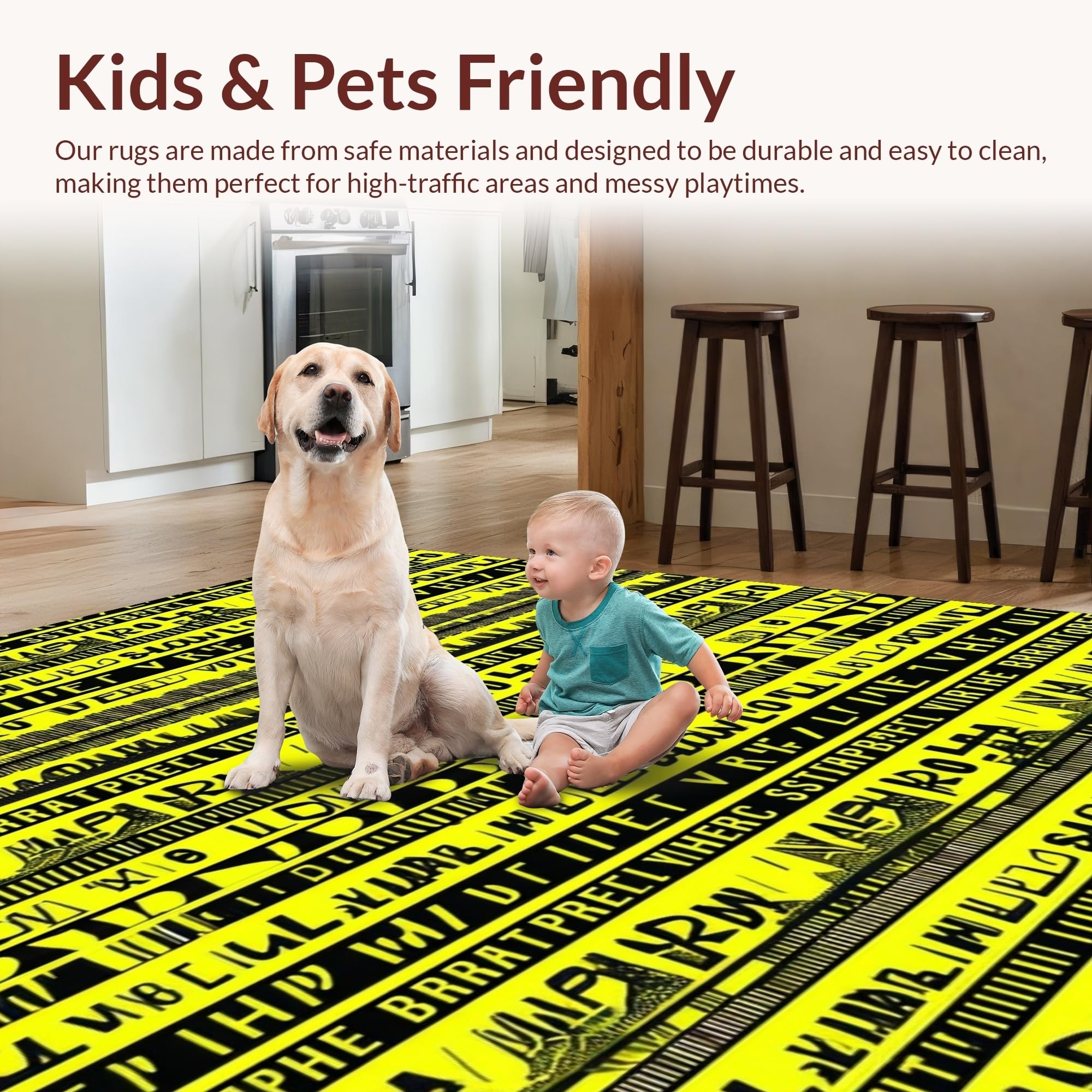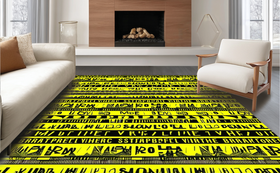 Ultra Soft Area Rug, Non Slip, Stain Resistant, Washable Area Rugs for Living Room, Bedroom, Bold Black and White Lettering(Black) Overview: