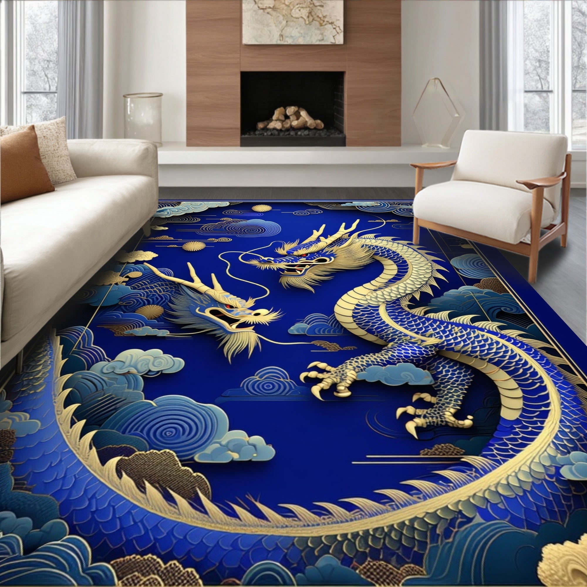 Flatwoven High Traffic Area Rug, Bold Toned Illustration, Non Slip, Stain Resistant, Washable Area Rugs for Living Room, Bedroom (Blue) Overview: