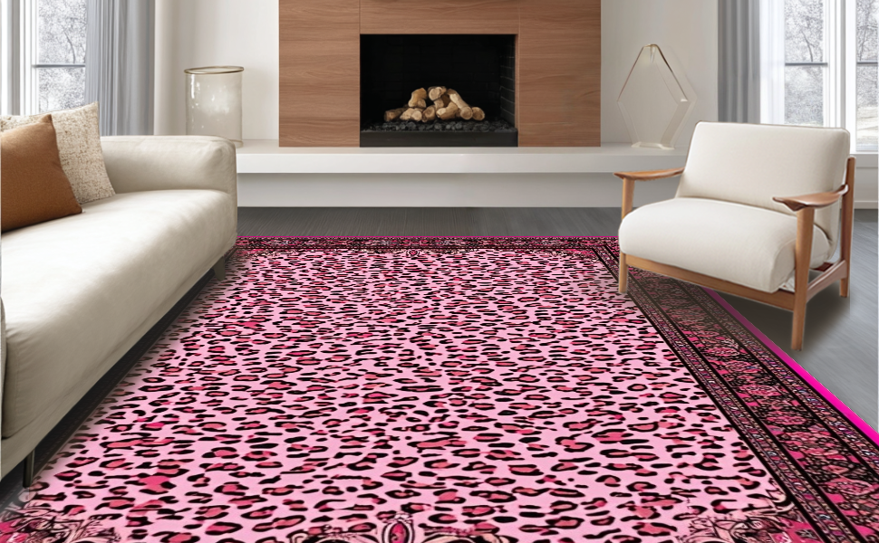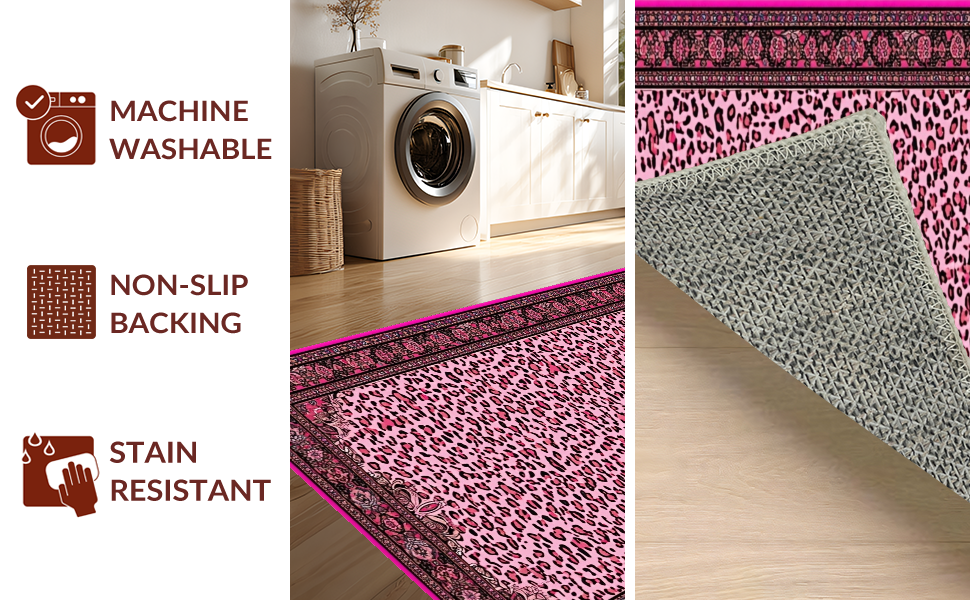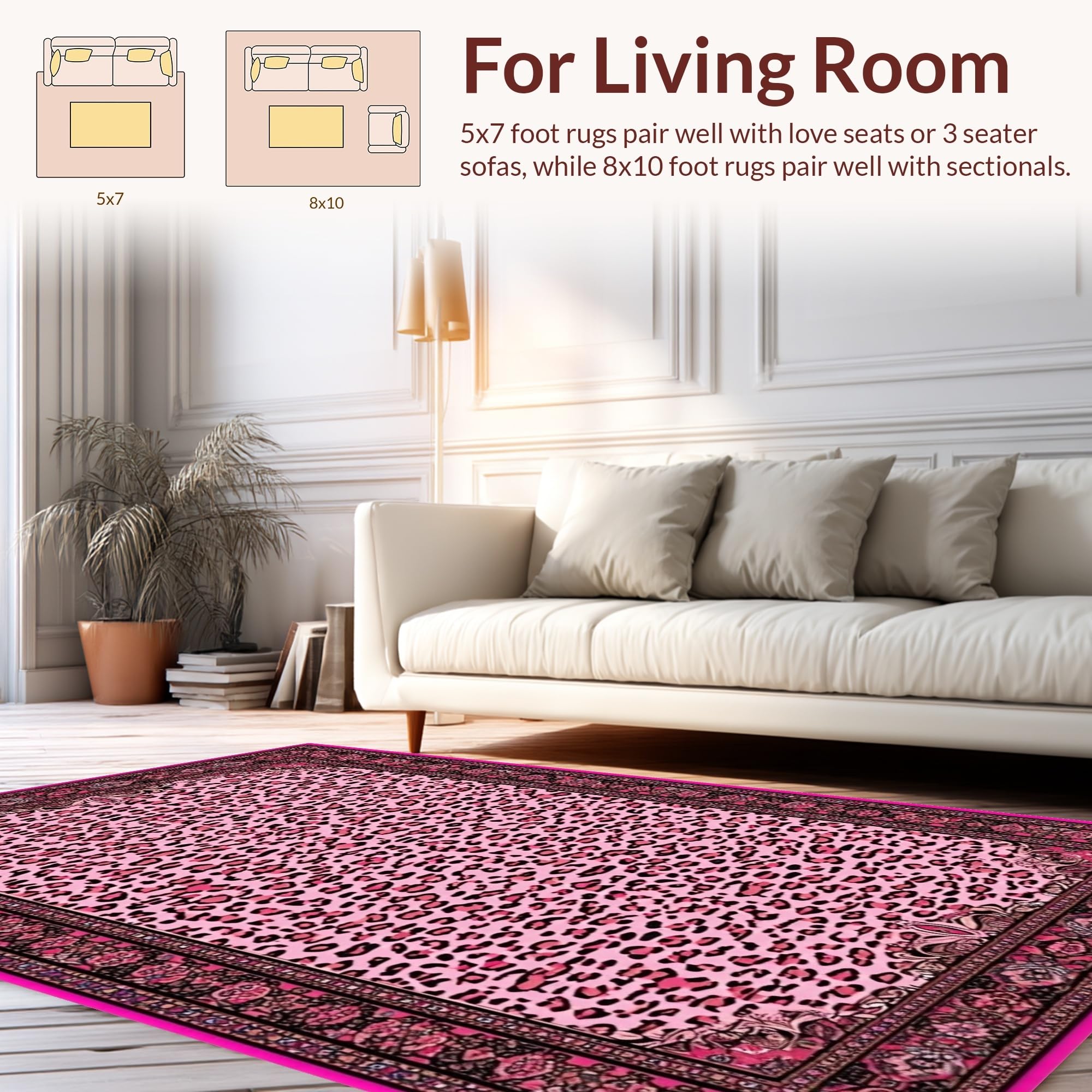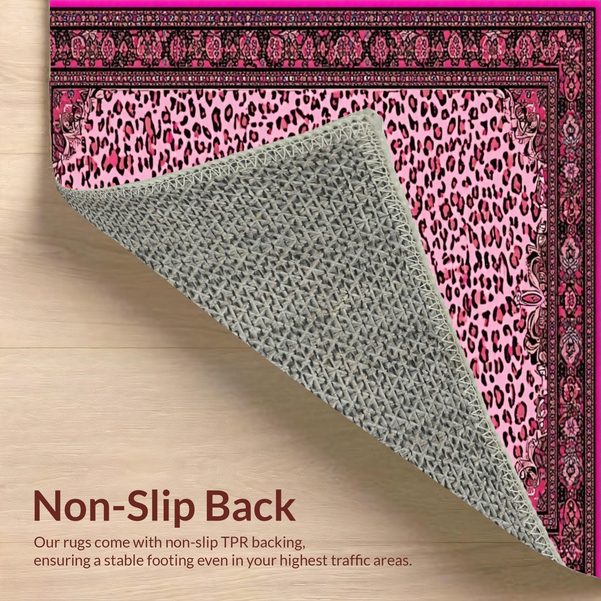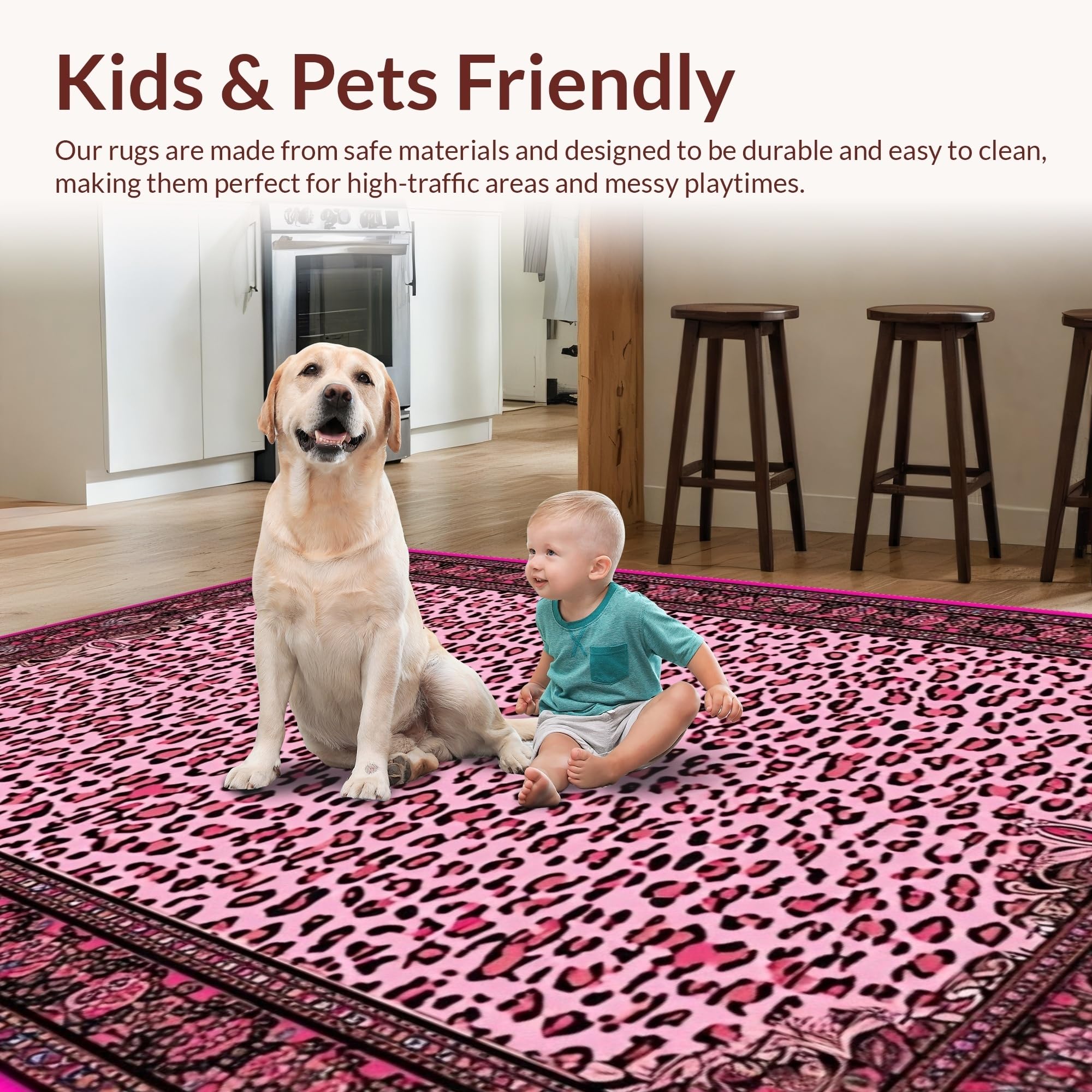 Ultra Soft Area Rug, Non Slip, Stain Resistant, Washable Area Rugs for Living Room, Bedroom, Bold Brown and Pink Fusion(Pink) Overview: