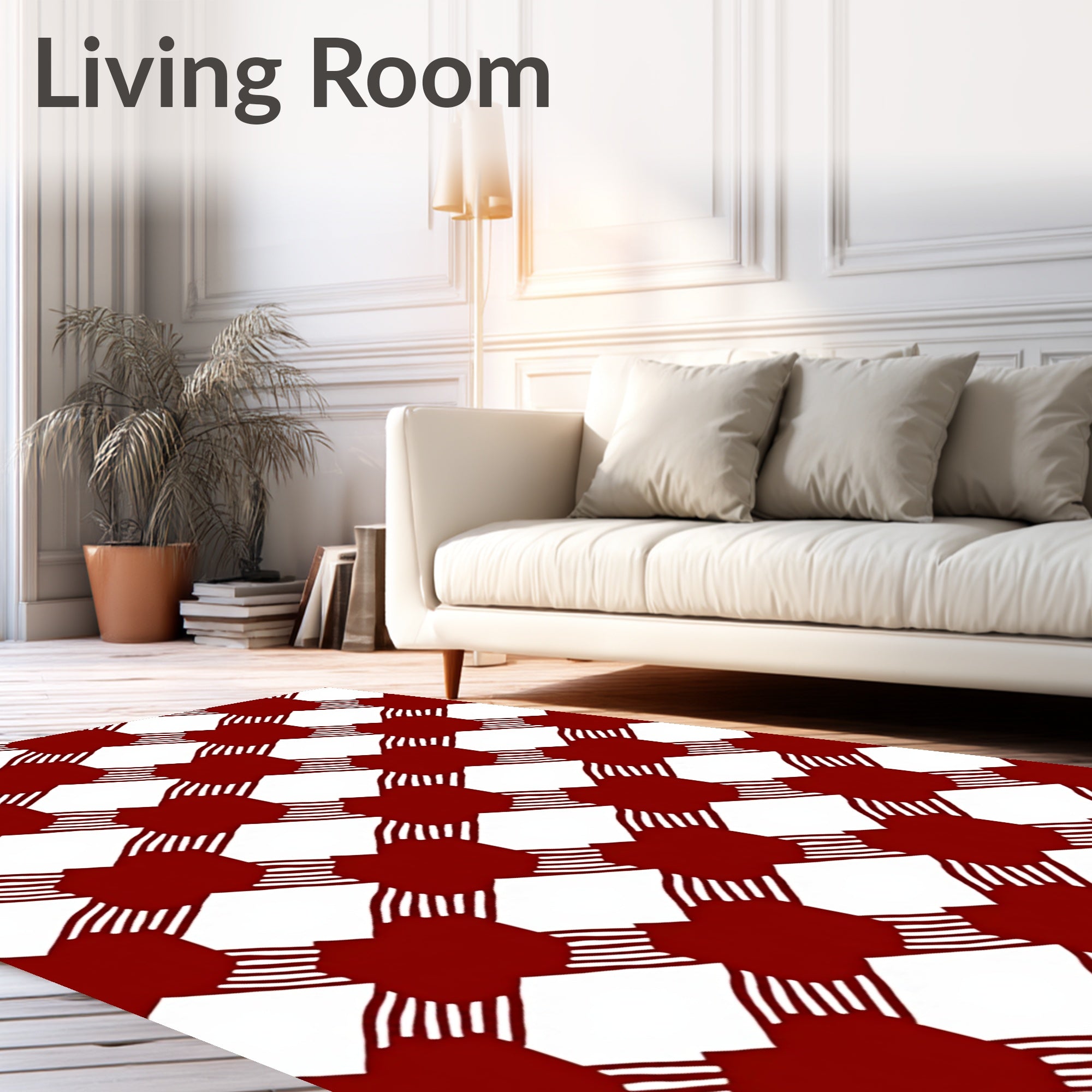 Ultra Soft Area Rug, Non Slip, Stain Resistant, Washable Area Rugs for Living Room, Bedroom, Bold Buffalo Check Motif With Crisp Contrasting Blocks(Red) Overview: