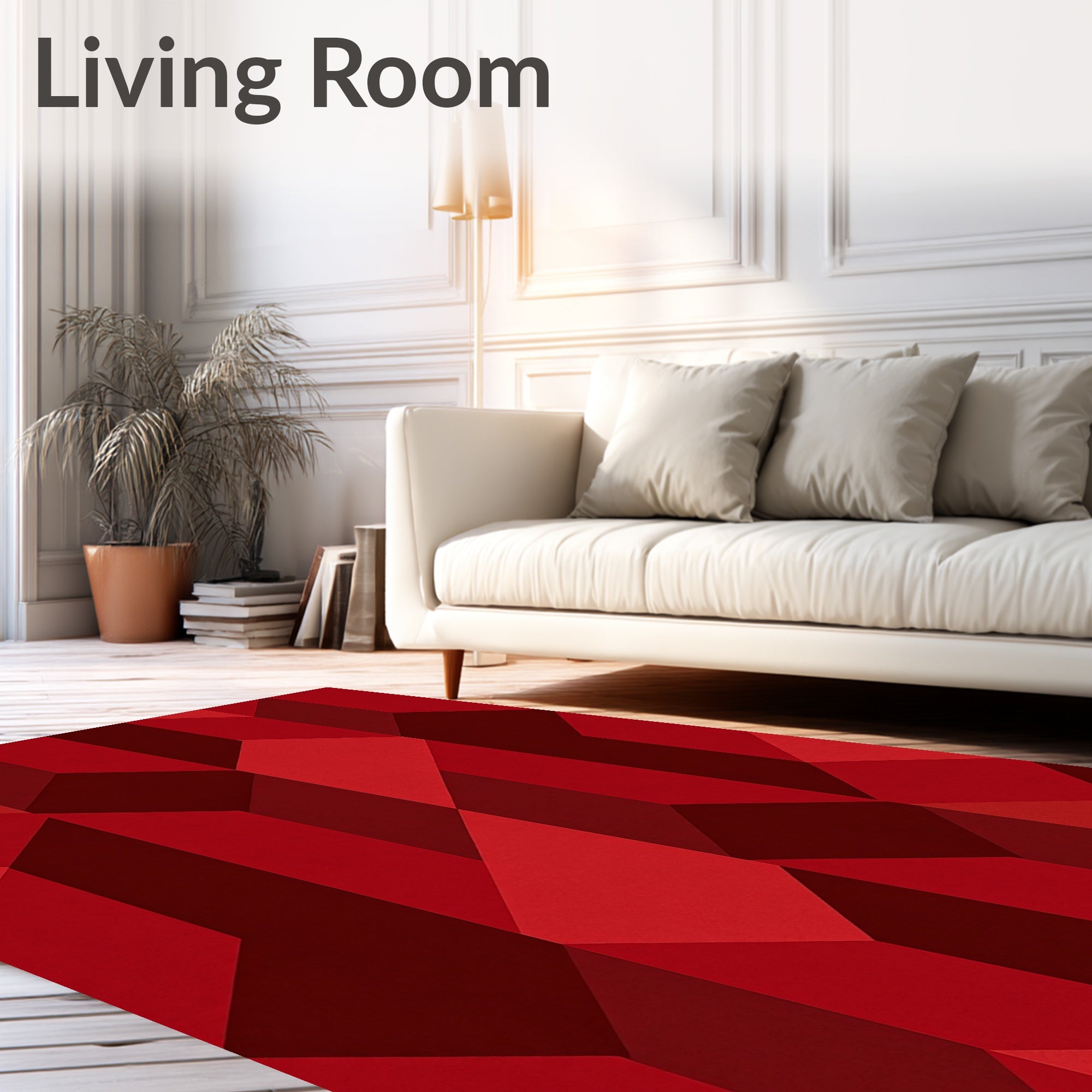 Ultra Soft Area Rug, Non Slip, Stain Resistant, Washable Area Rugs for Living Room, Bedroom, Bold Chevron Stripes Composed of Layered Angular Forms and Contrast(Red) Overview: