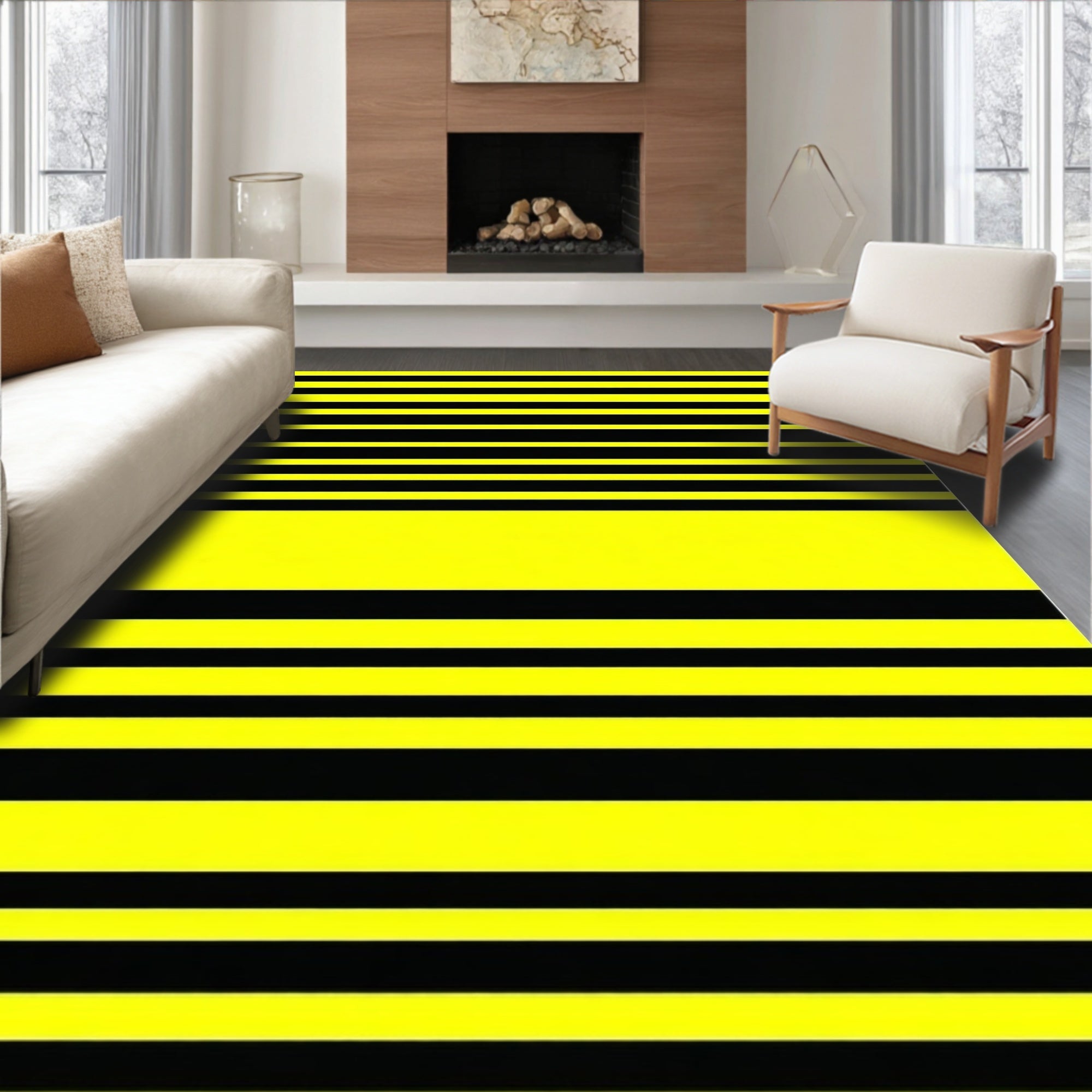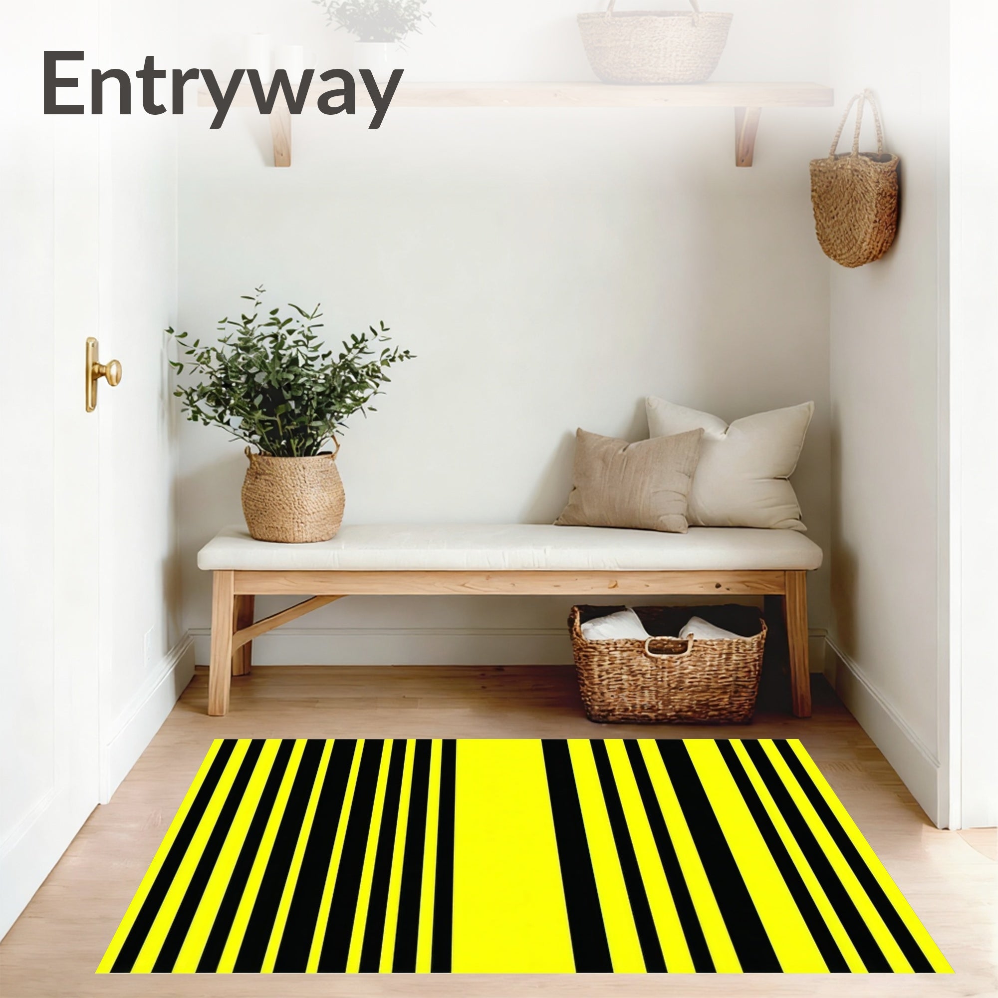 Flatwoven High Traffic Area Rug, Bold Chevron Stripes, Non Slip, Stain Resistant, Washable Area Rugs for Living Room, Bedroom (Yellow) Overview:
