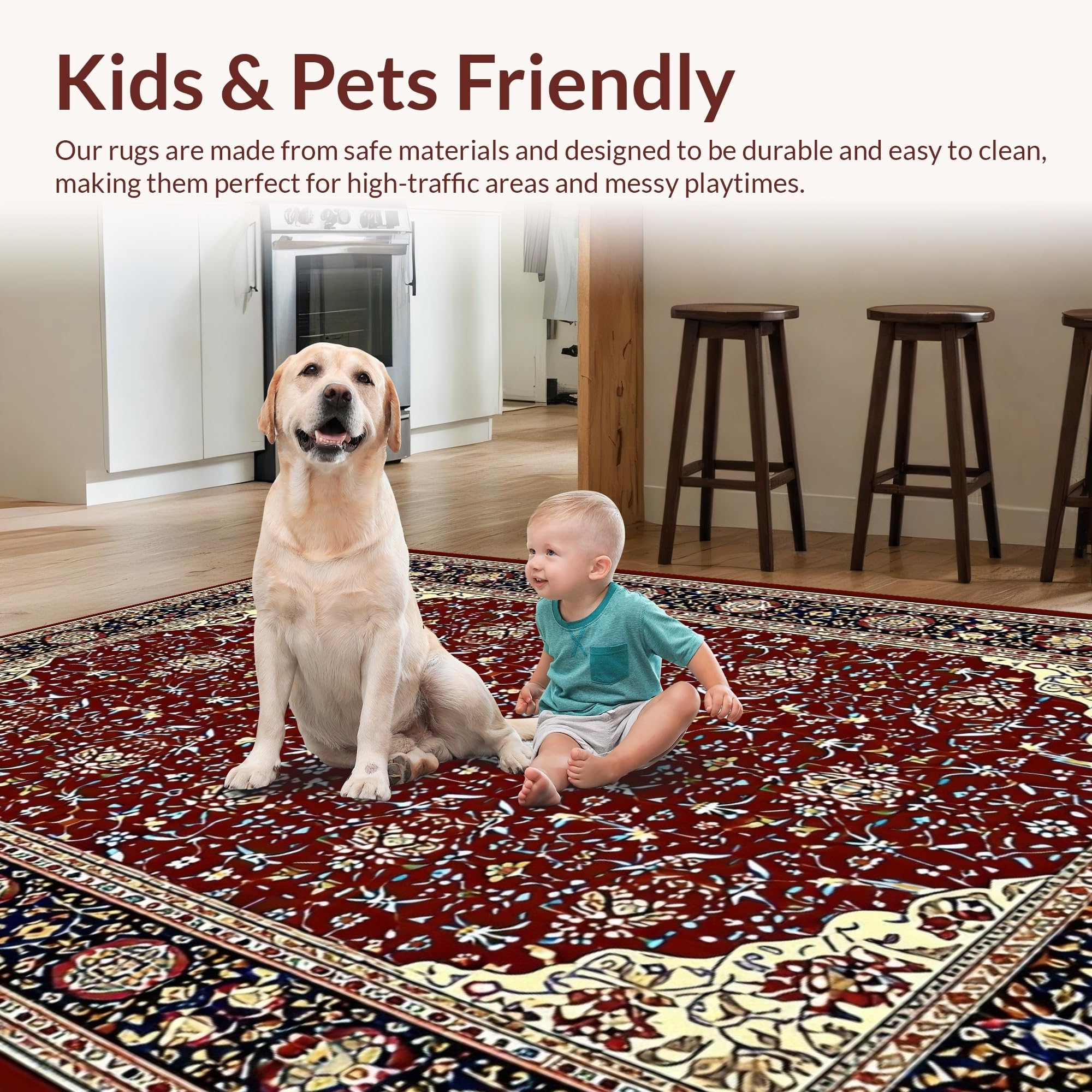 Ultra Soft Area Rug, Non Slip, Stain Resistant, Washable Area Rugs for Living Room, Bedroom, Bold Colorful Geometric Composition(Red) Overview: