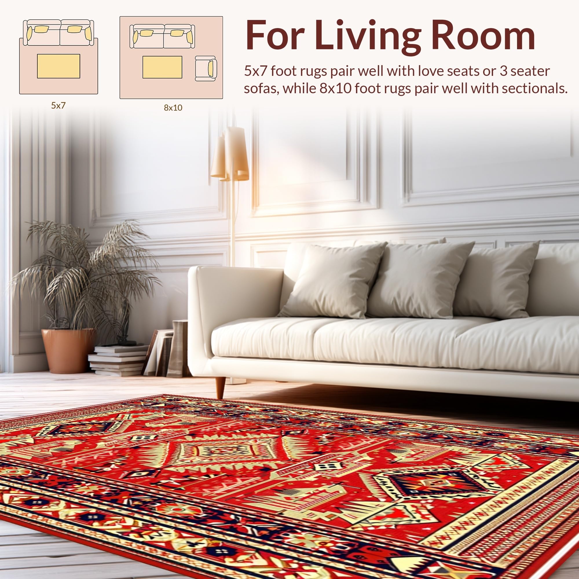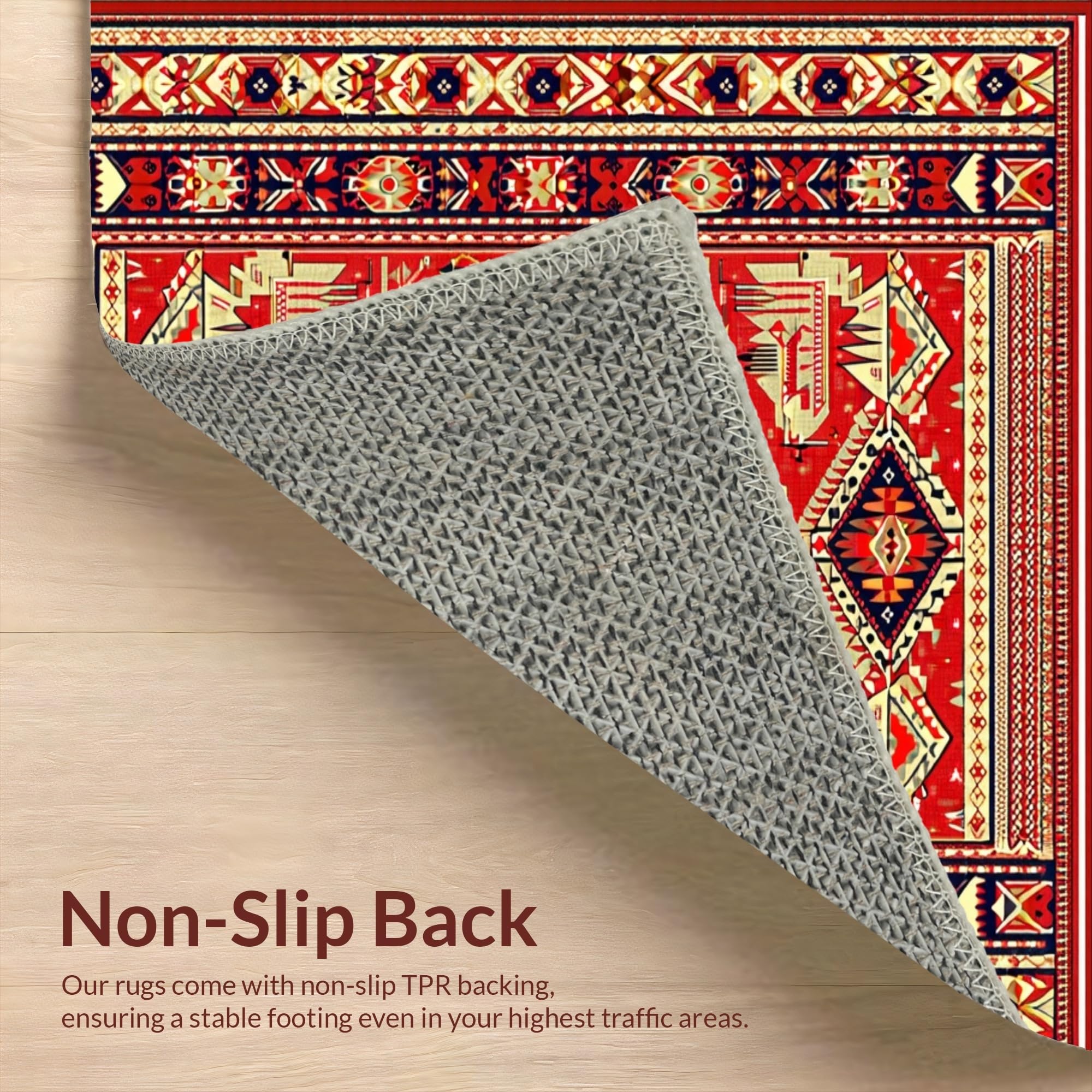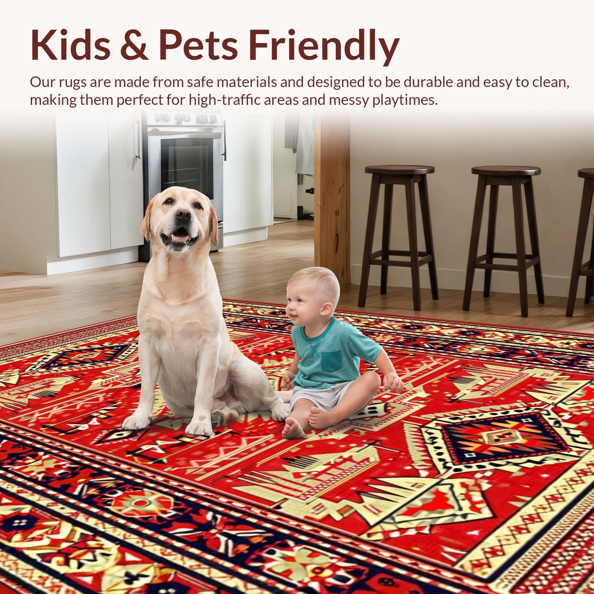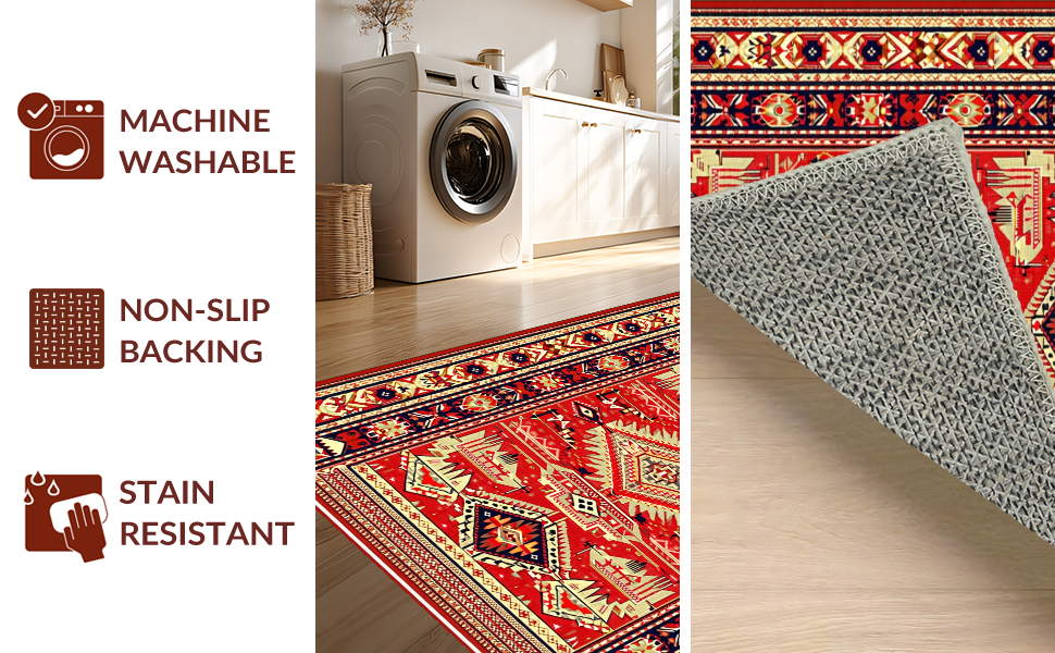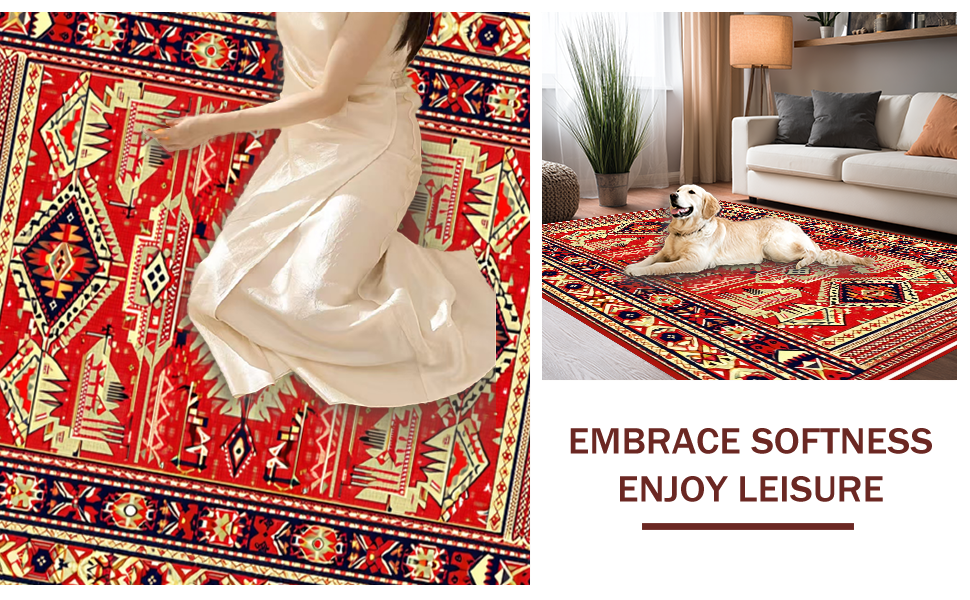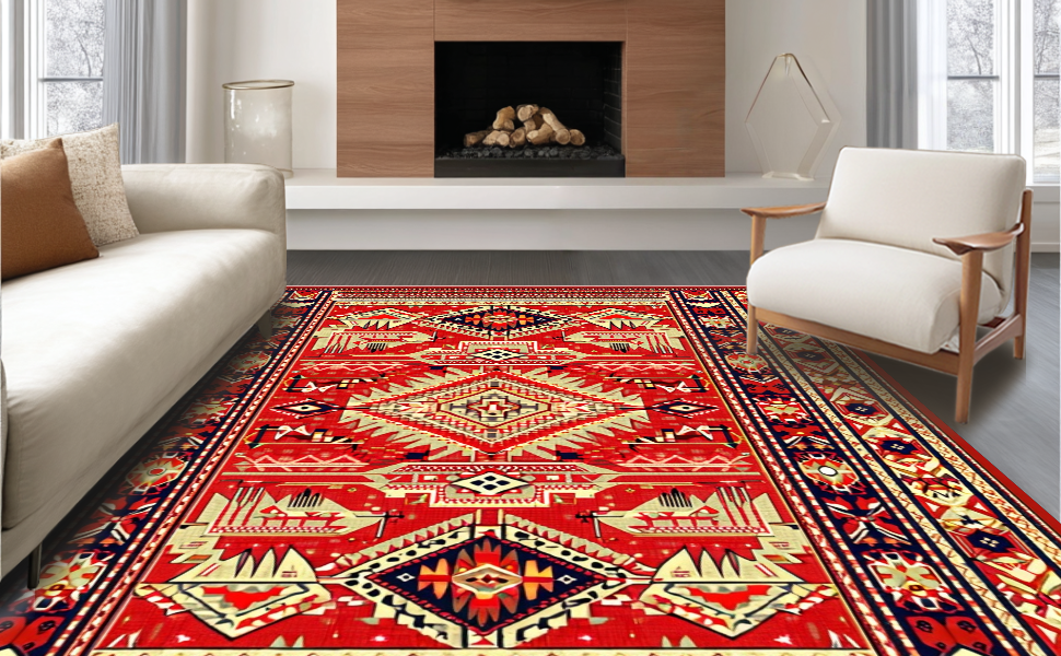 Ultra Soft Area Rug, Non Slip, Stain Resistant, Washable Area Rugs for Living Room, Bedroom, Bold Colorful Trellis Design(Red) Overview: