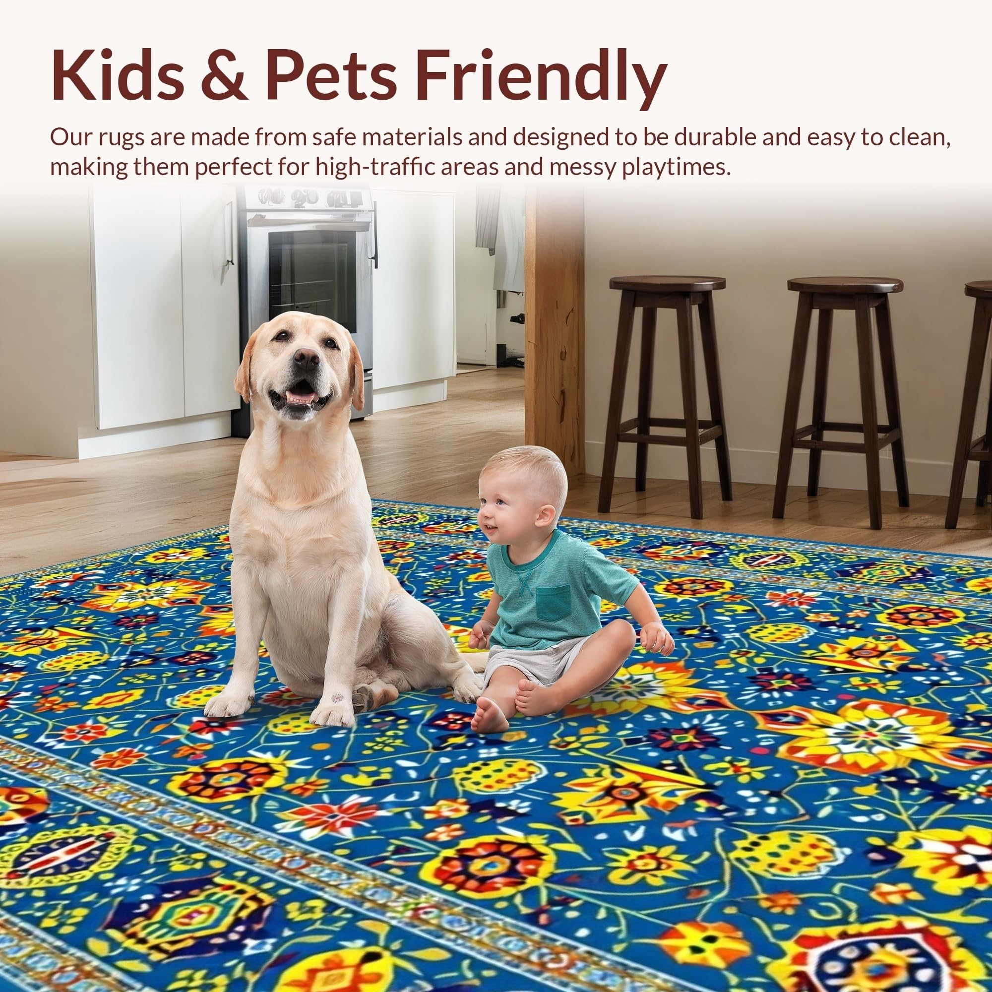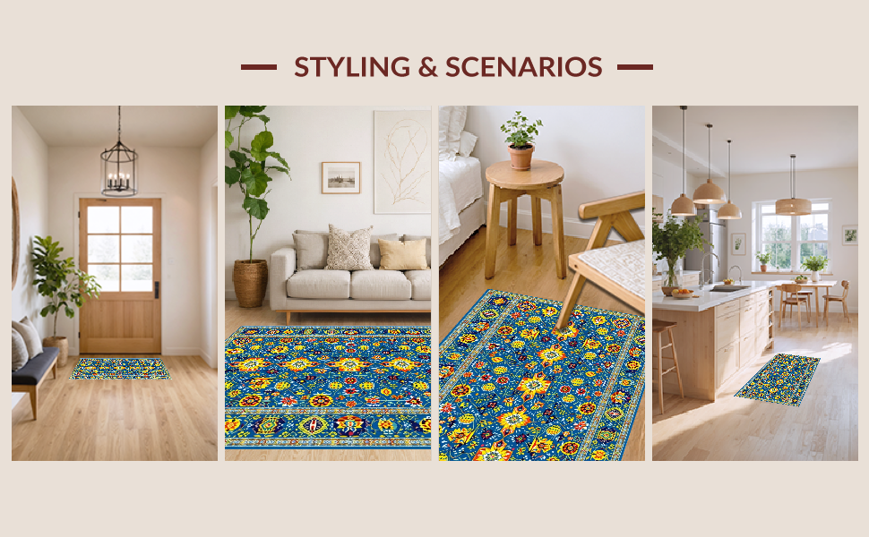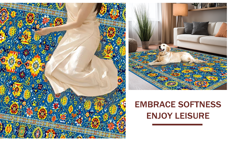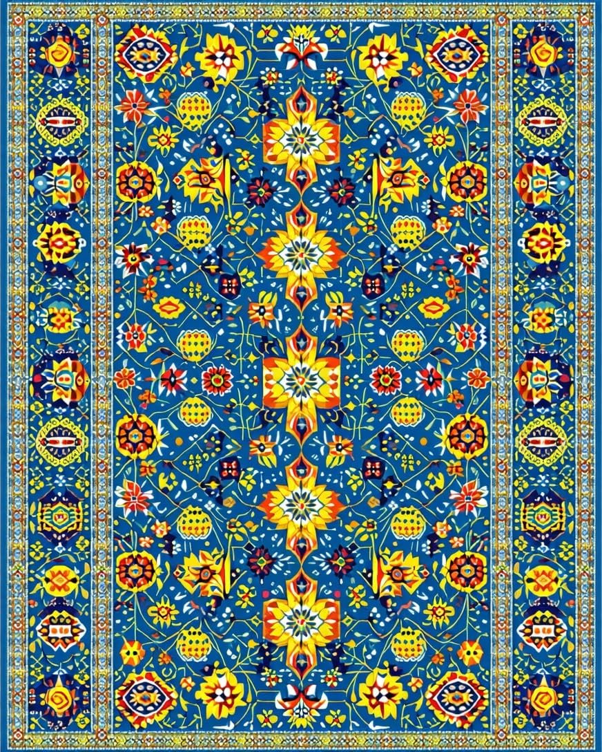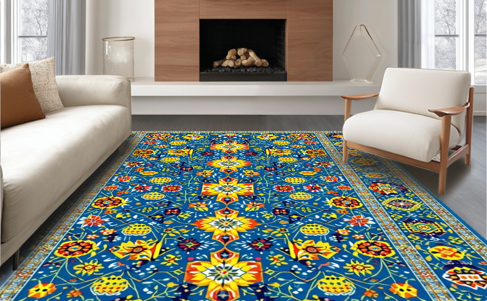 Ultra Soft Area Rug, Non Slip, Stain Resistant, Washable Area Rugs for Living Room, Bedroom, Bold Contemporary Tiled Aesthetic(Blue) Overview: