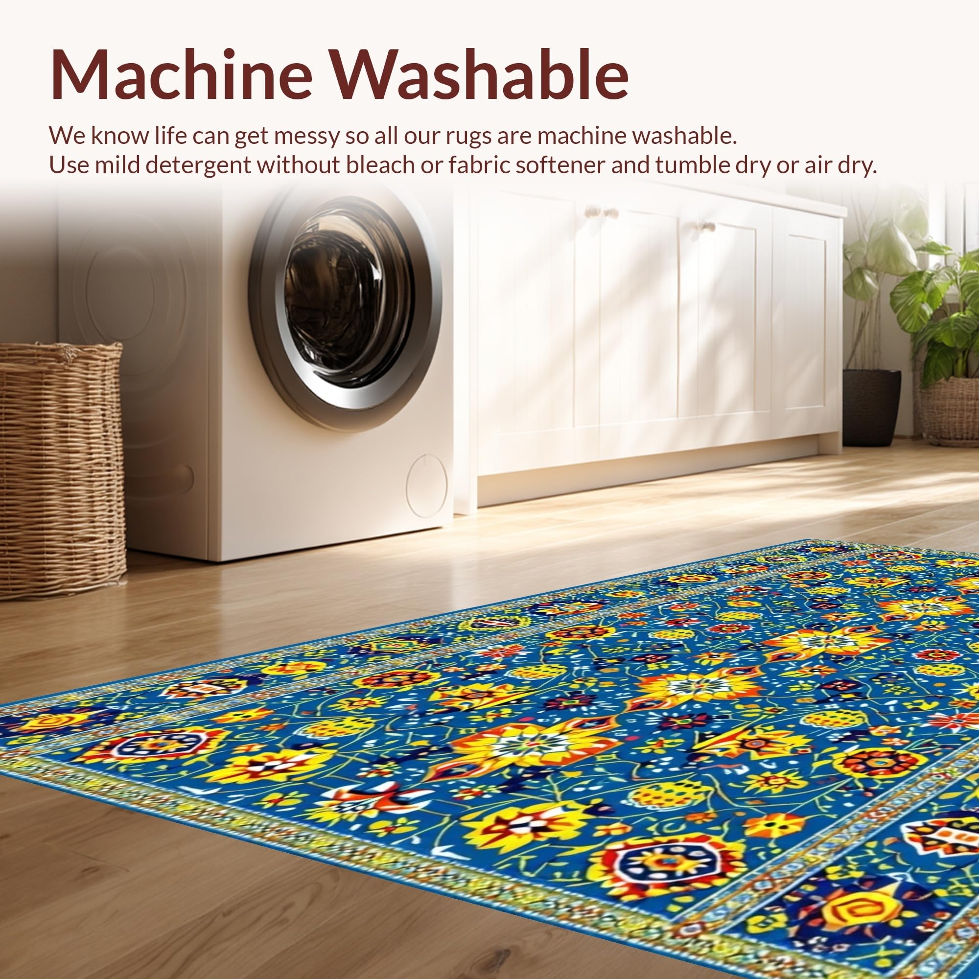 - Machine Washable: Our rugs can be easily thrown in the wash machine.