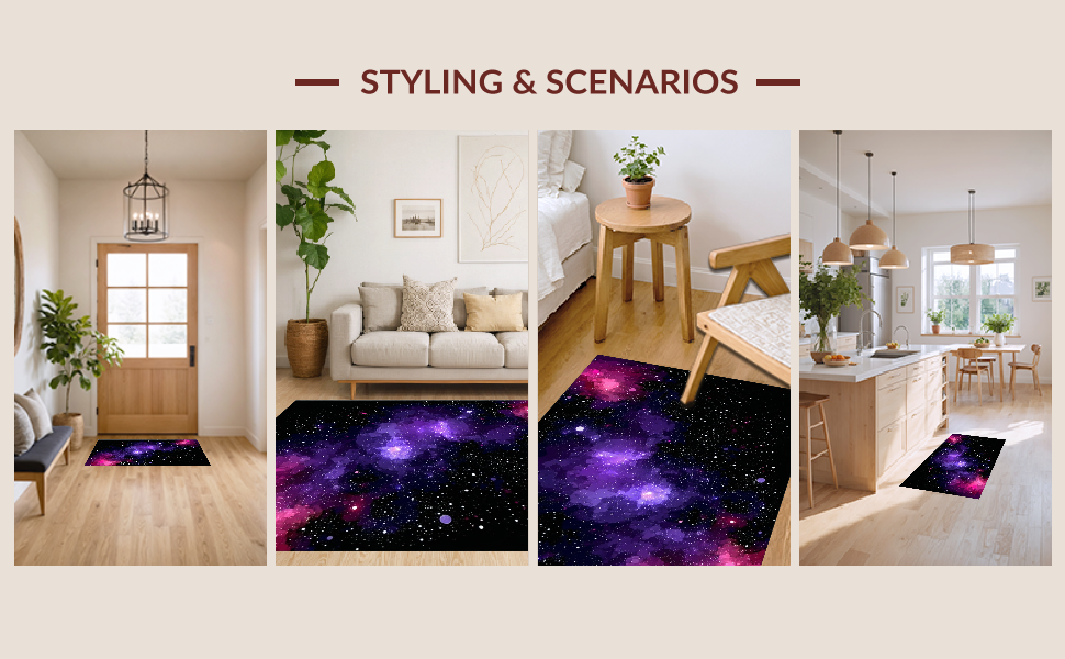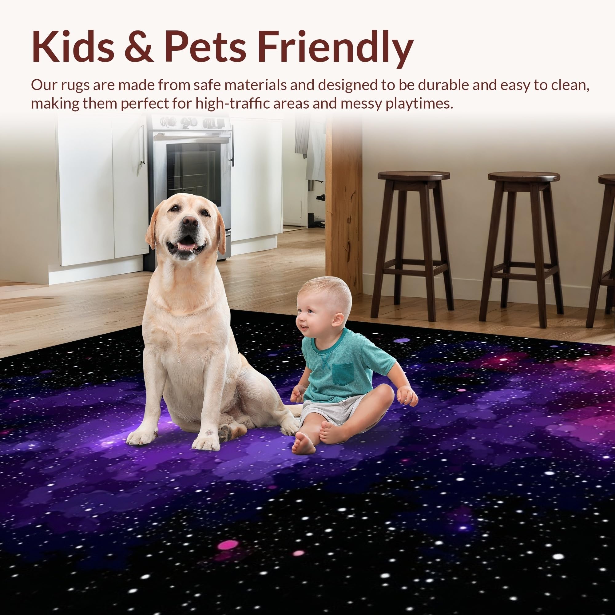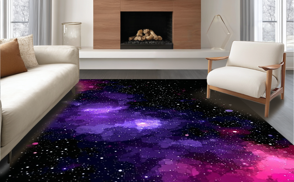 Ultra Soft Area Rug, Non Slip, Stain Resistant, Washable Area Rugs for Living Room, Bedroom, Bold Cosmic Color Splash(Purple) Overview: