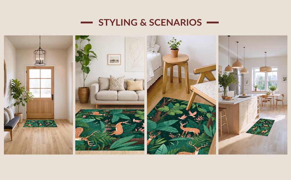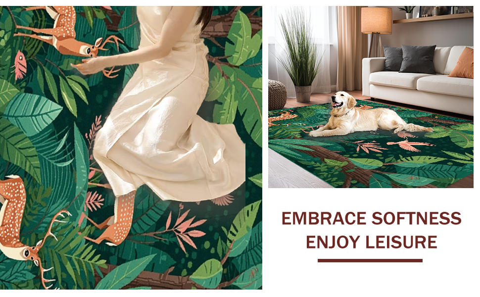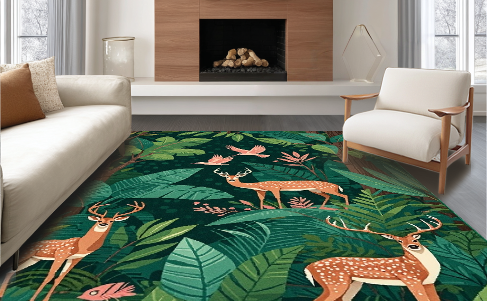 Ultra Soft Area Rug, Non Slip, Stain Resistant, Washable Area Rugs for Living Room, Bedroom, Bold Earthy Tones Artwork(Green) Overview: