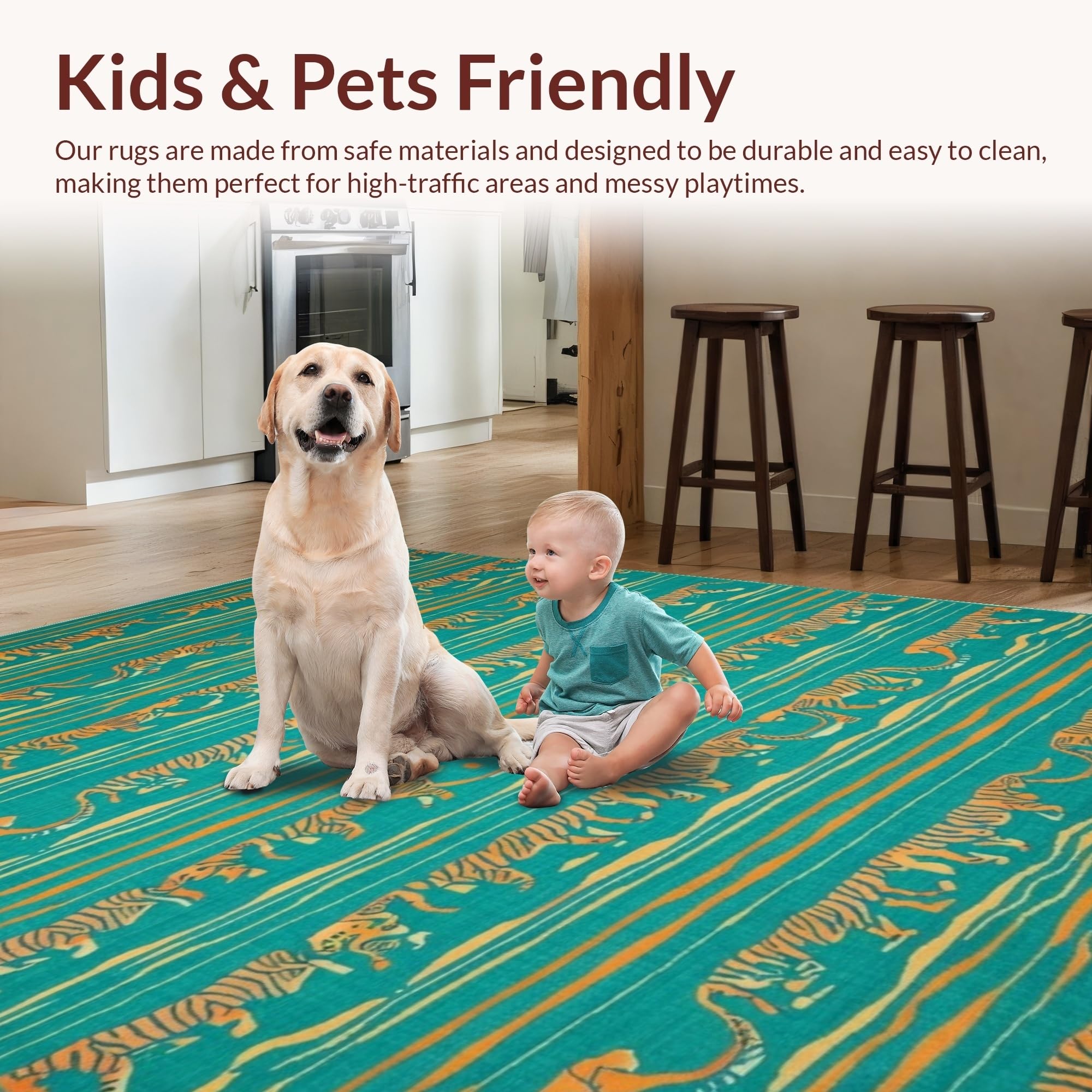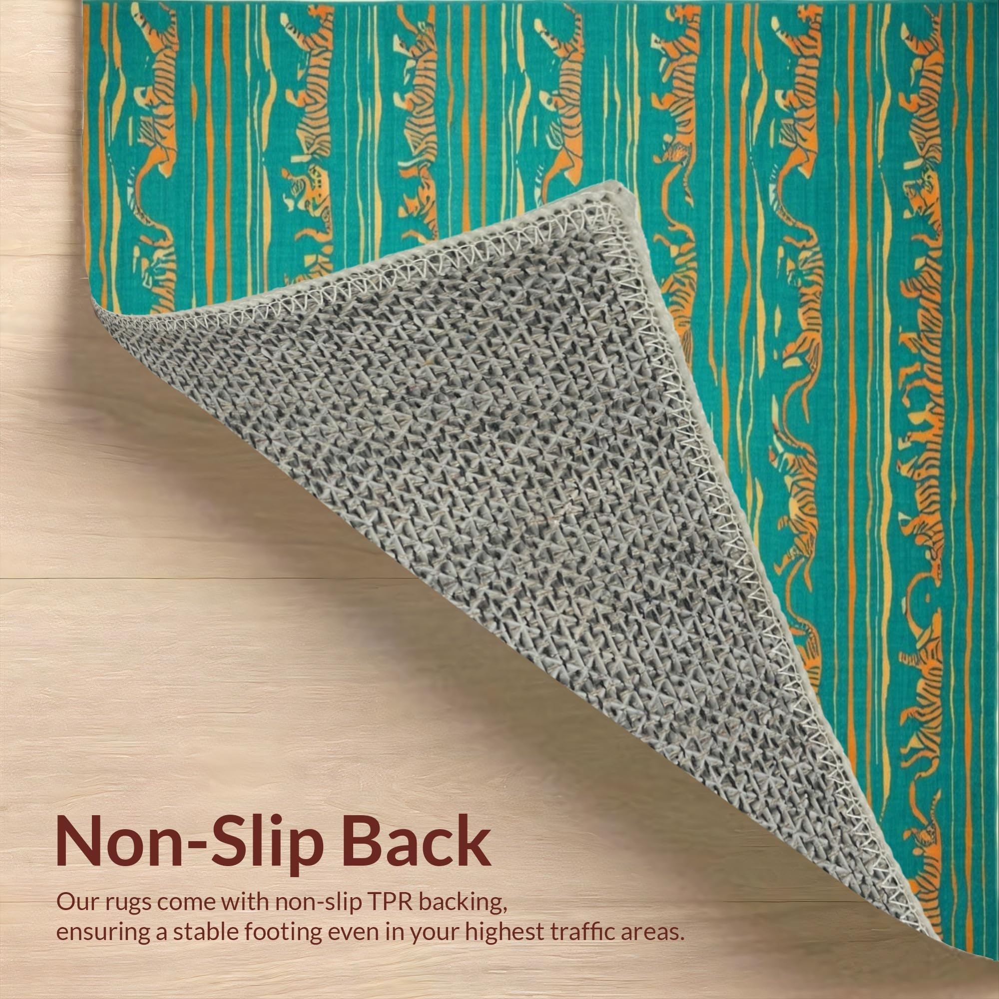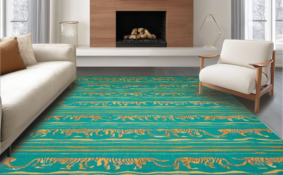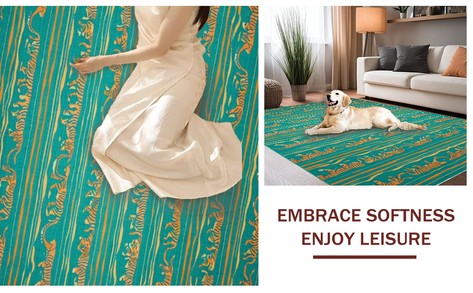 Ultra Soft Area Rug, Non Slip, Stain Resistant, Washable Area Rugs for Living Room, Bedroom, Bold Exotic Fauna Pattern(Blue) Overview: