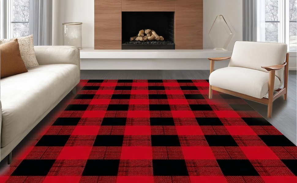 Ultra Soft Area Rug, Non Slip, Stain Resistant, Washable Area Rugs for Living Room, Bedroom, Bold Farmhouse Seasonal Pattern Design(Red) Overview: