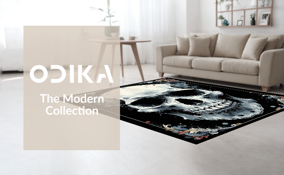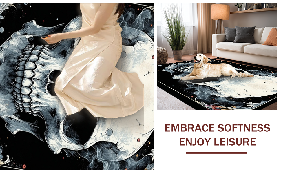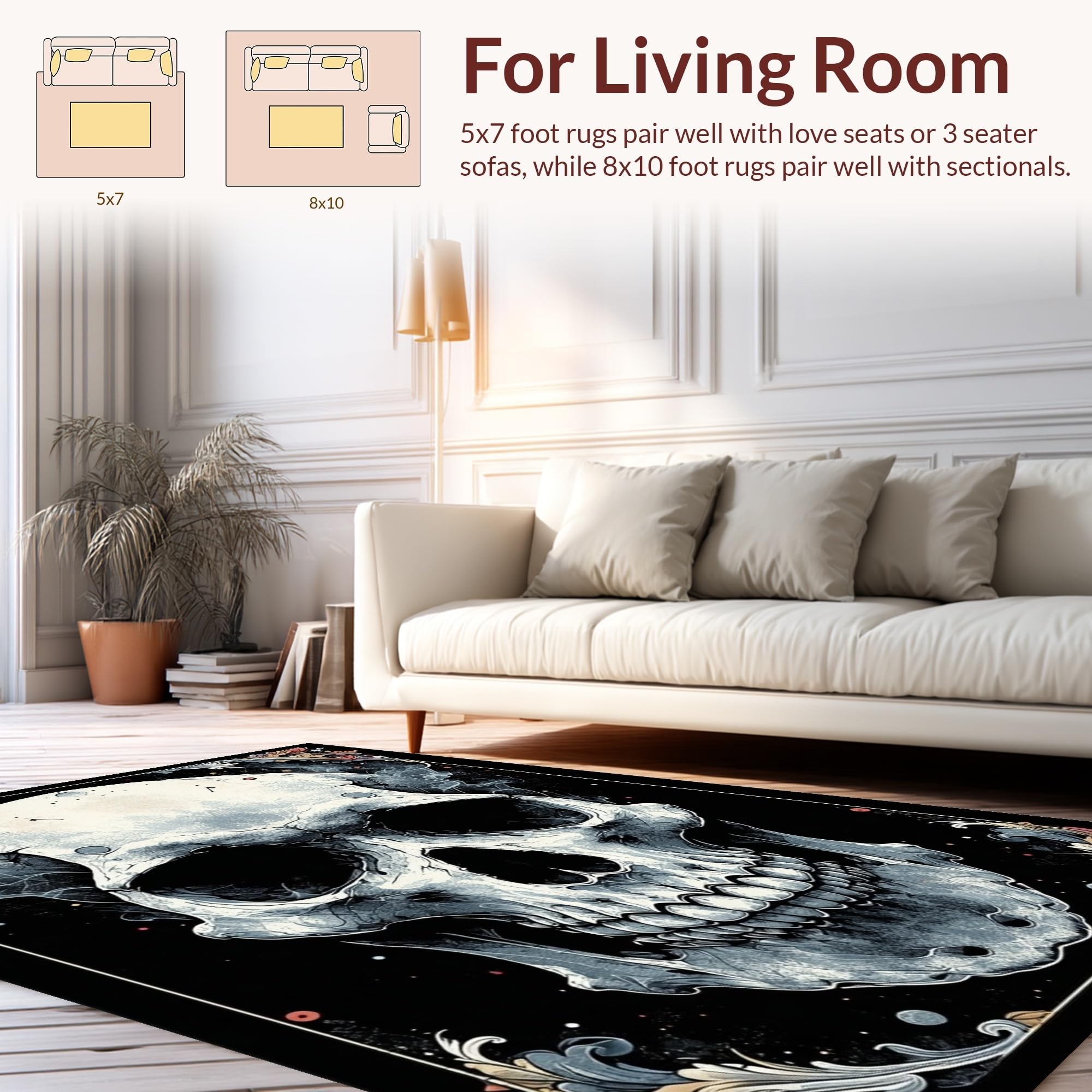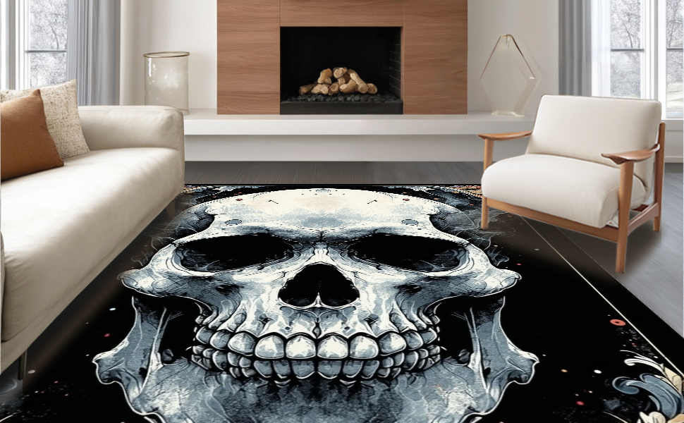 Ultra Soft Area Rug, Non Slip, Stain Resistant, Washable Area Rugs for Living Room, Bedroom, Bold Graphic Skull Art Piece(White) Overview: