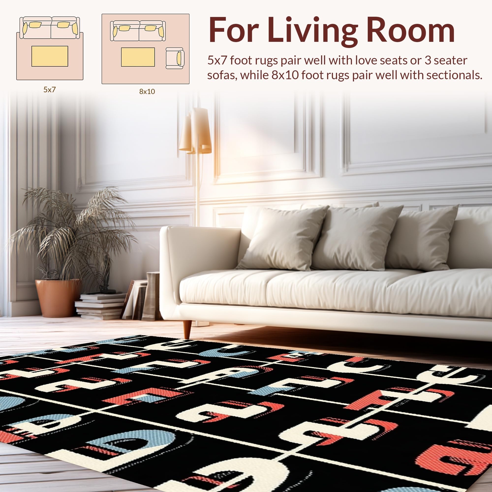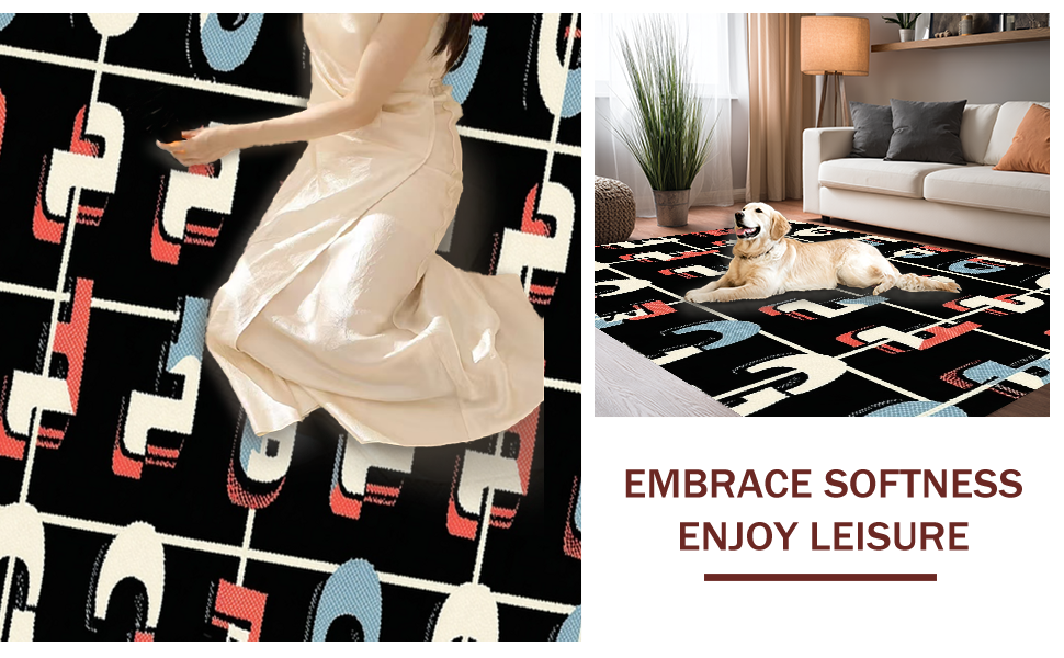 Ultra Soft Area Rug, Non Slip, Stain Resistant, Washable Area Rugs for Living Room, Bedroom, Bold Minimalist Humor Piece(Black) Overview: