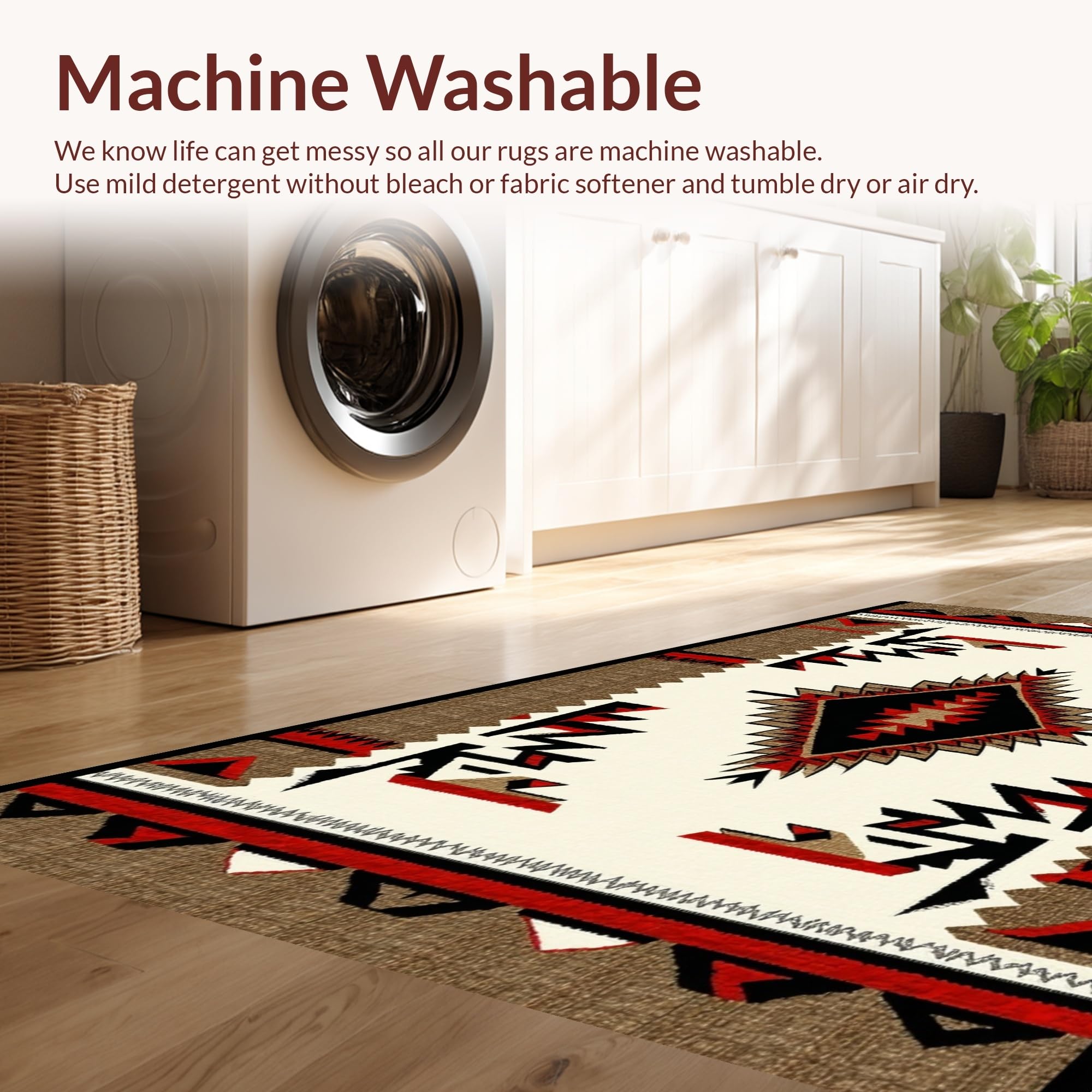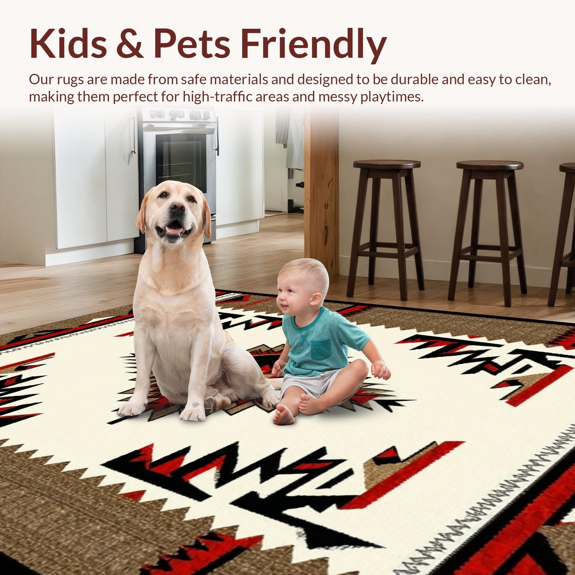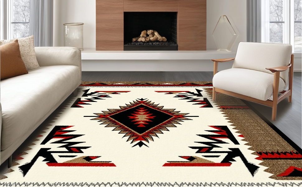 Ultra Soft Area Rug, Non Slip, Stain Resistant, Washable Area Rugs for Living Room, Bedroom, Bold Southwestern Ikat Arrangement(Beige) Overview: