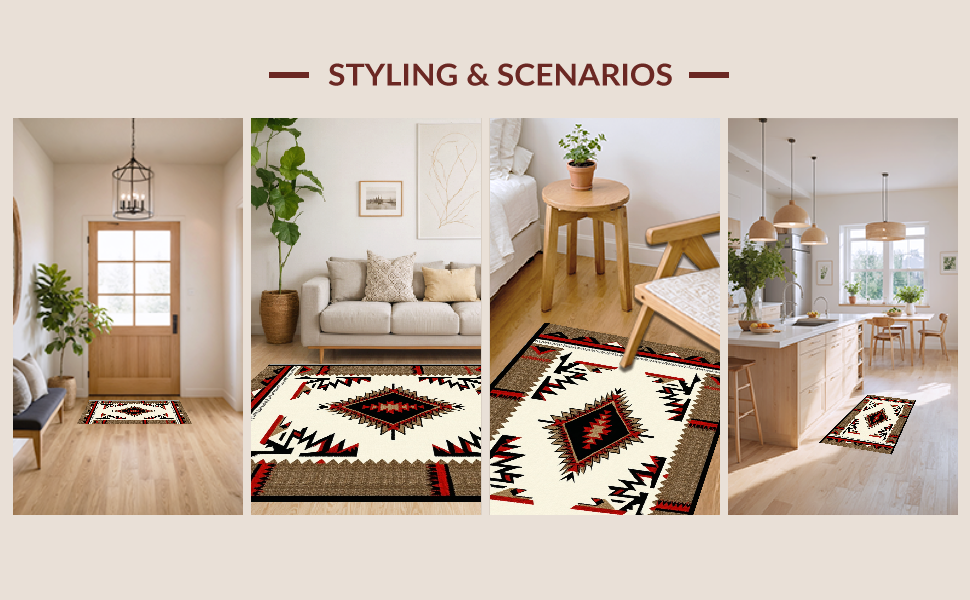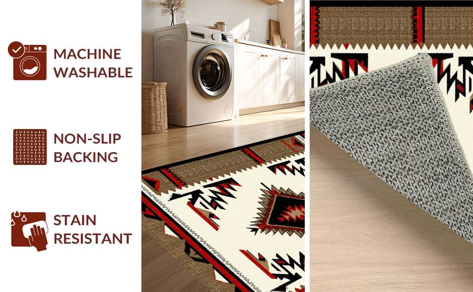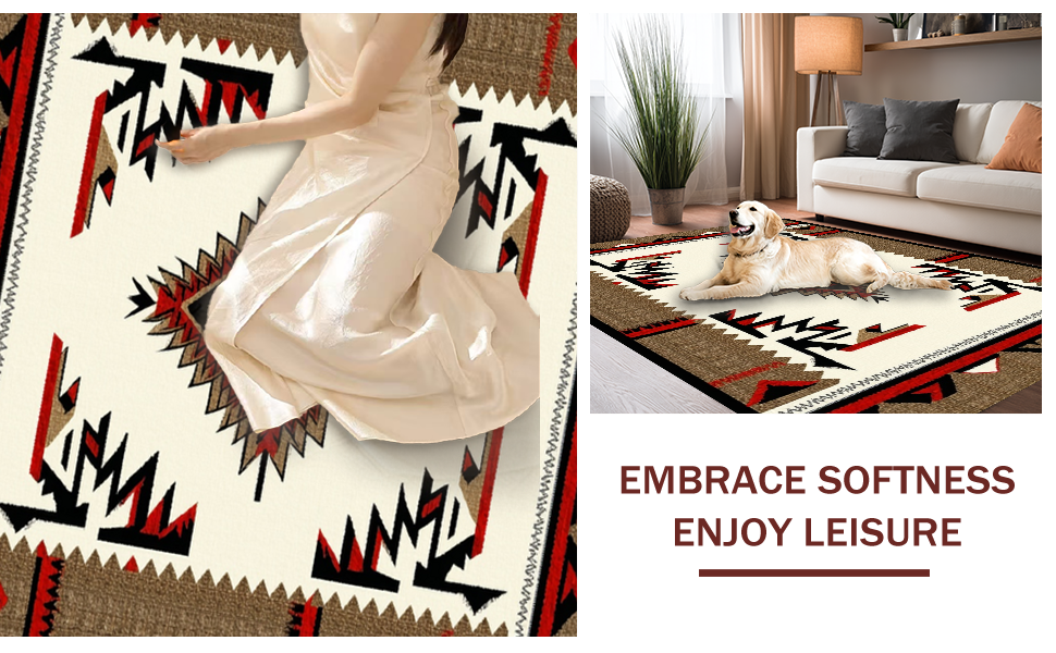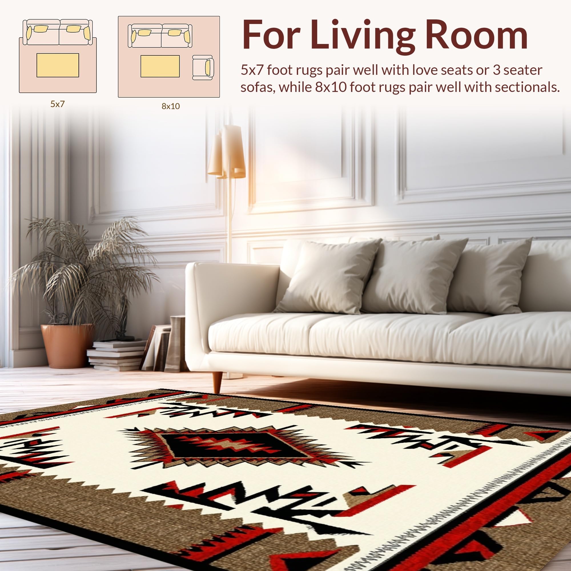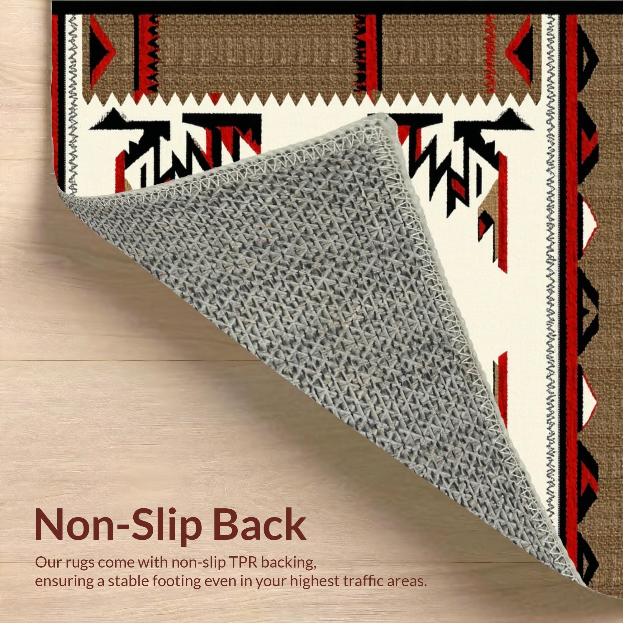 Ultra Soft Area Rug, Non Slip, Stain Resistant, Washable Area Rugs for Living Room, Bedroom, Bold Southwestern Ikat Arrangement(Beige) Overview: