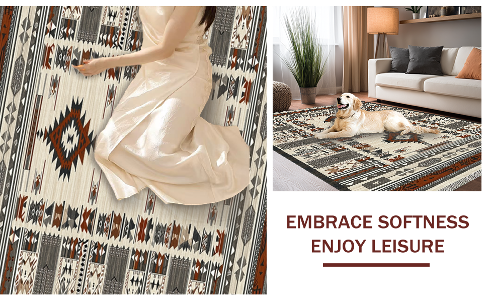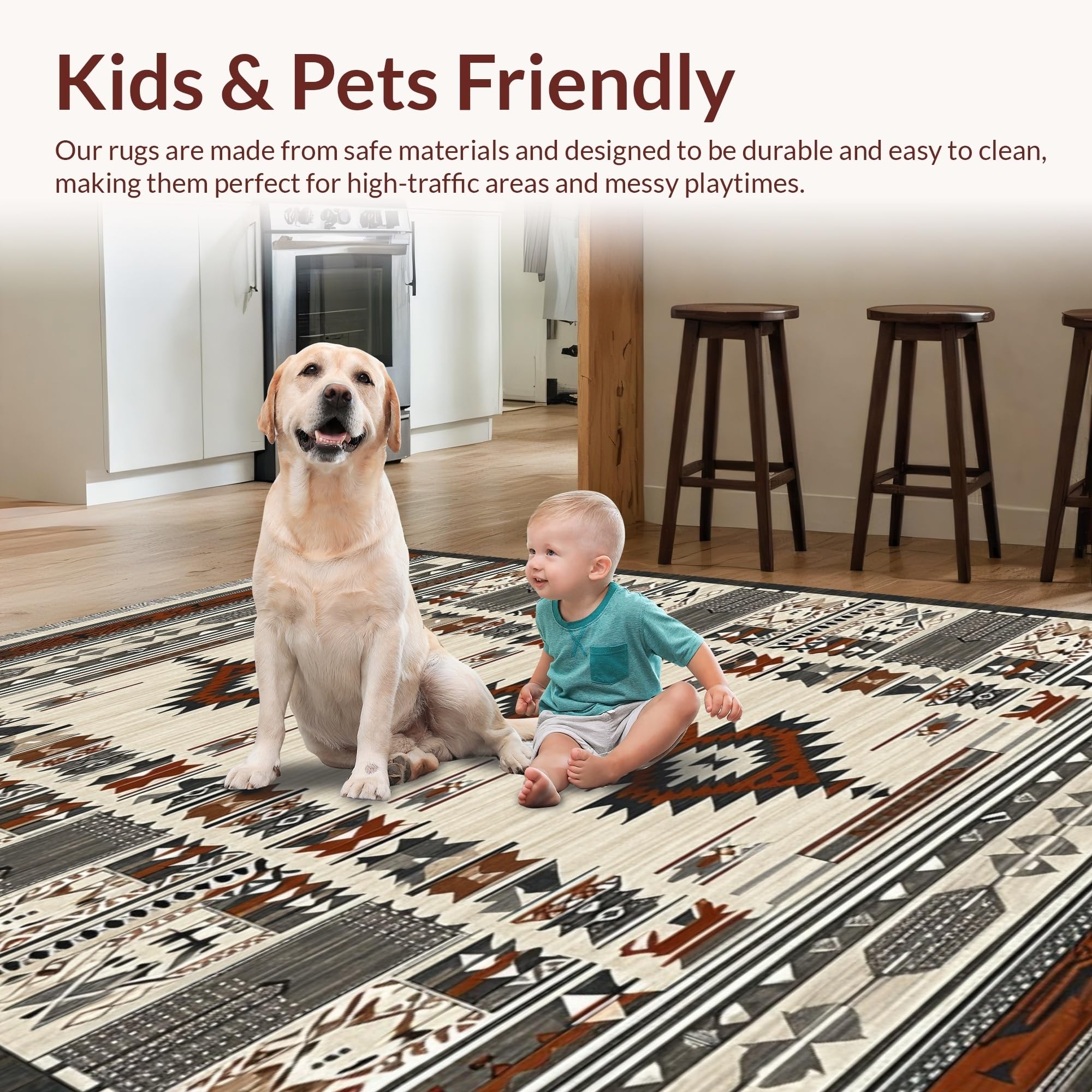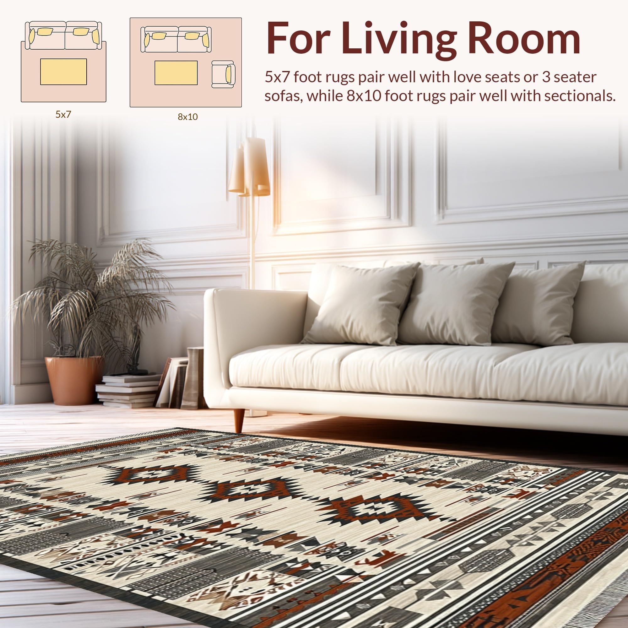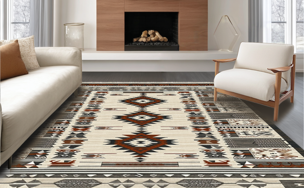 Ultra Soft Area Rug, Non Slip, Stain Resistant, Washable Area Rugs for Living Room, Bedroom, Bold Southwestern Patterned Aesthetic(Gray) Overview: