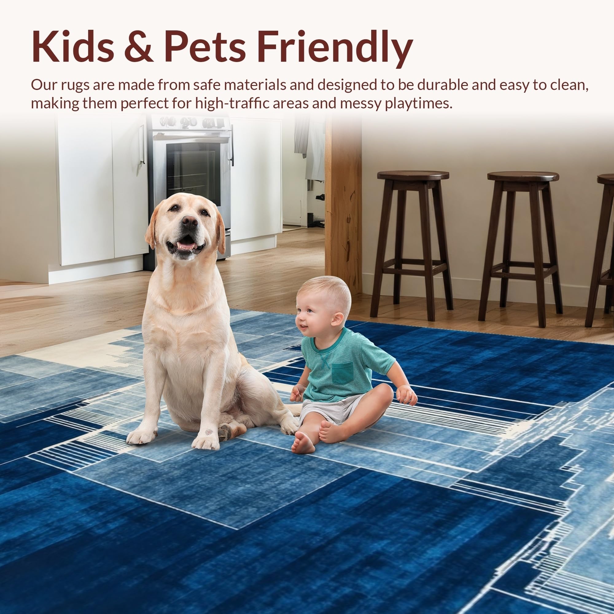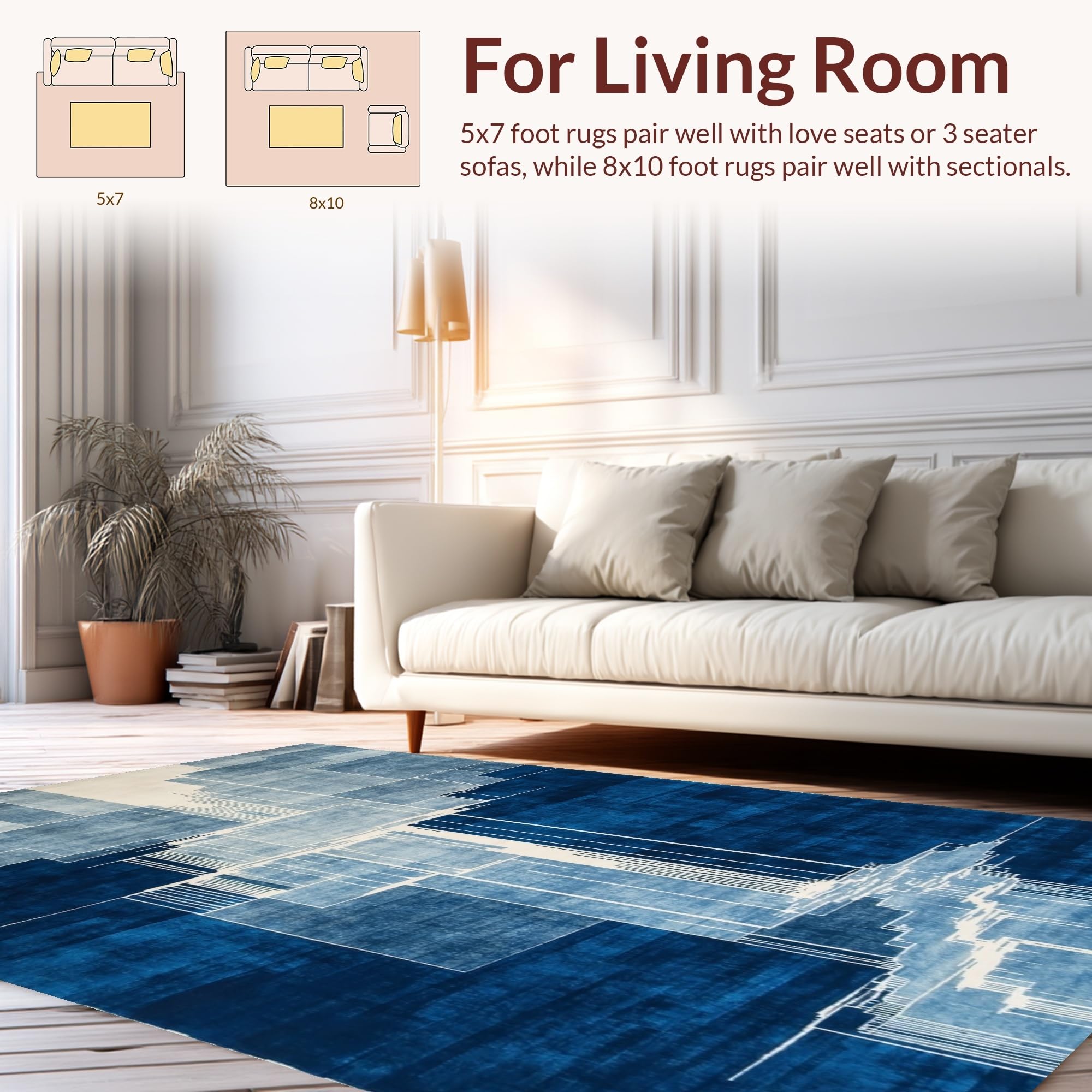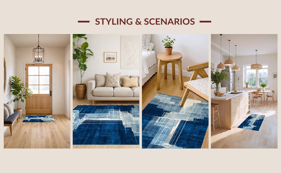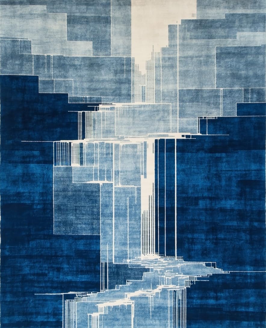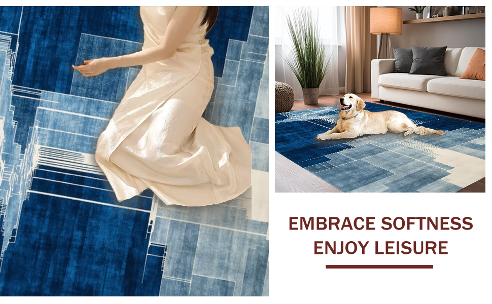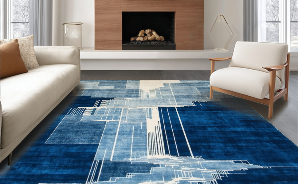 Ultra Soft Area Rug, Non Slip, Stain Resistant, Washable Area Rugs for Living Room, Bedroom, Bold Textured Ripple Arrangement(Blue) Overview: