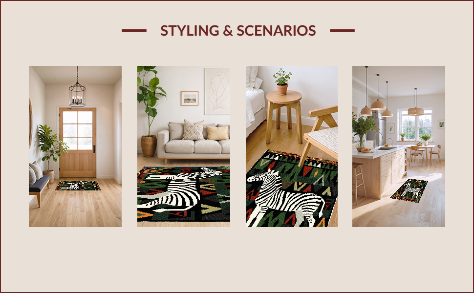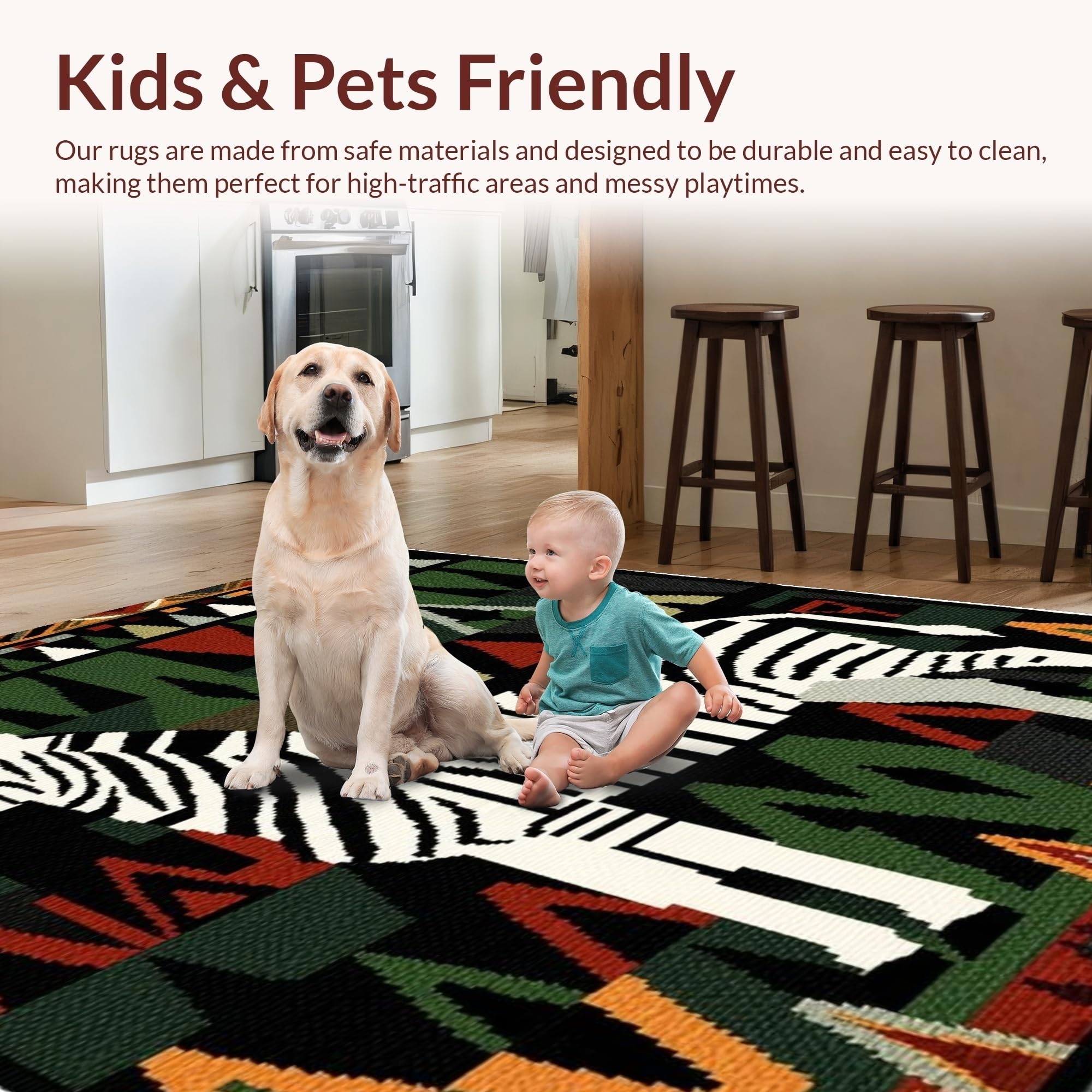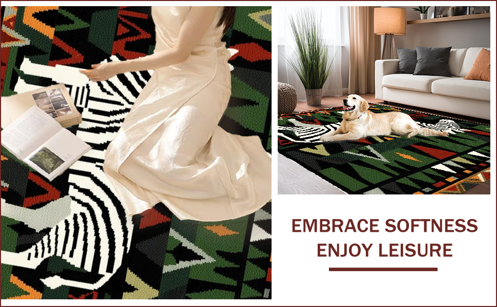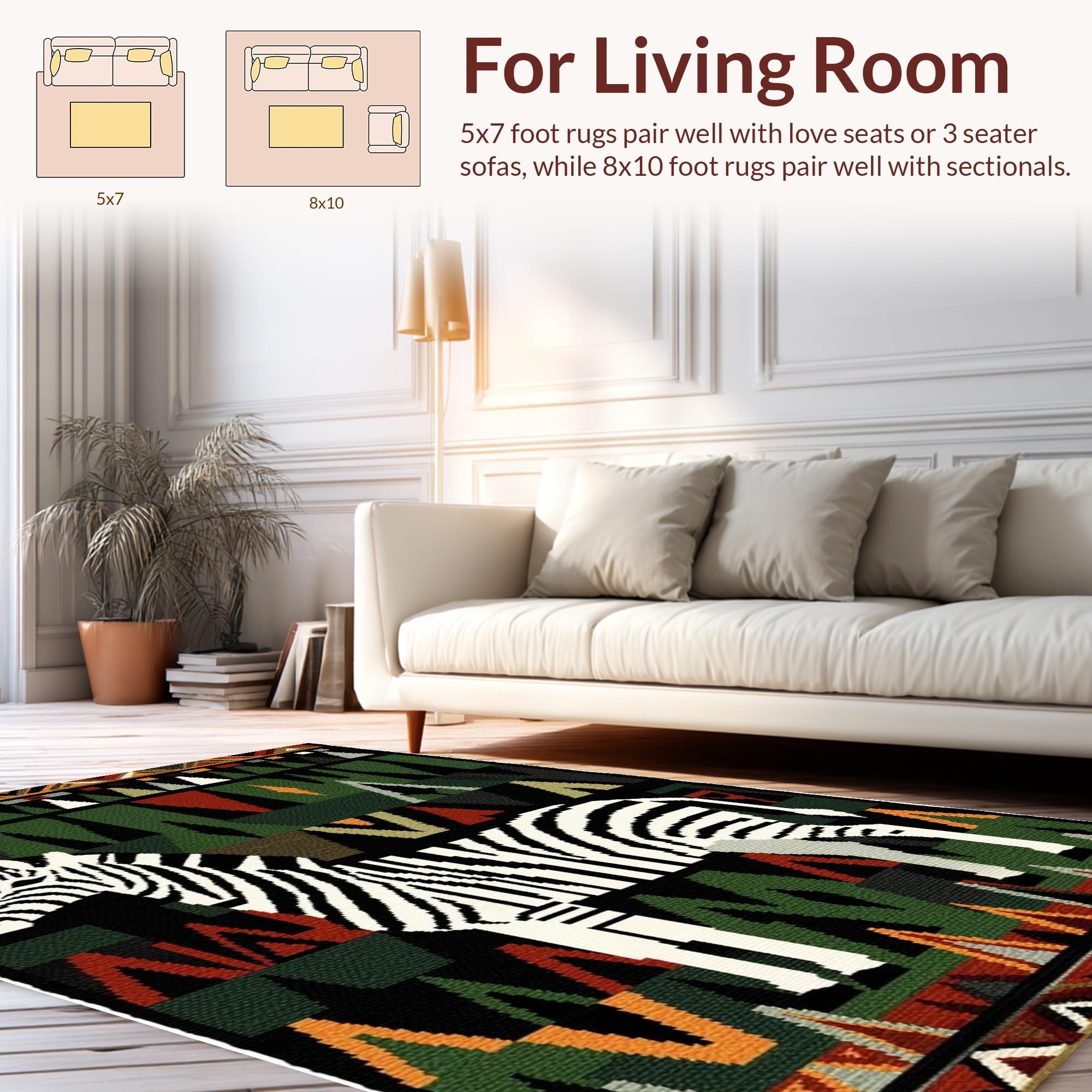 Ultra Soft Area Rug, Non Slip, Stain Resistant, Washable Area Rugs for Living Room, Bedroom, Bold Zebra Print Aesthetic(Black) Overview:
