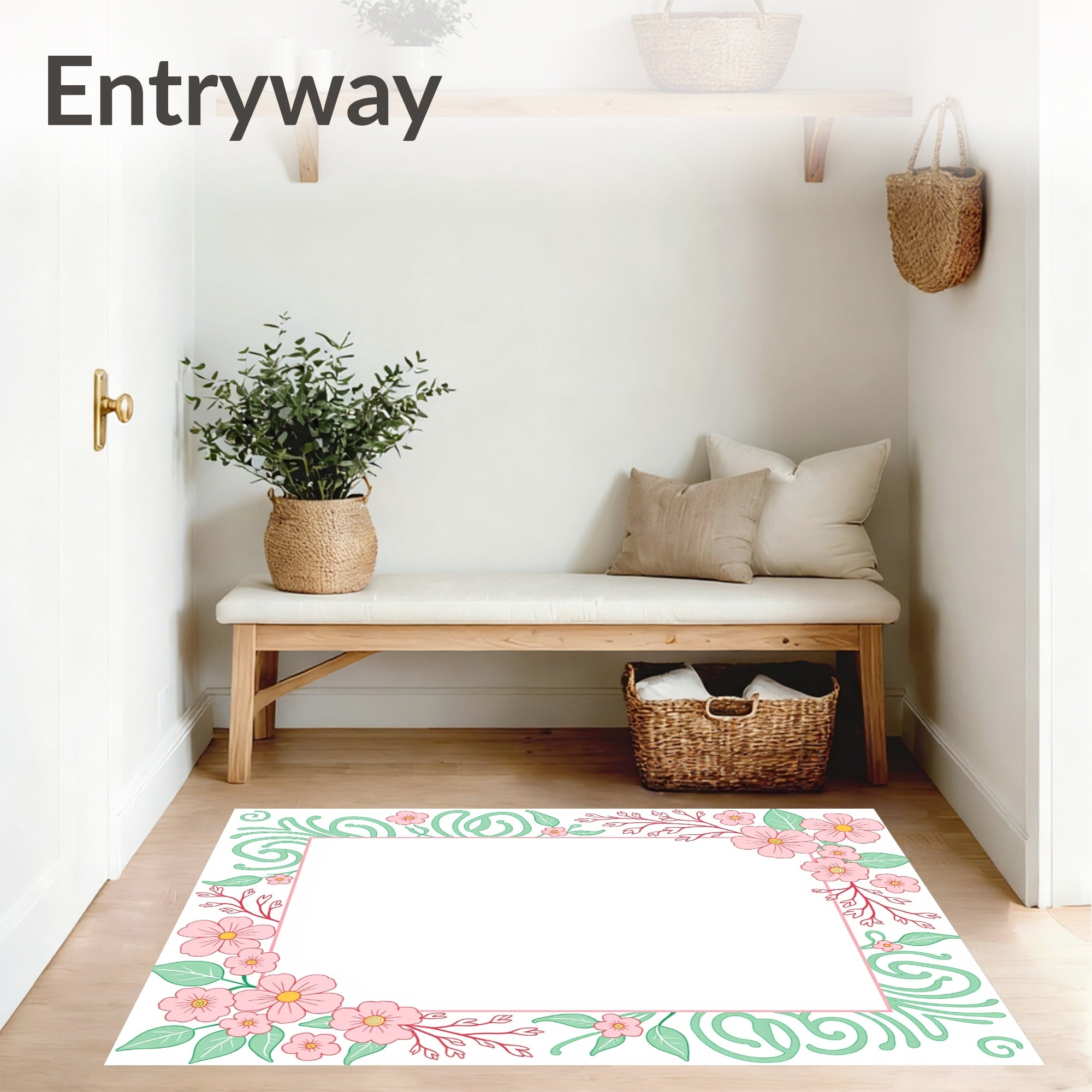 Flatwoven High Traffic Area Rug, Botanical Blossom Bow Decorative Accent Flair Floral Ornament, Non Slip, Stain Resistant, Washable Area Rugs for Living Room, Bedroom (Pink) Overview: