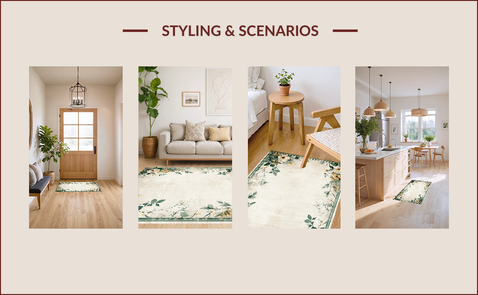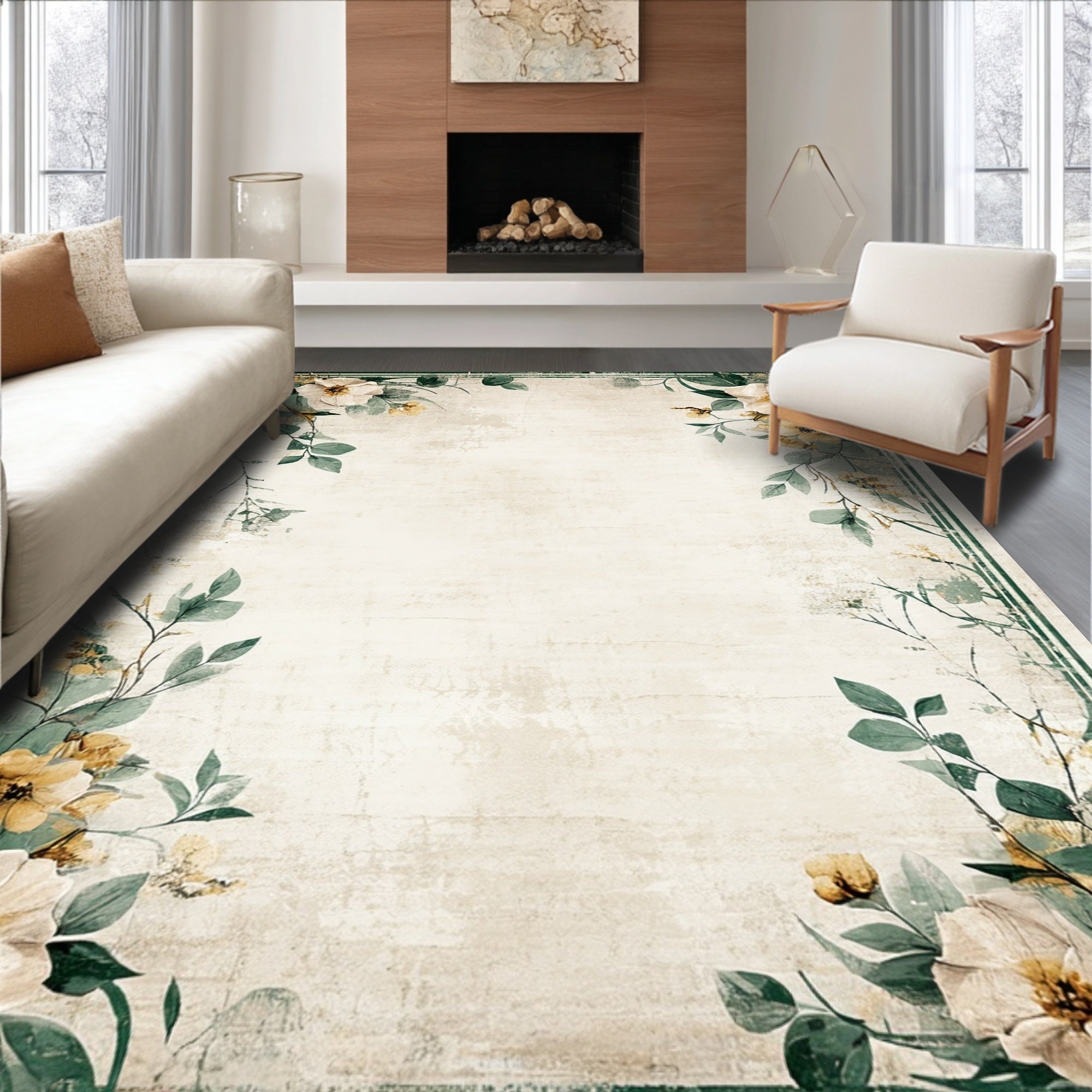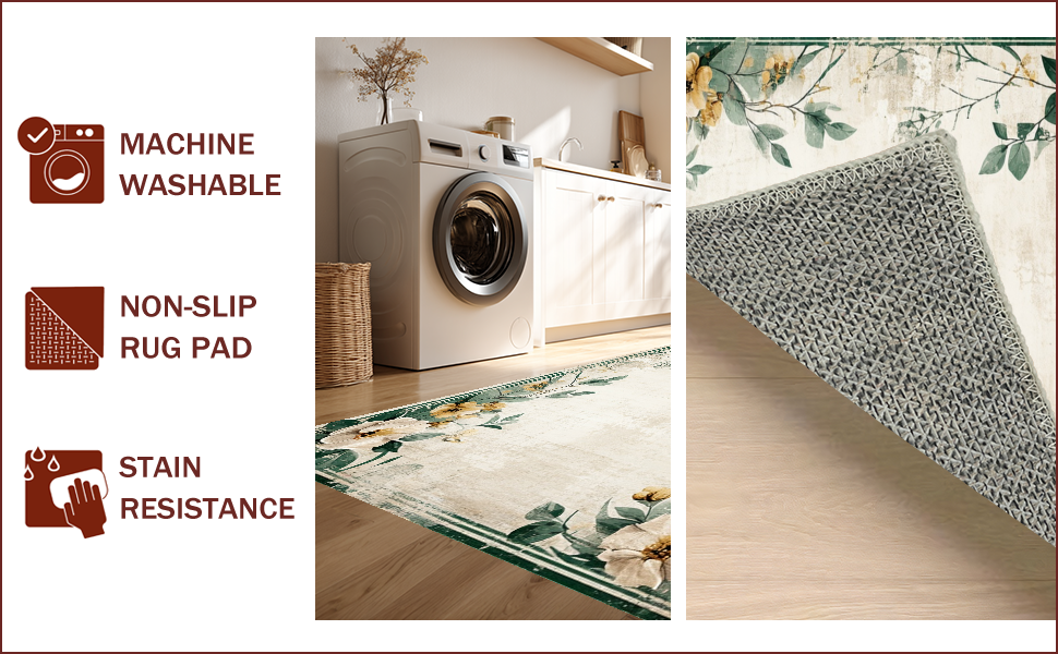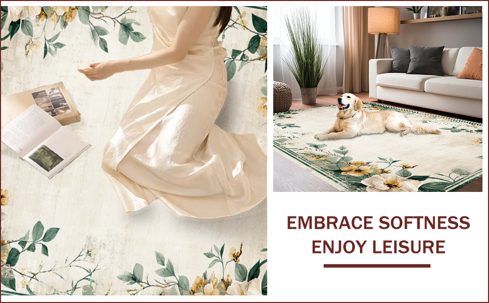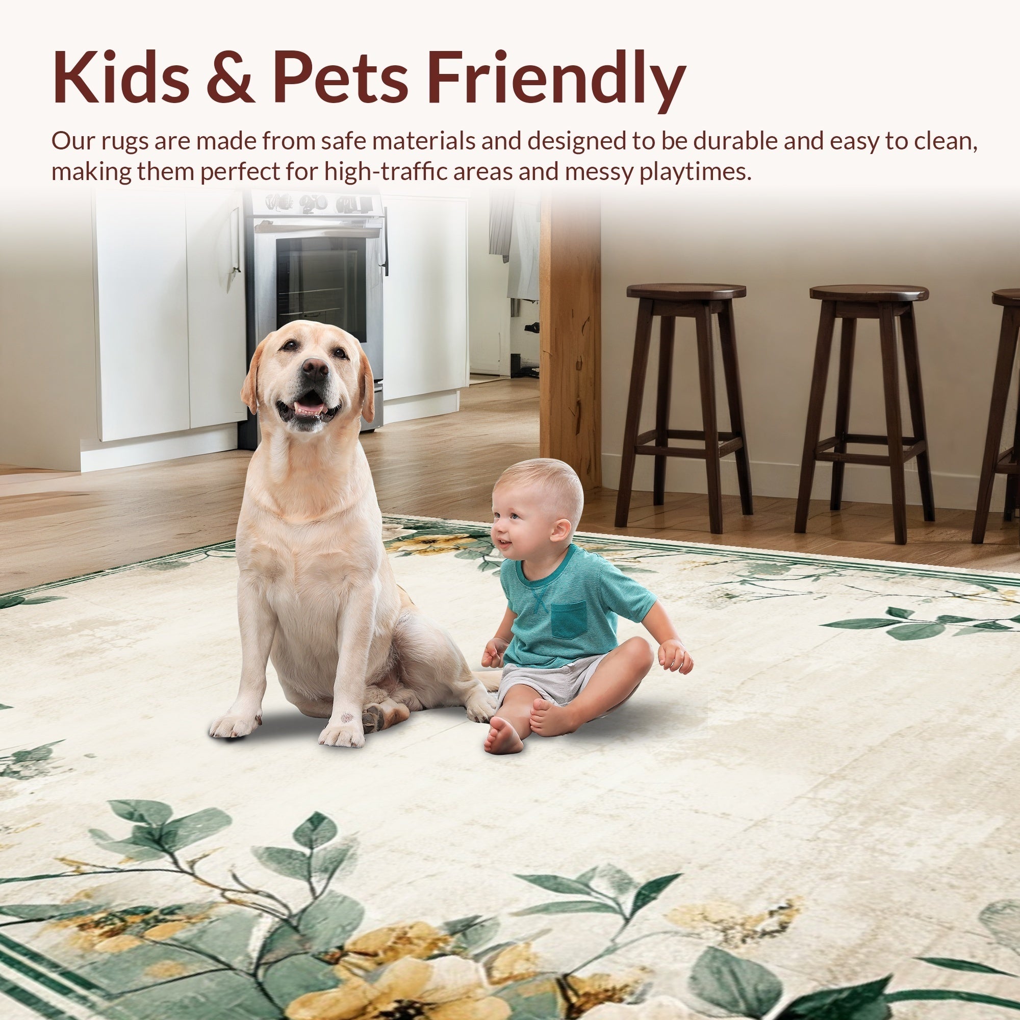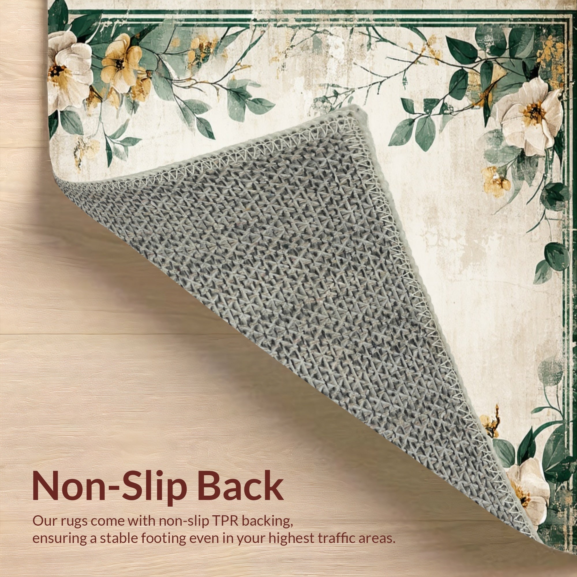 Ultra Soft Area Rug, Non Slip, Stain Resistant, Washable Area Rugs for Living Room, Bedroom, Botanical Floral Distressed Farmhouse(Beige) Overview: