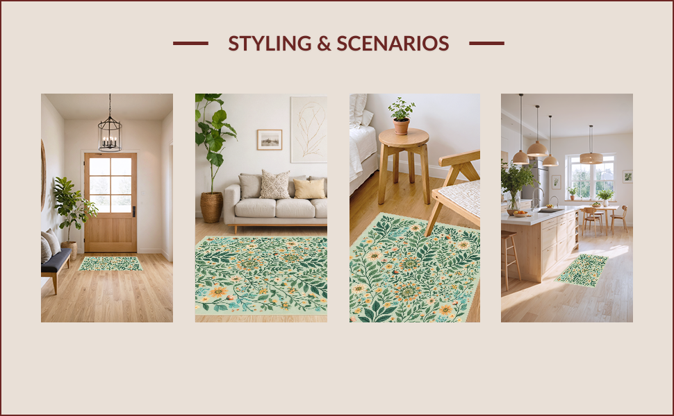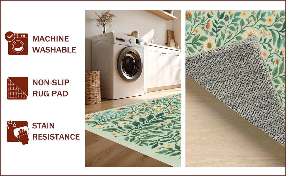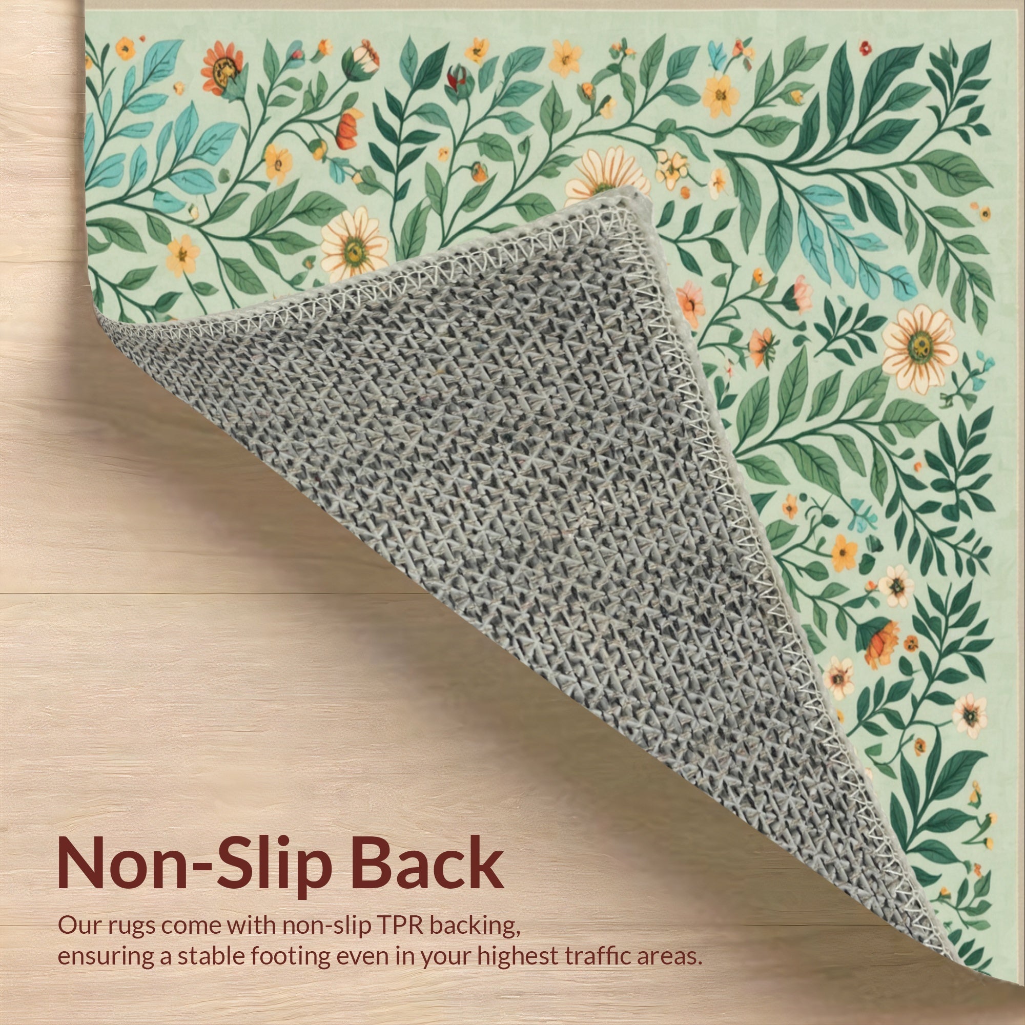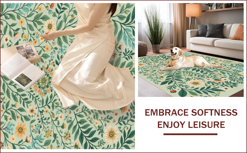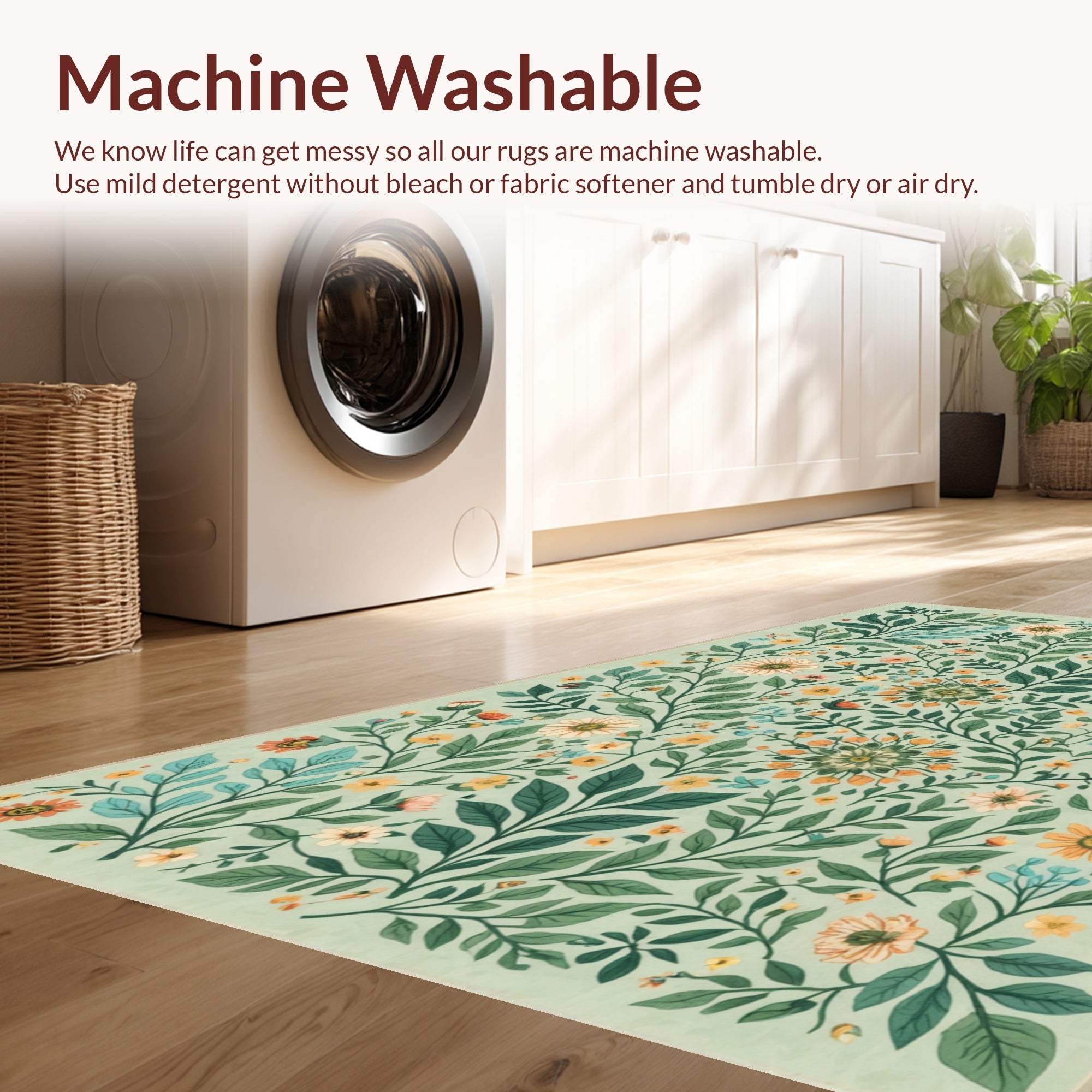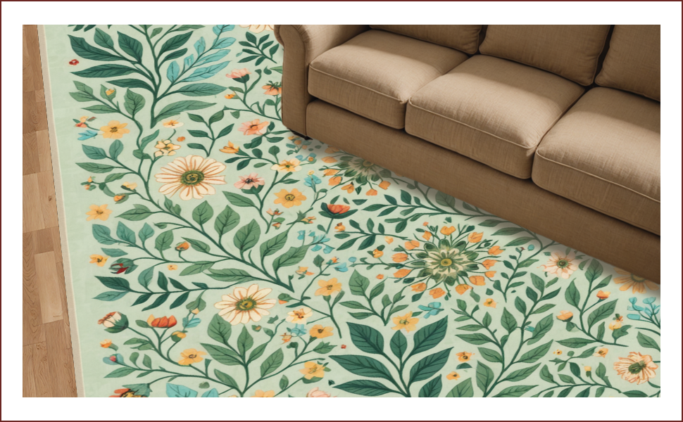 Ultra Soft Area Rug, Non Slip, Stain Resistant, Washable Area Rugs for Living Room, Bedroom, Botanical Insect Boho Floral(Green) Overview: