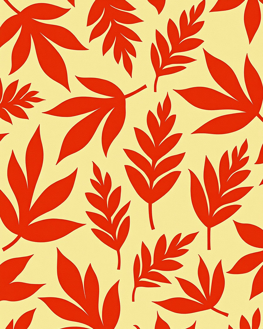 Botanical Leaf Arrangement with Stylized Floral Details(Red)