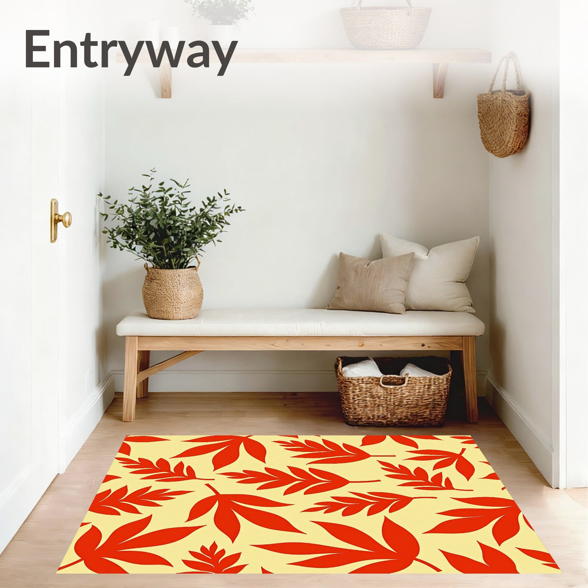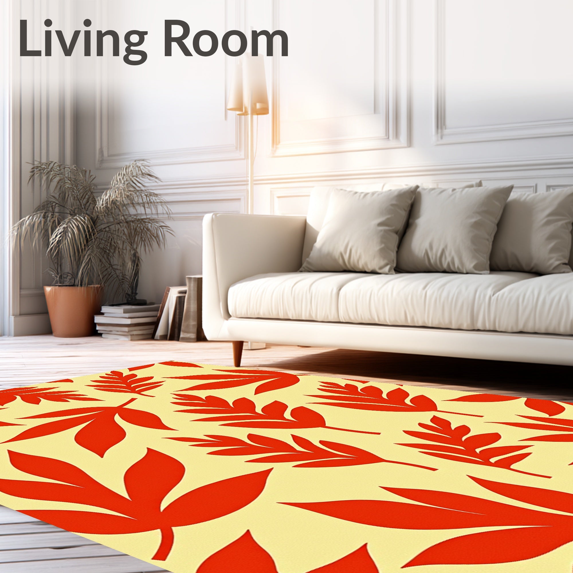 Ultra Soft Area Rug, Non Slip, Stain Resistant, Washable Area Rugs for Living Room, Bedroom, Botanical Leaf Arrangement with Stylized Floral Details(Red) Overview: