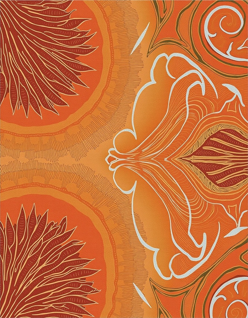 Botanical Leaf Vine Swirl Abstract Artistic Decorative Fancy(Orange)