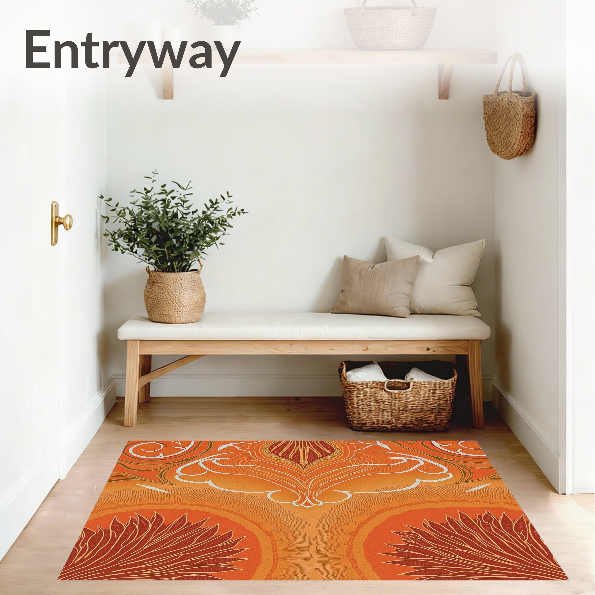 Ultra Soft Area Rug, Non Slip, Stain Resistant, Washable Area Rugs for Living Room, Bedroom, Botanical Leaf Vine Swirl Abstract Artistic Decorative Fancy(Orange) Overview: