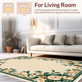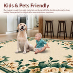 Ultra Soft Area Rug, Non Slip, Stain Resistant, Washable Area Rugs for Living Room, Bedroom, Botanical Plaid Floral(Beige) Overview: