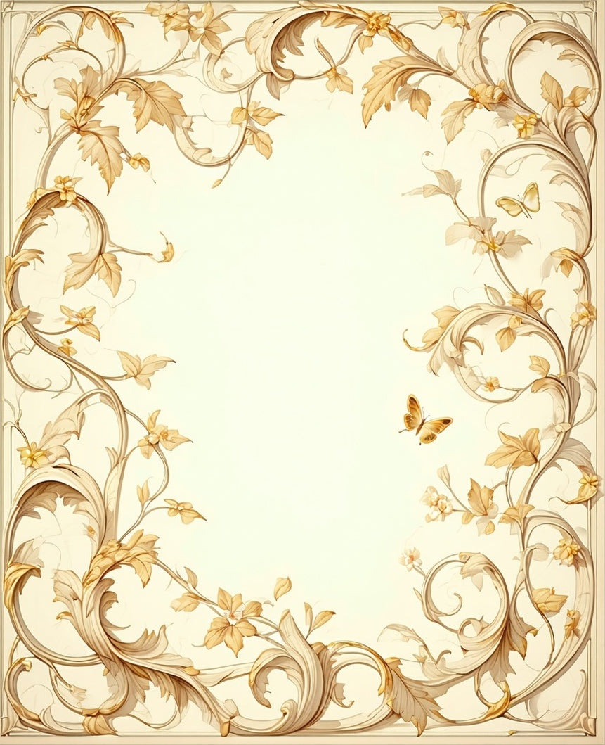 Botanical Scrollwork with Elegant Leafy Vines and Baroque Flourishes(Beige)