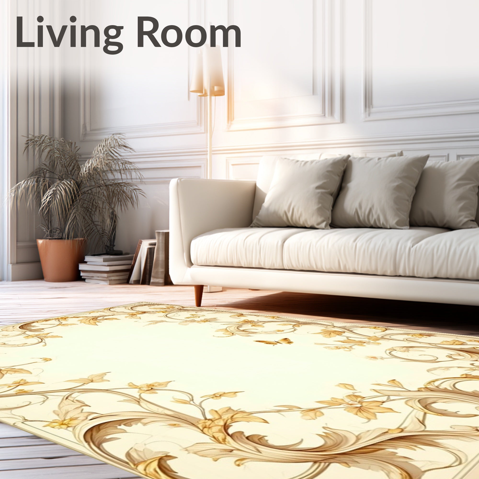 Flatwoven High Traffic Area Rug, Botanical Scrollwork with Elegant Leafy Vines and Baroque Flourishes, Non Slip, Stain Resistant, Washable Area Rugs for Living Room, Bedroom (Beige) Overview: