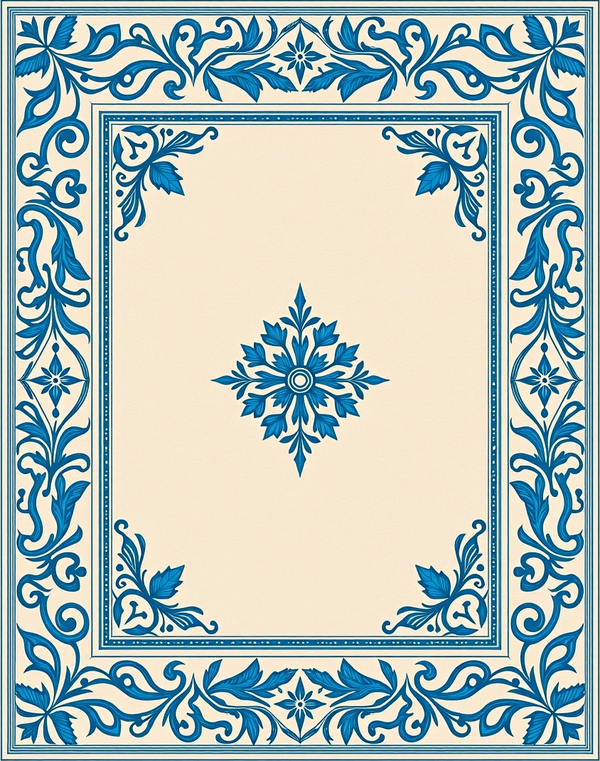Botanical Scrollwork with Lattice Floral Filigree(Blue)
