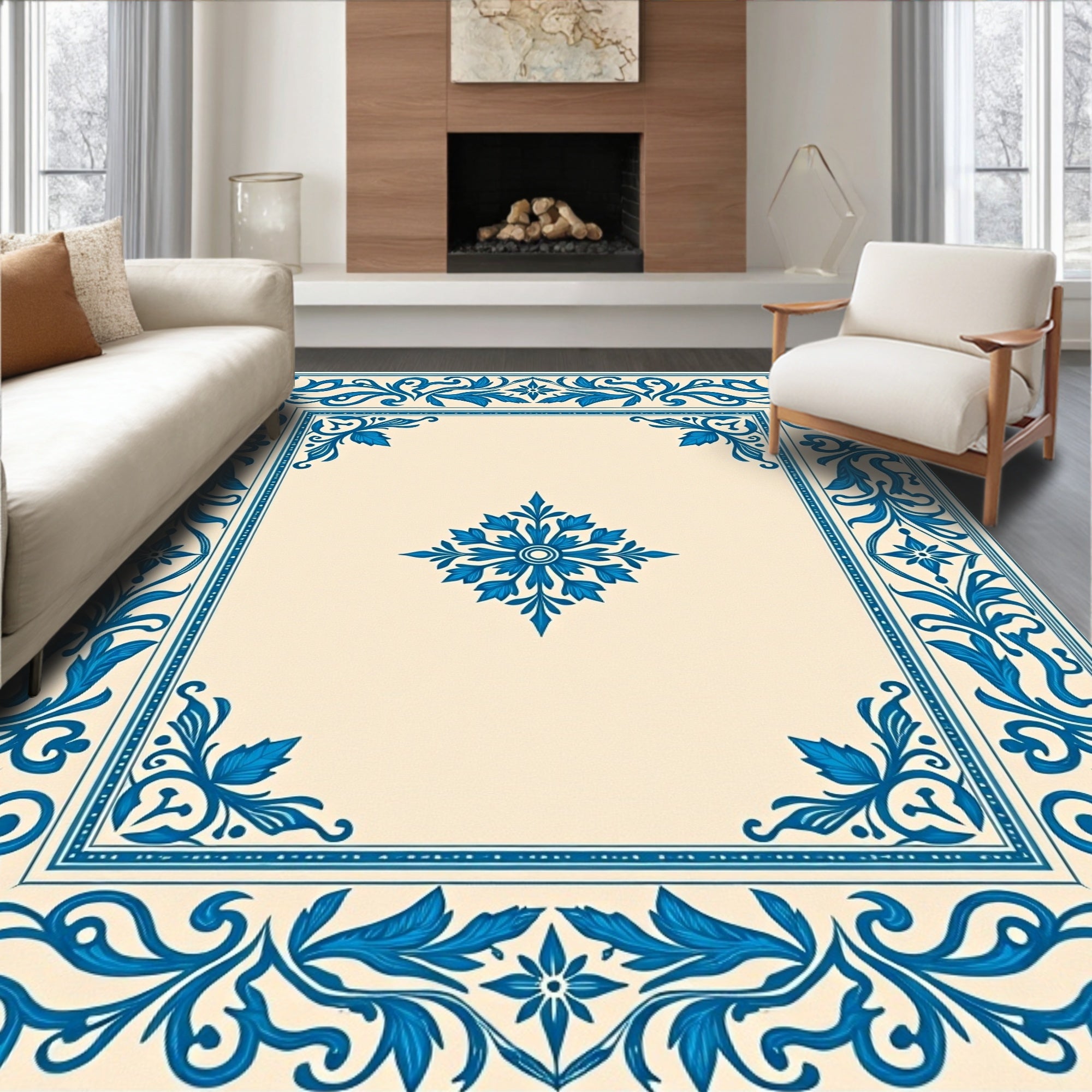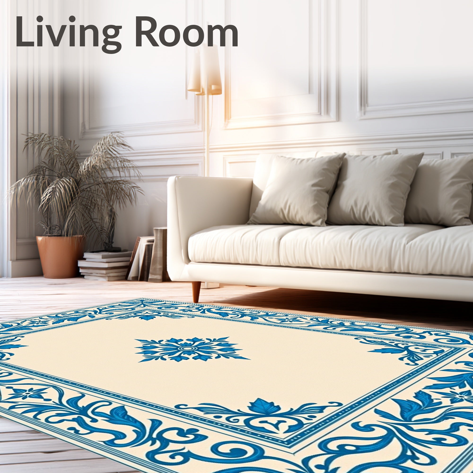 Flatwoven High Traffic Area Rug, Botanical Scrollwork with Lattice Floral Filigree, Non Slip, Stain Resistant, Washable Area Rugs for Living Room, Bedroom (Blue) Overview: