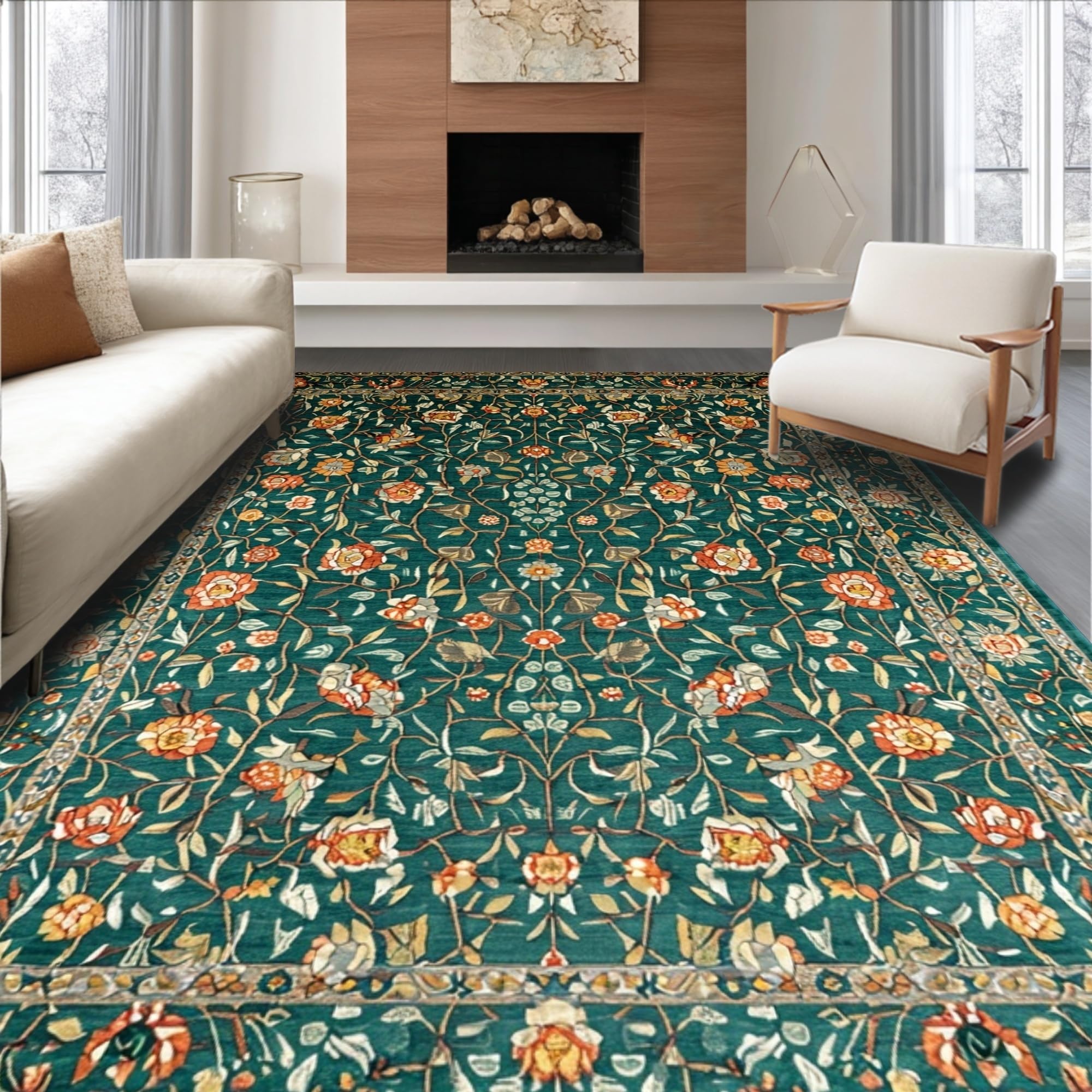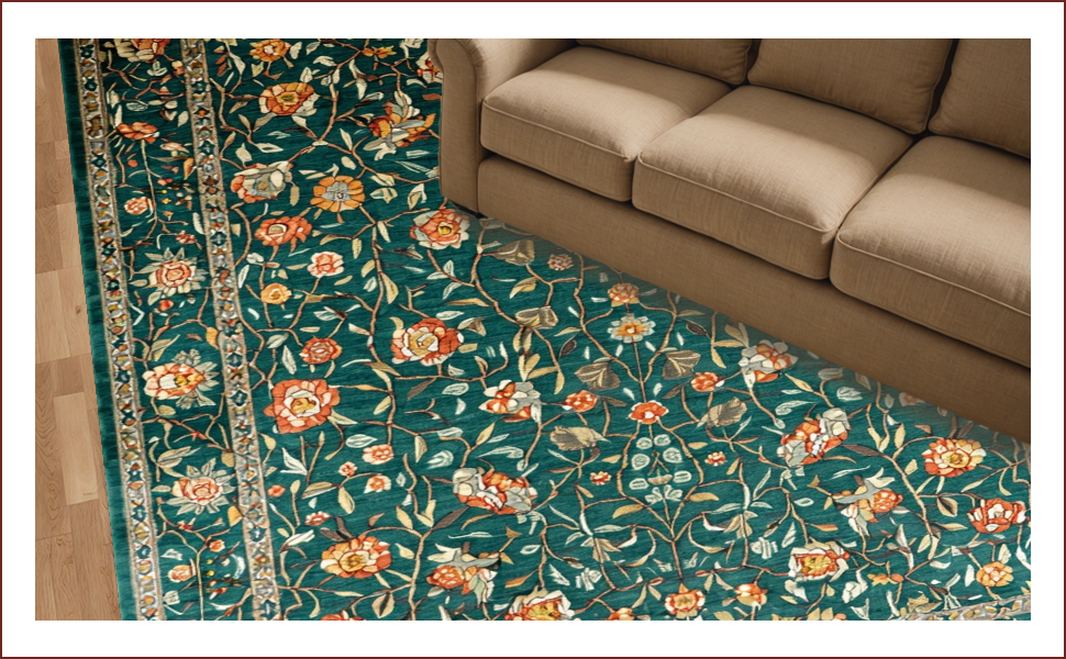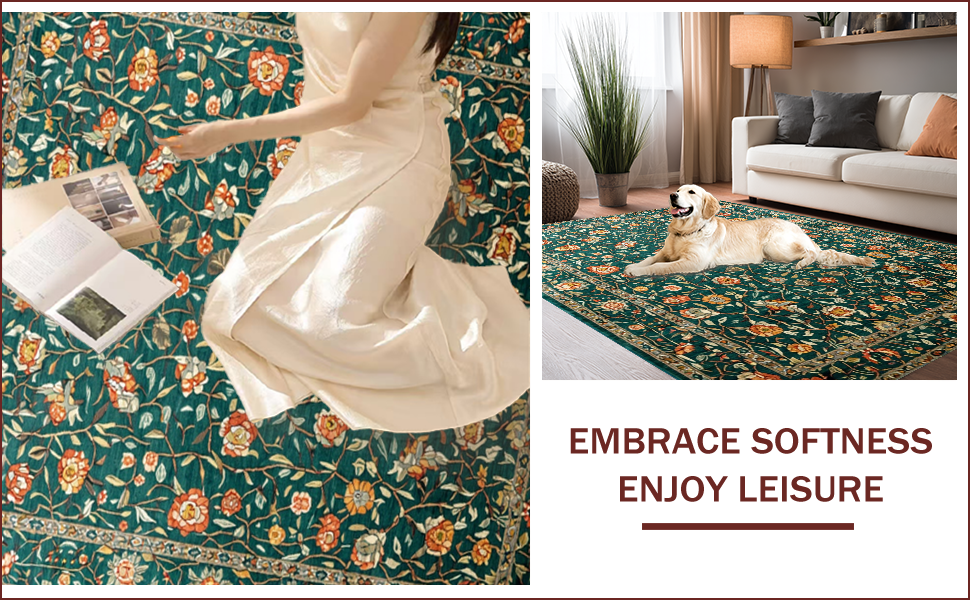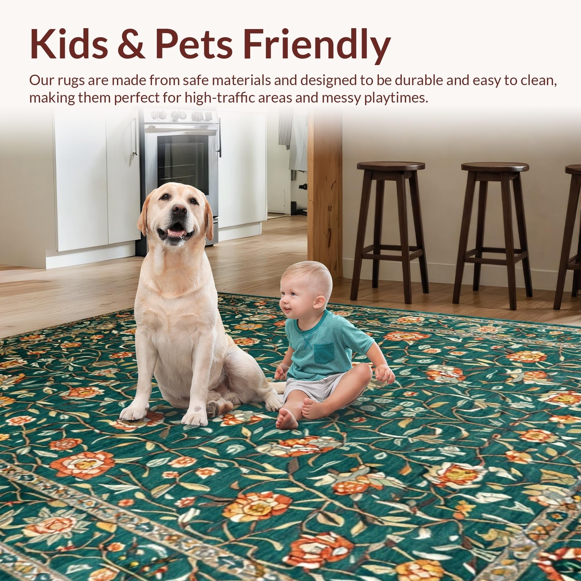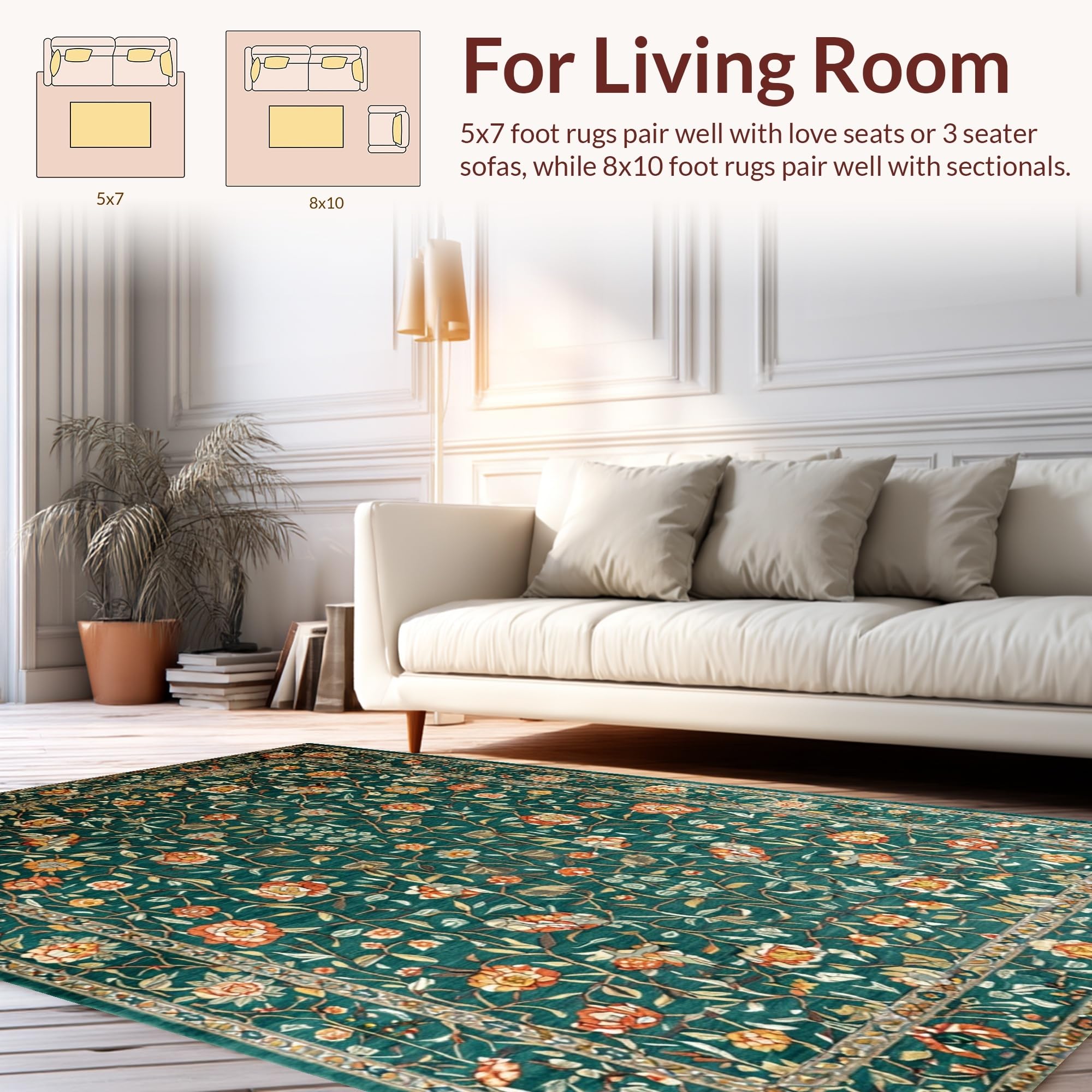 Ultra Soft Area Rug, Non Slip, Stain Resistant, Washable Area Rugs for Living Room, Bedroom, Botanical Shaggy Earthy Charm(Green) Overview: