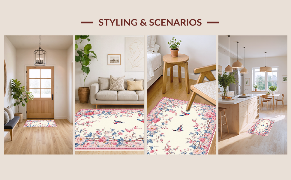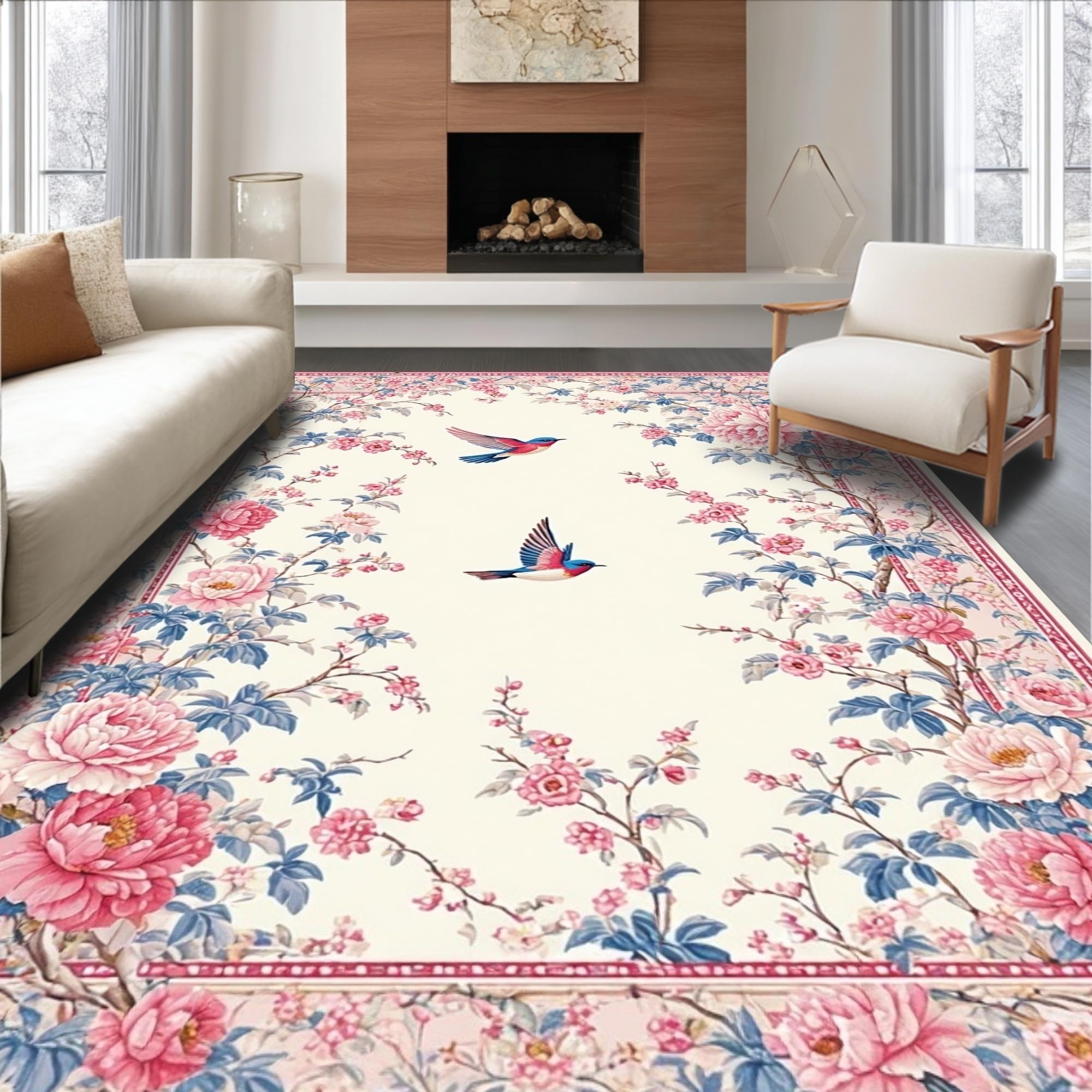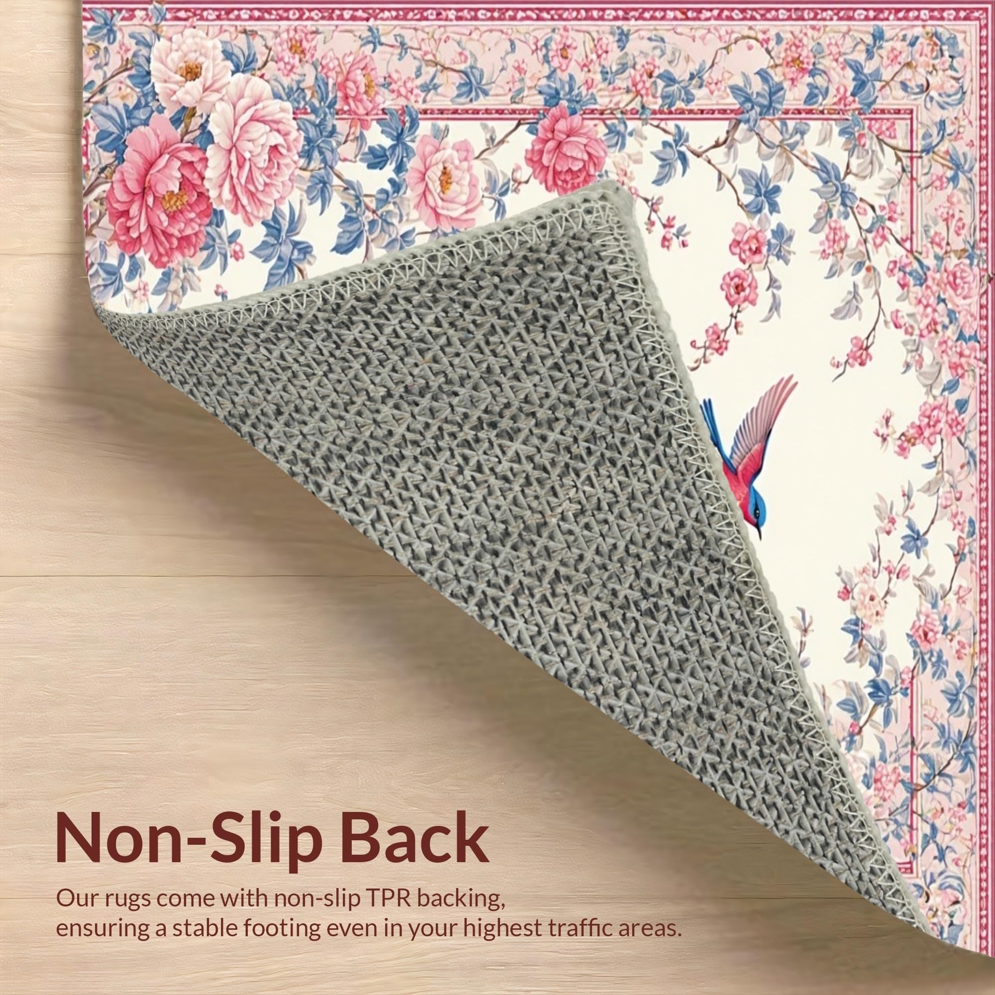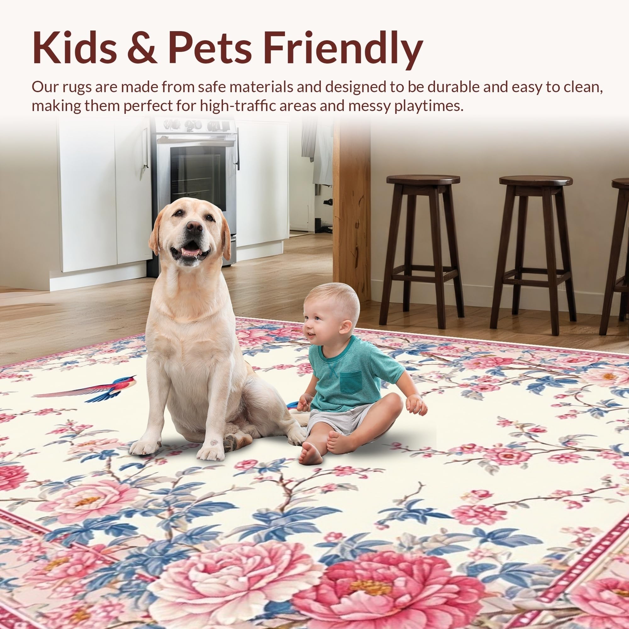 Ultra Soft Area Rug, Non Slip, Stain Resistant, Washable Area Rugs for Living Room, Bedroom, Bright Cheerful Garden Motif(Ivory) Overview: