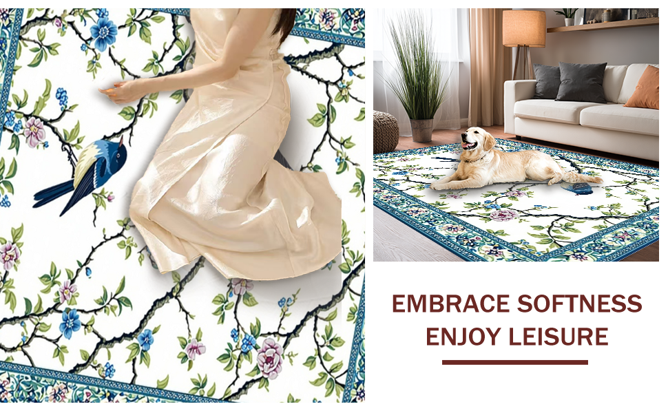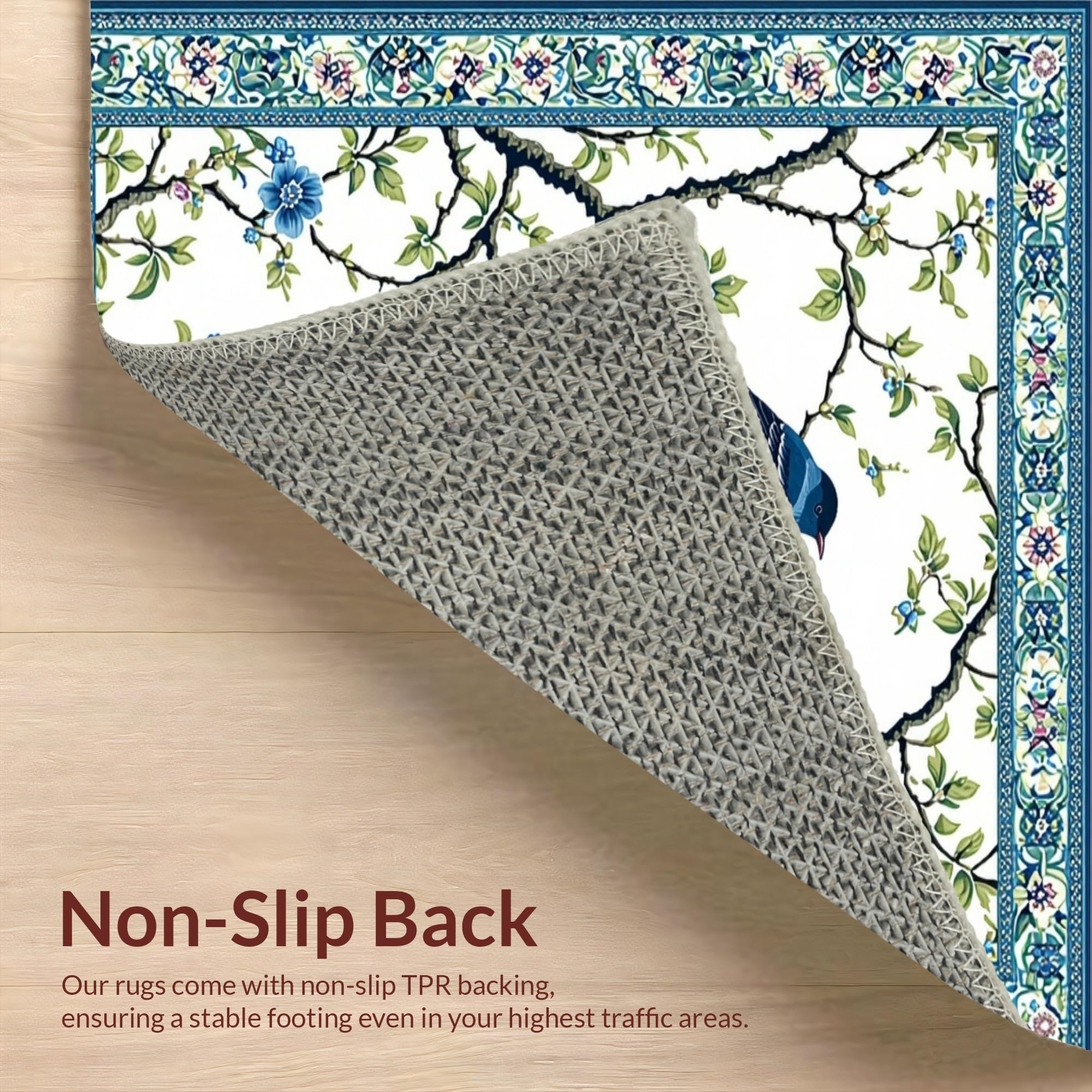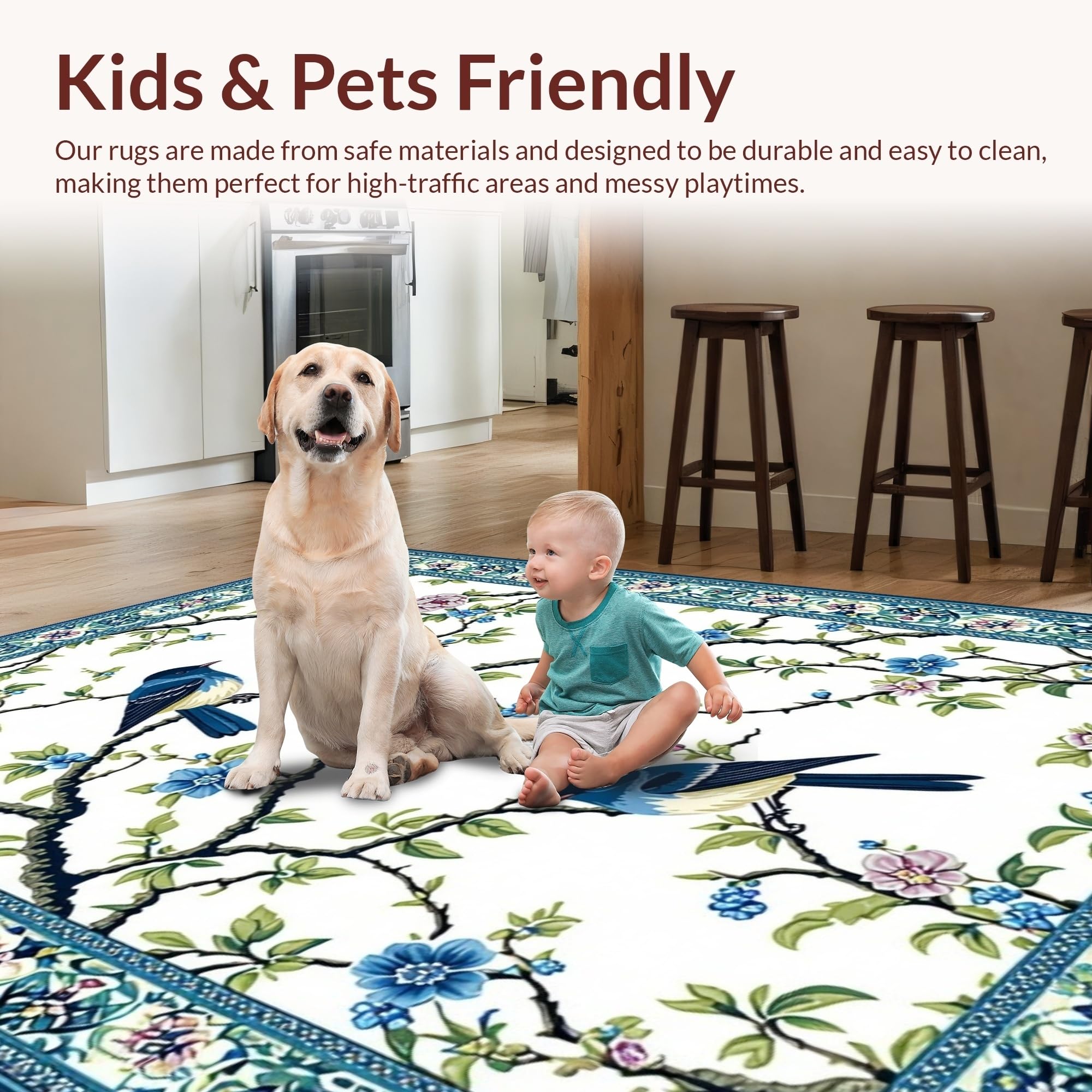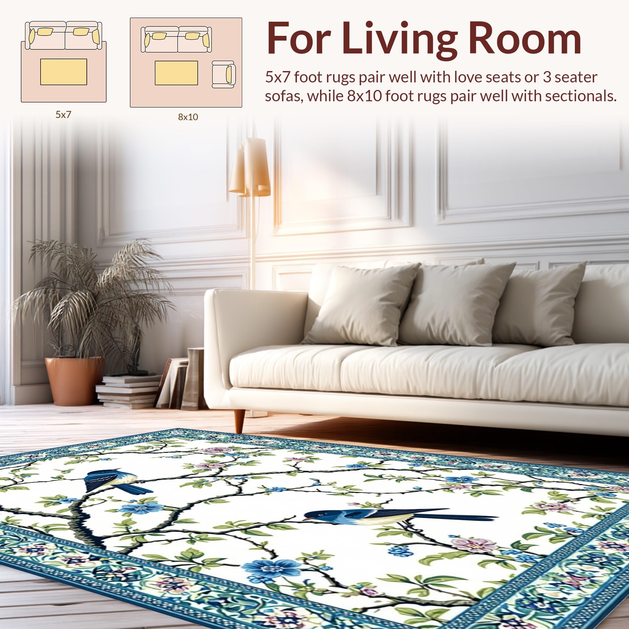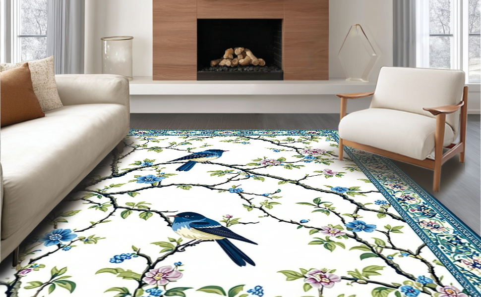 Ultra Soft Area Rug, Non Slip, Stain Resistant, Washable Area Rugs for Living Room, Bedroom, Bright Cheerful Rustic Nesting Elements(White) Overview:
