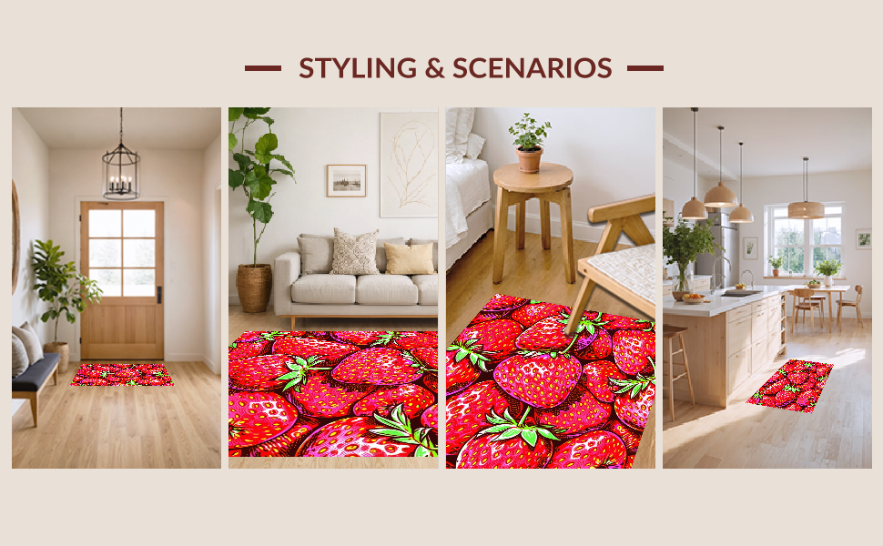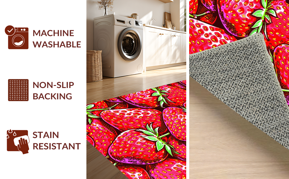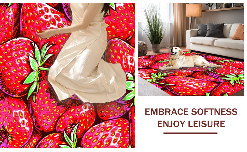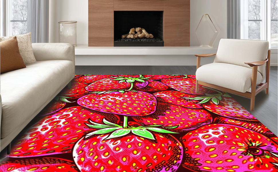 Ultra Soft Area Rug, Non Slip, Stain Resistant, Washable Area Rugs for Living Room, Bedroom, Bright Cheerful Strawberry Theme(Red) Overview: