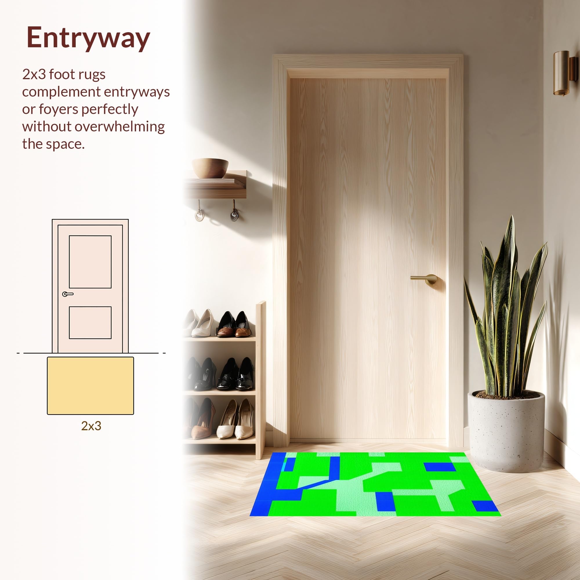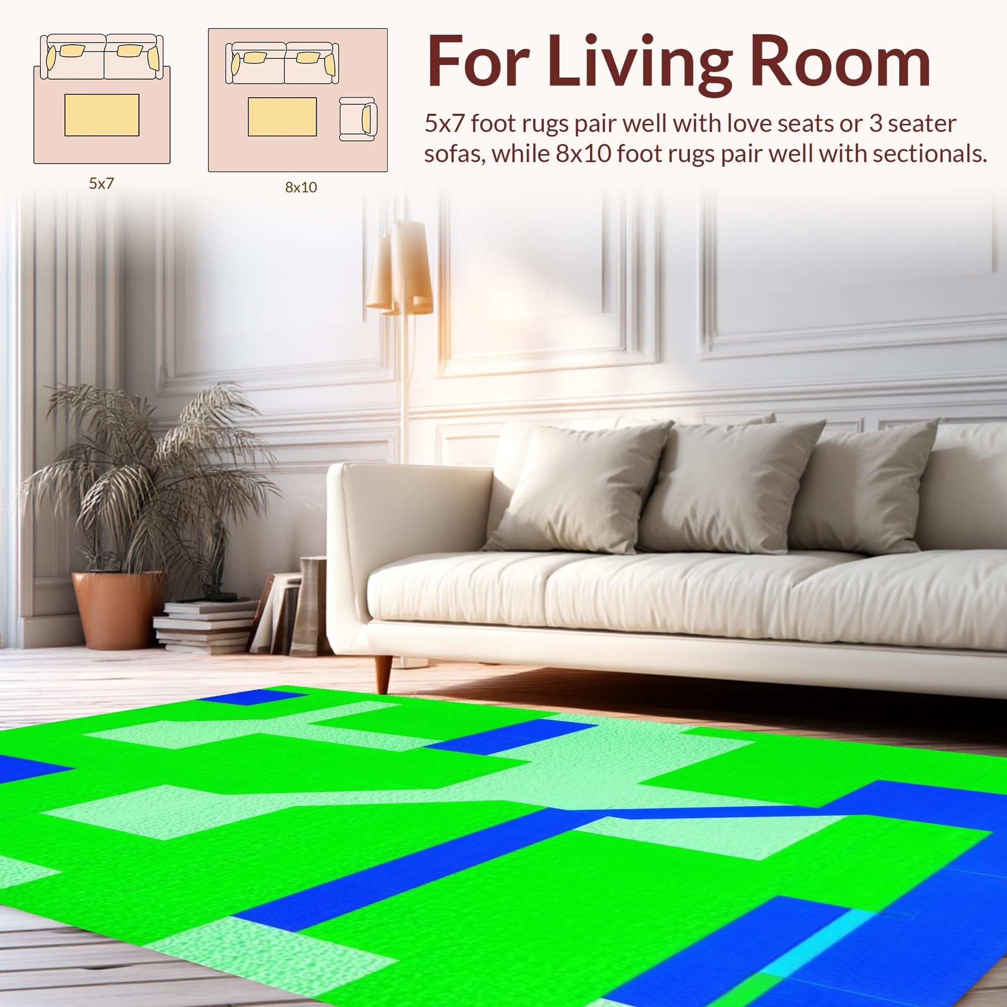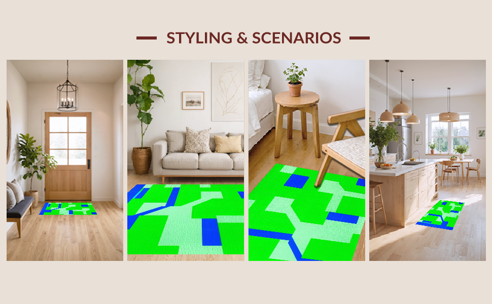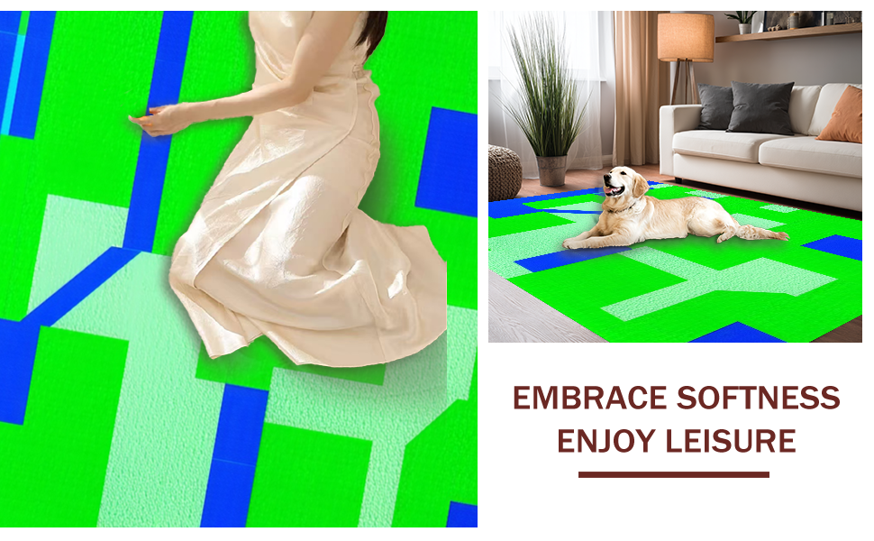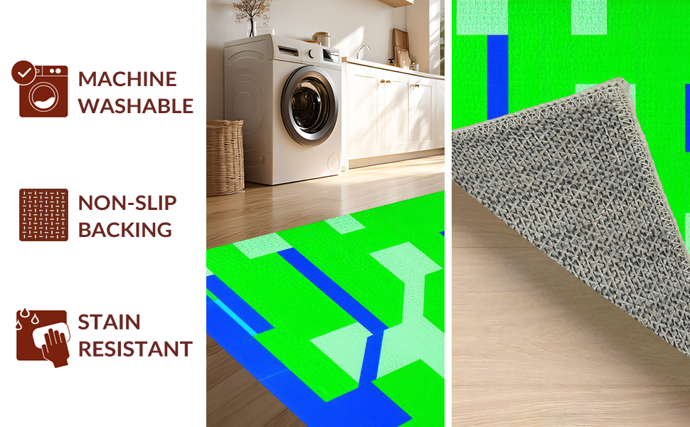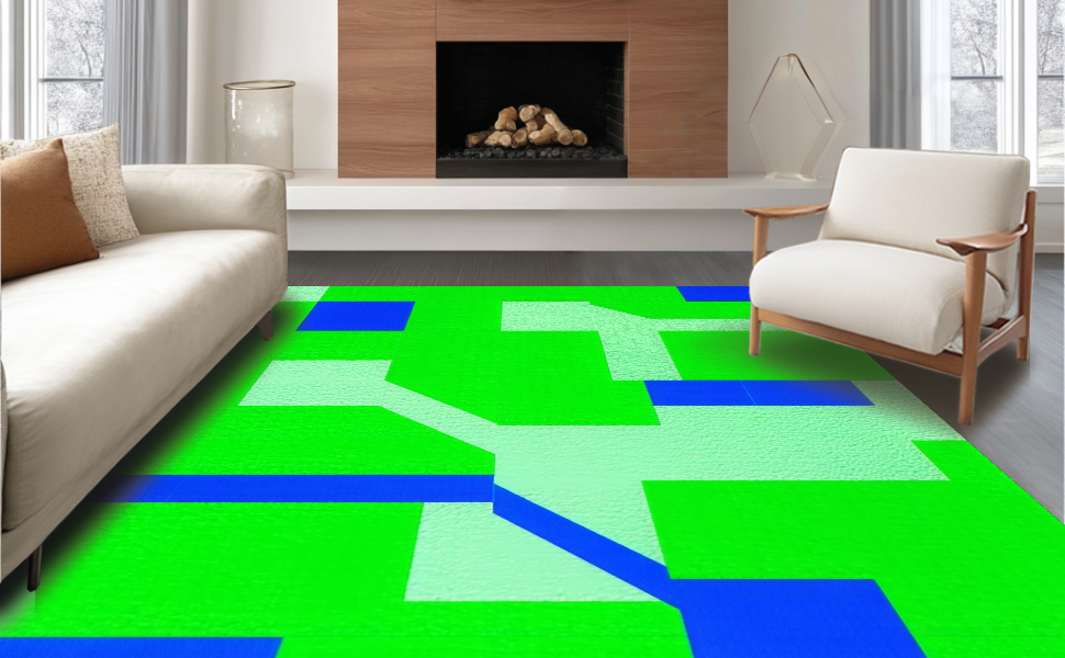 Ultra Soft Area Rug, Non Slip, Stain Resistant, Washable Area Rugs for Living Room, Bedroom, Bright Colorful Intersection Design(Green) Overview: