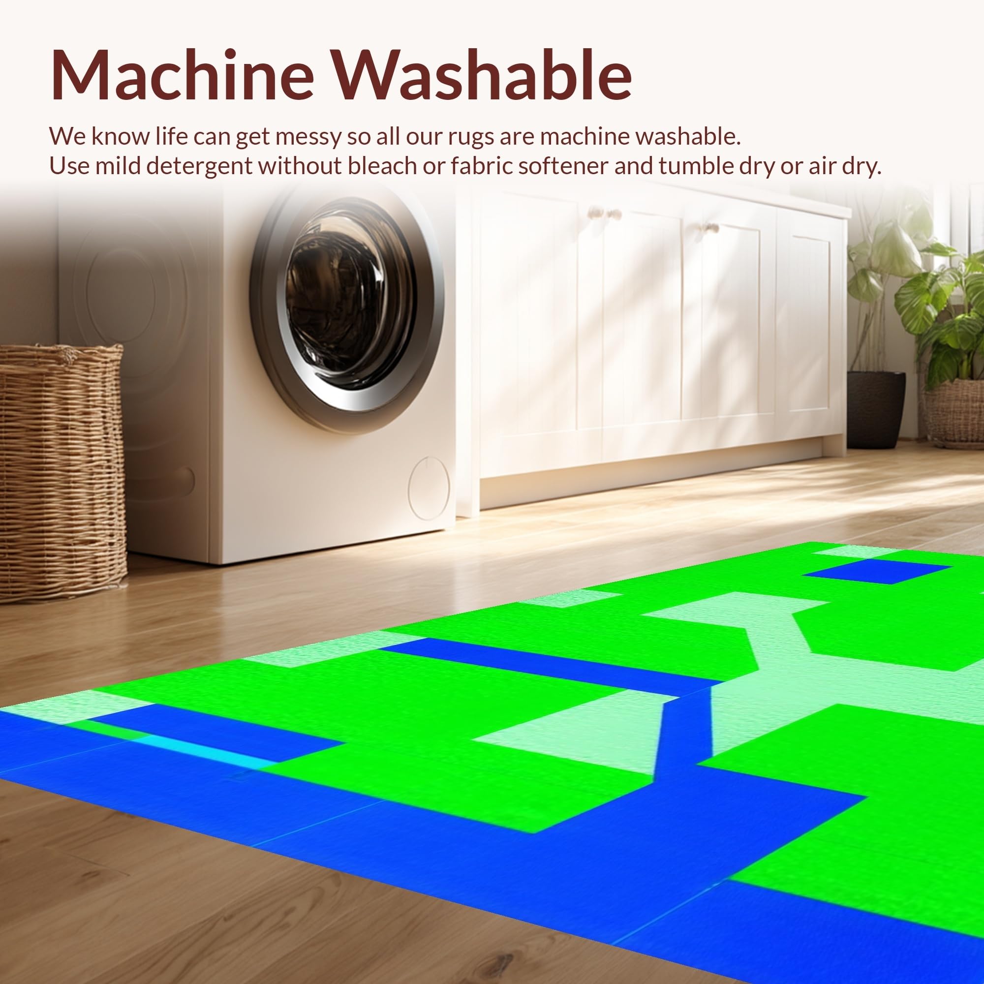 - Machine Washable: Our rugs can be easily thrown in the wash machine.