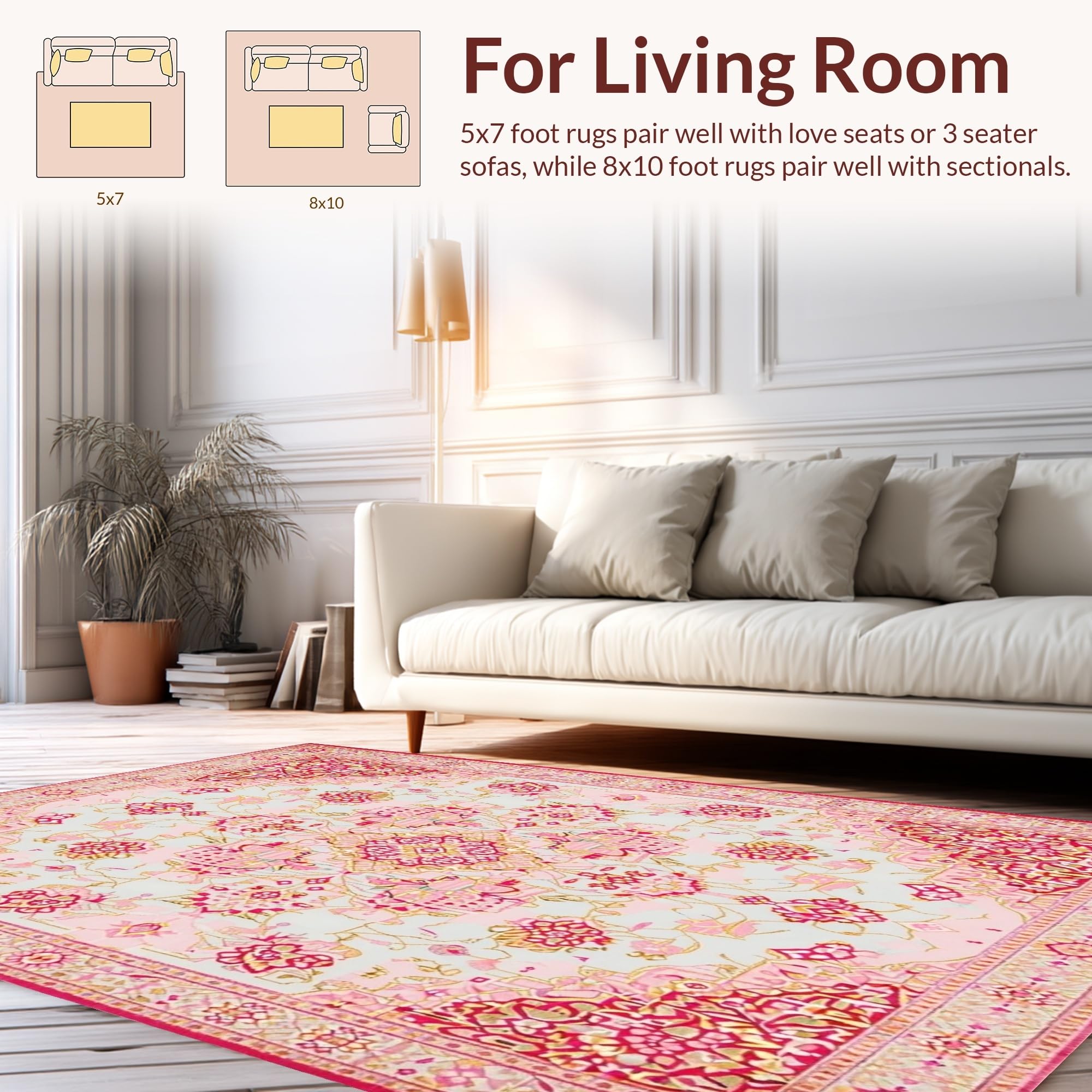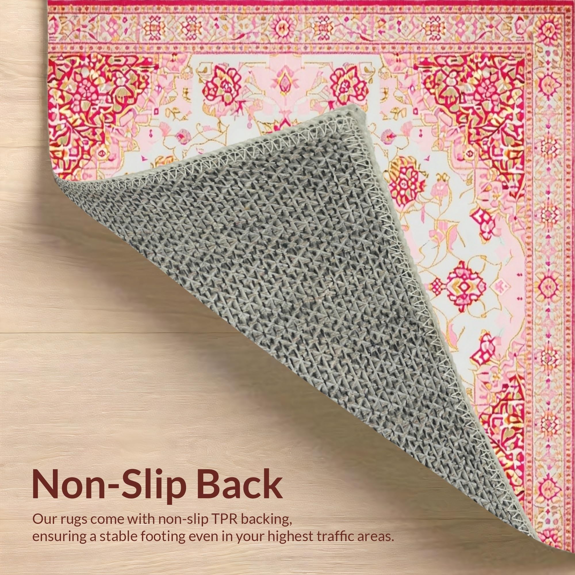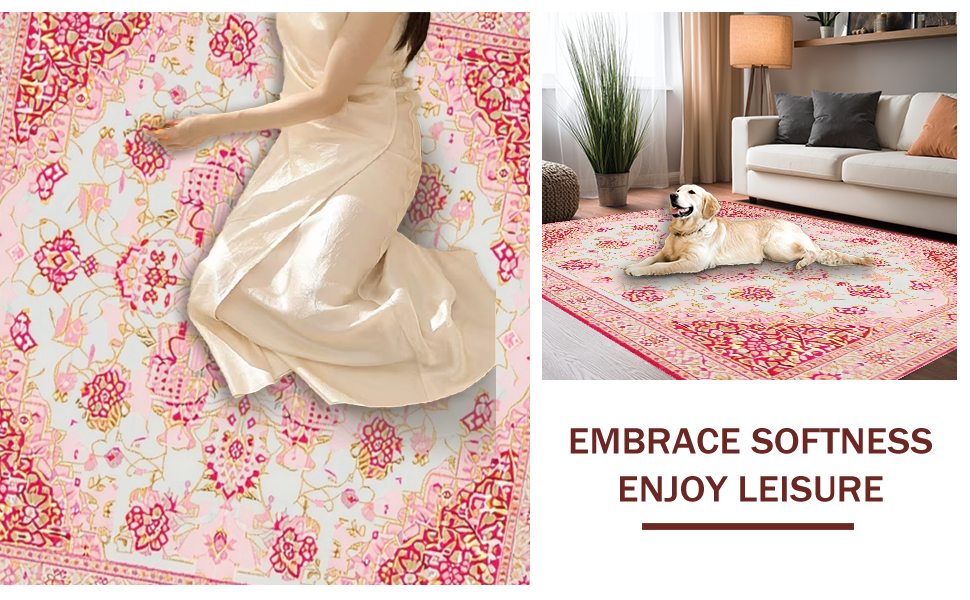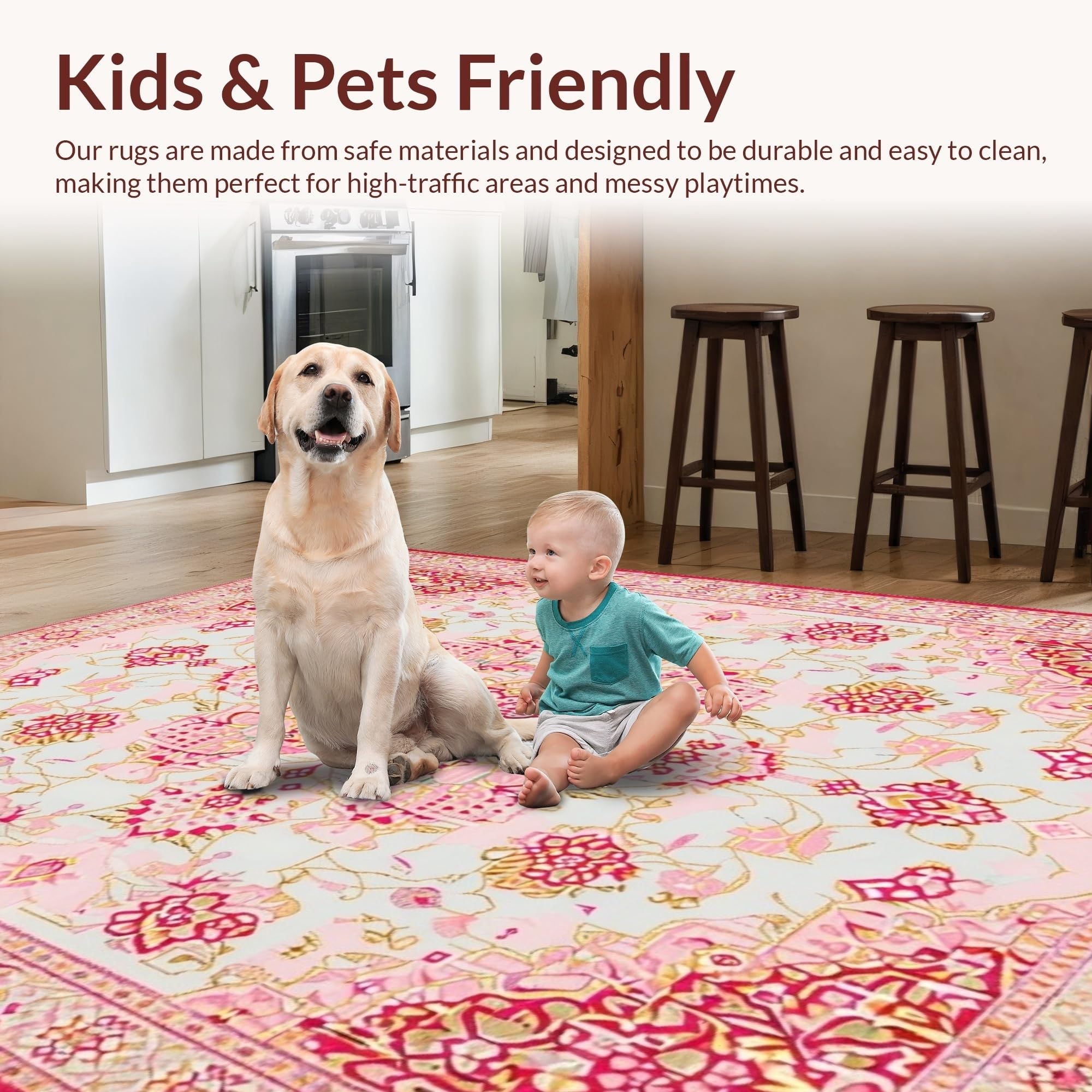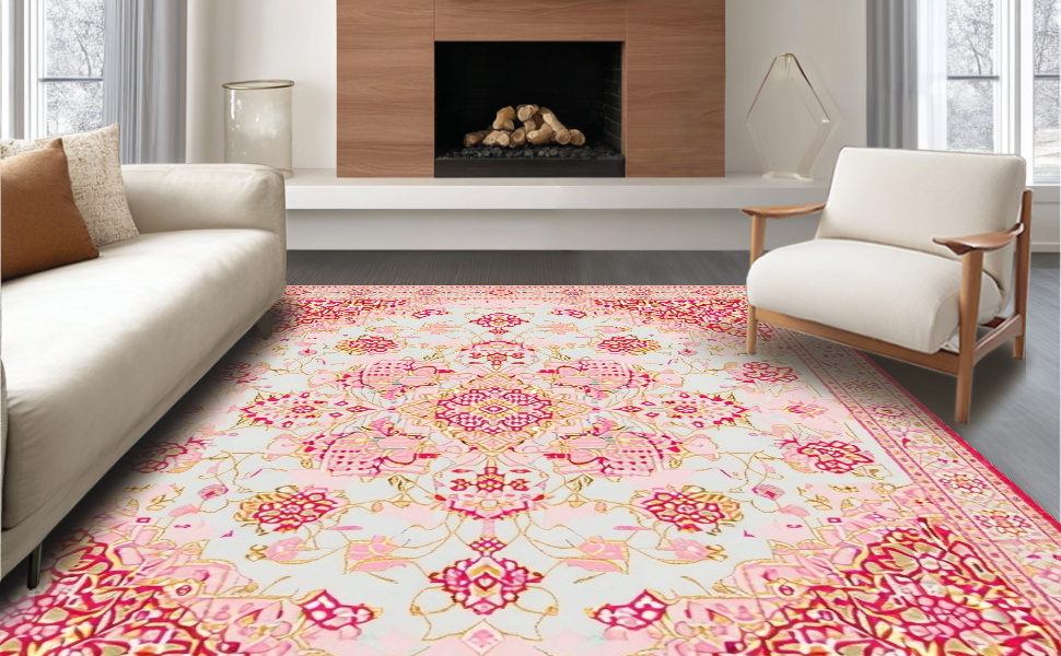 Ultra Soft Area Rug, Non Slip, Stain Resistant, Washable Area Rugs for Living Room, Bedroom, Bright Contemporary Geometric Visual(Pink) Overview: