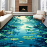 Flatwoven High Traffic Area Rug, Bright Cool Hues with Imagery, Non Slip, Stain Resistant, Washable Area Rugs for Living Room, Bedroom (Green) Overview: