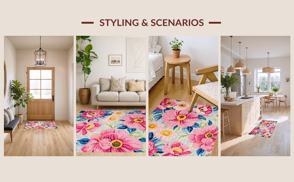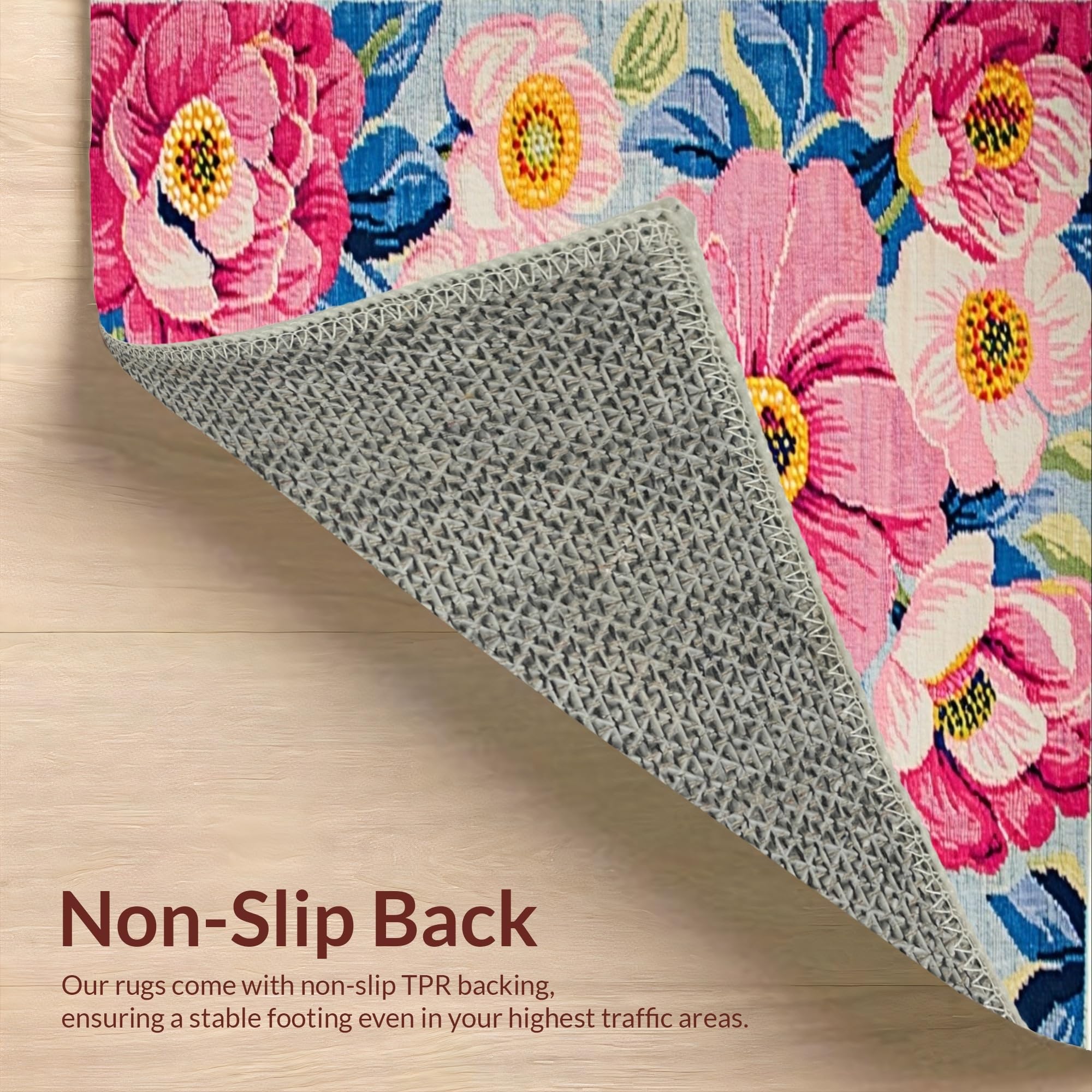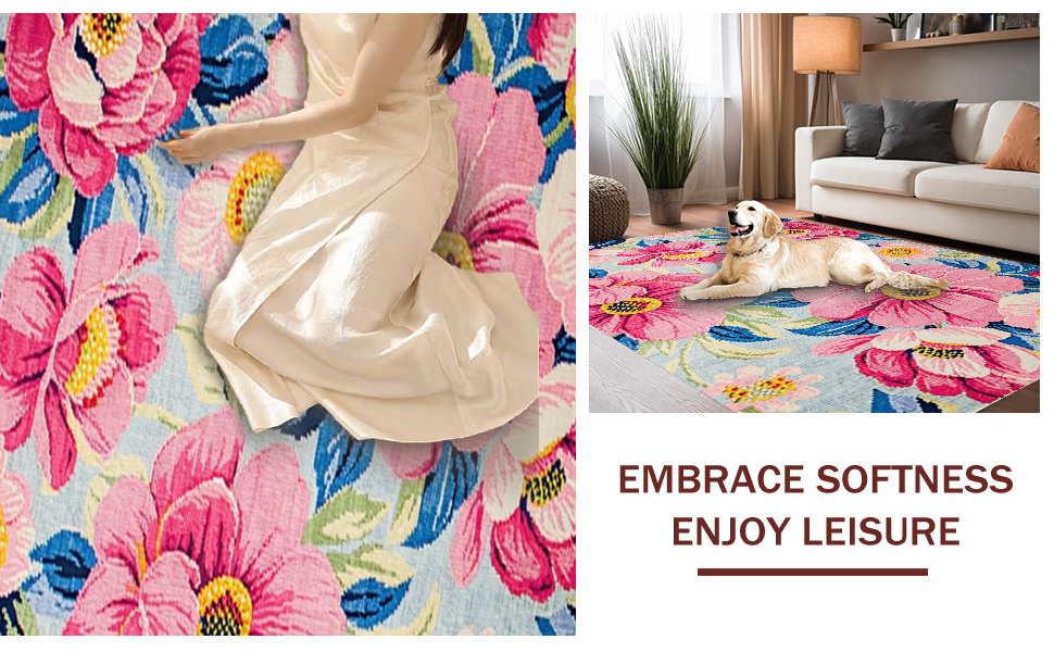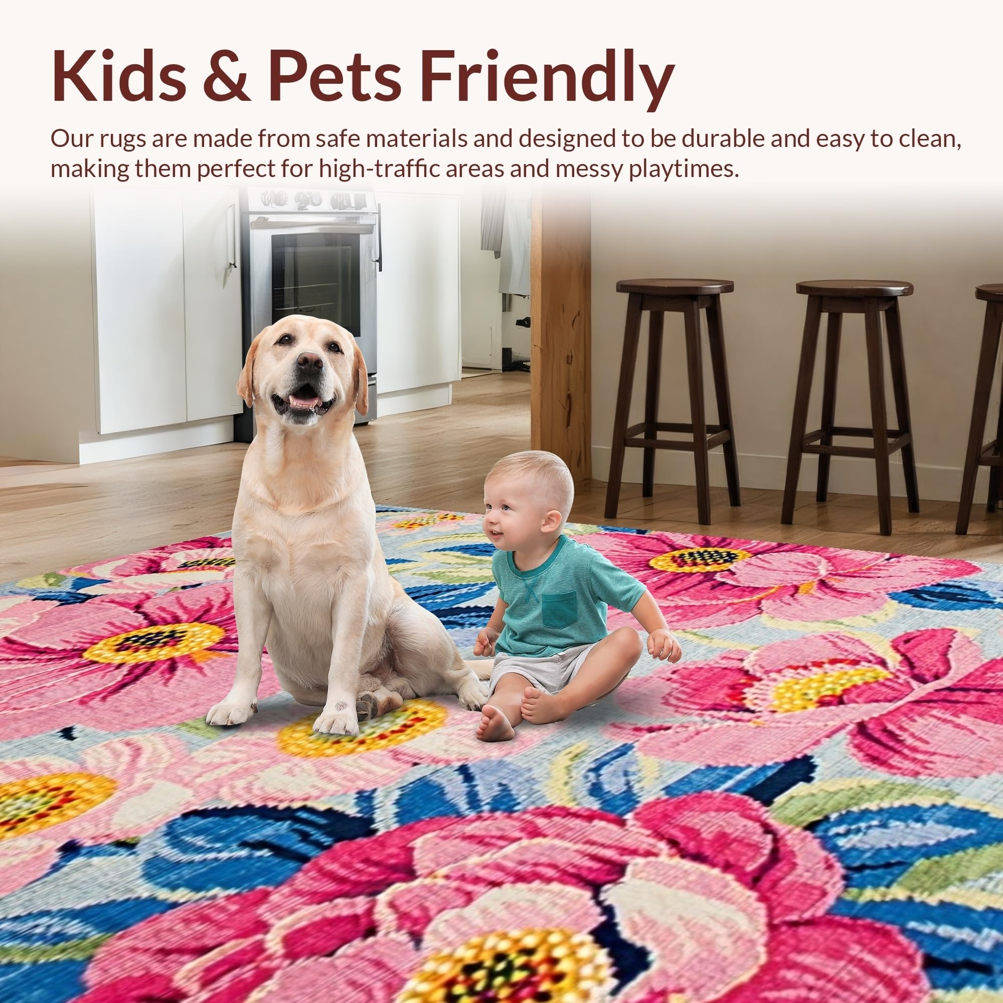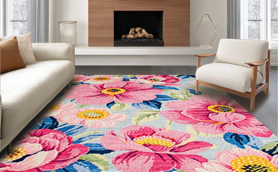 Ultra Soft Area Rug, Non Slip, Stain Resistant, Washable Area Rugs for Living Room, Bedroom, Bright Eclectic Floral Artwork(Pink) Overview: