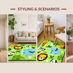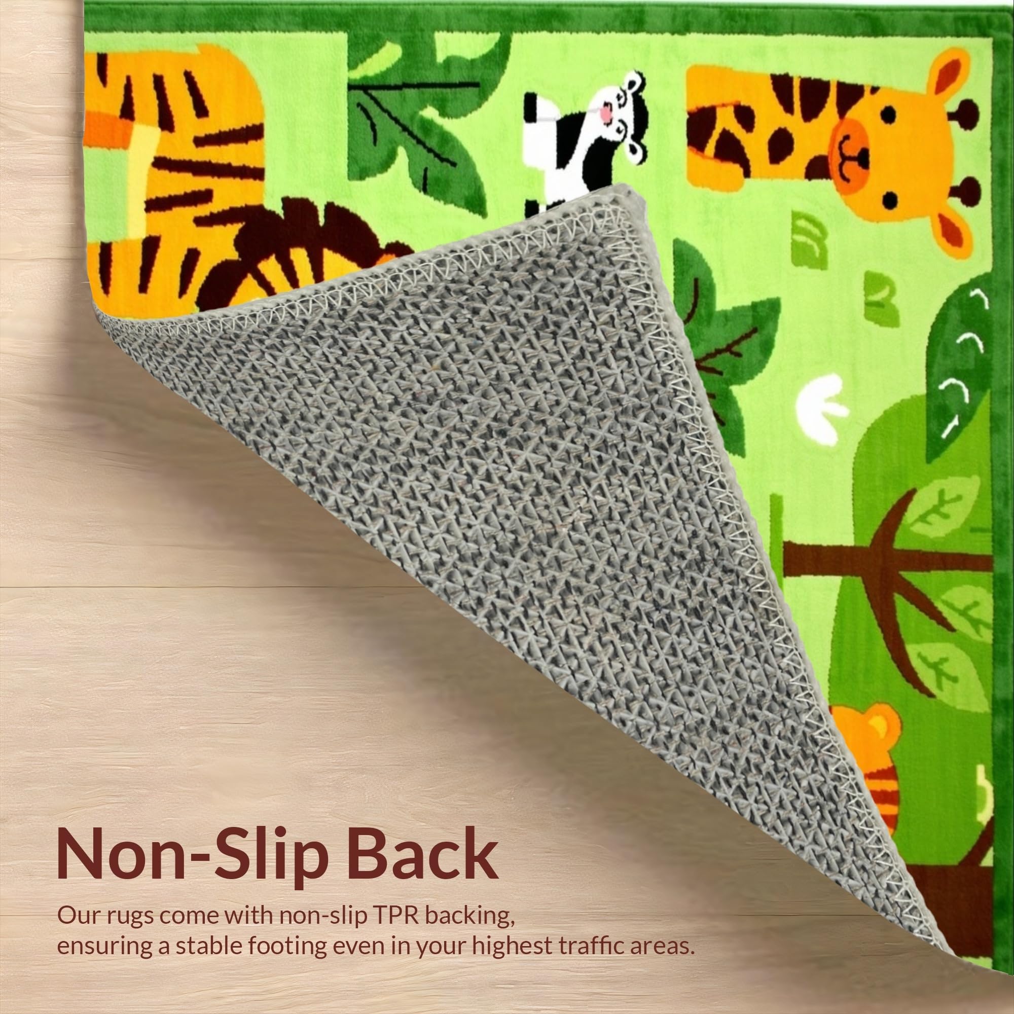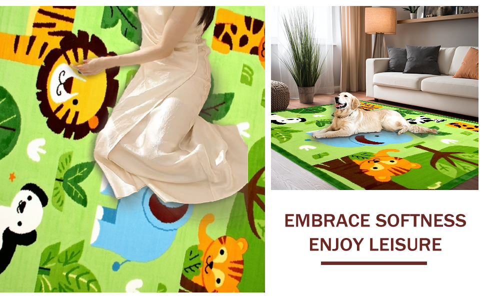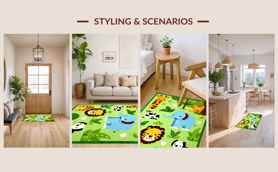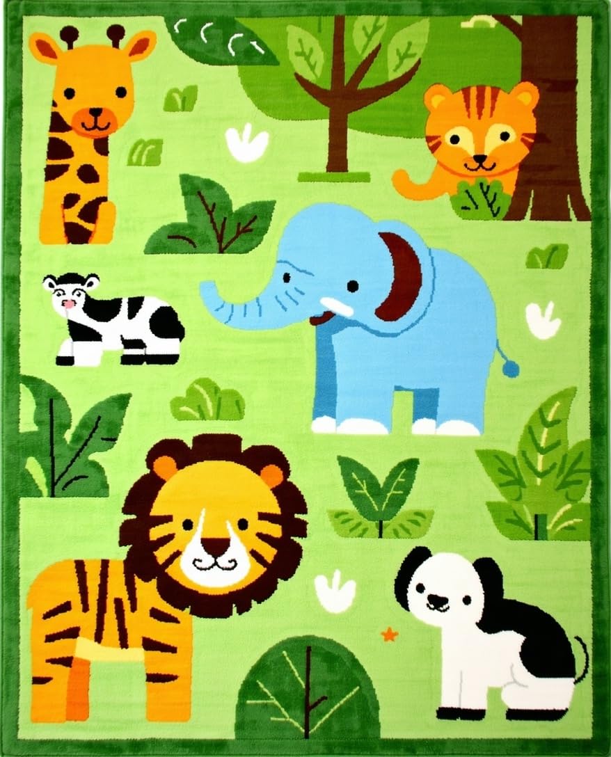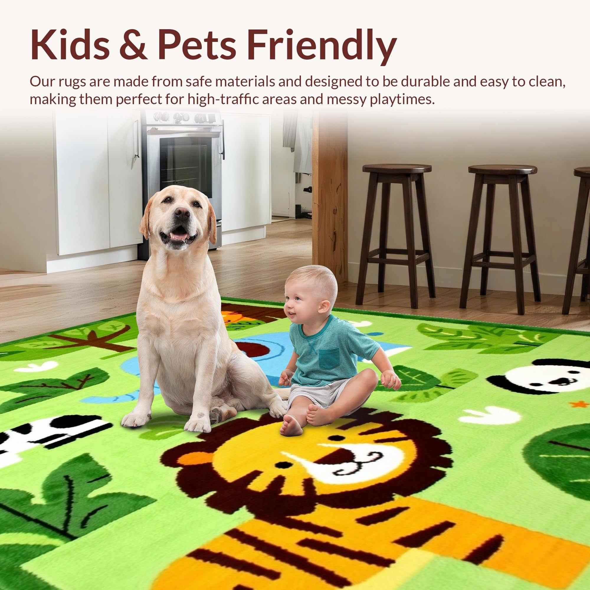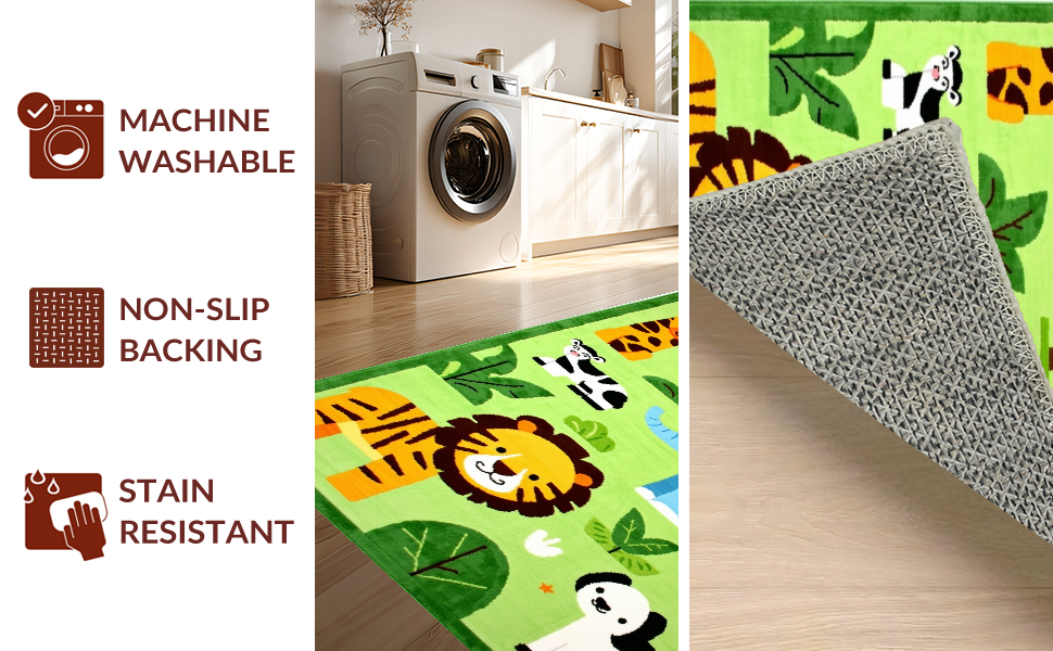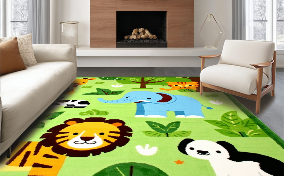 Ultra Soft Area Rug, Non Slip, Stain Resistant, Washable Area Rugs for Living Room, Bedroom, Bright Eclectic Wildlife Composition(Green) Overview: