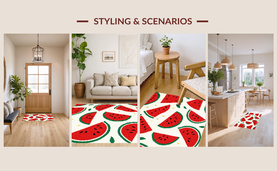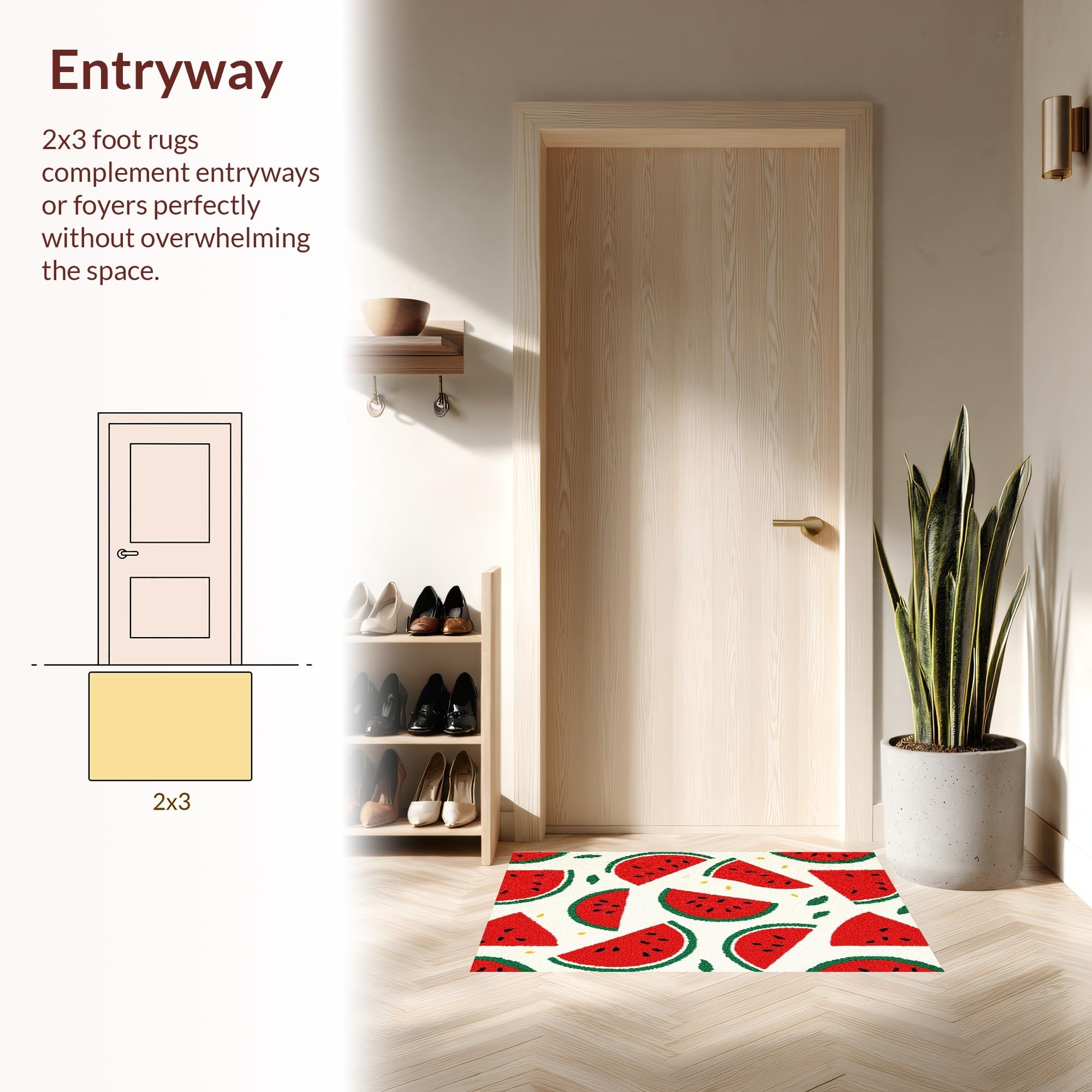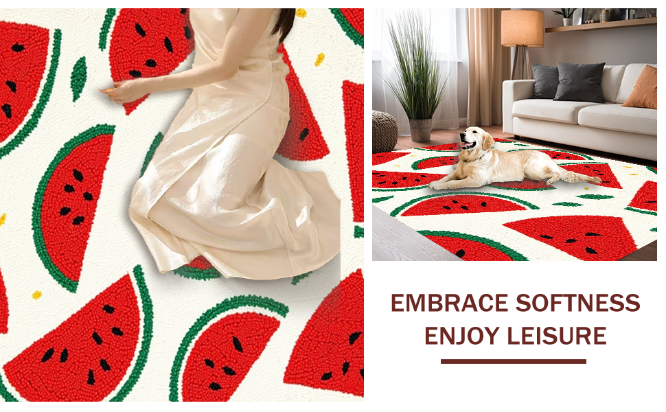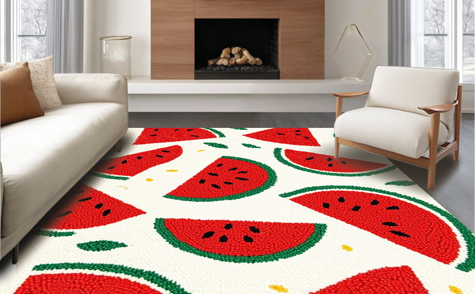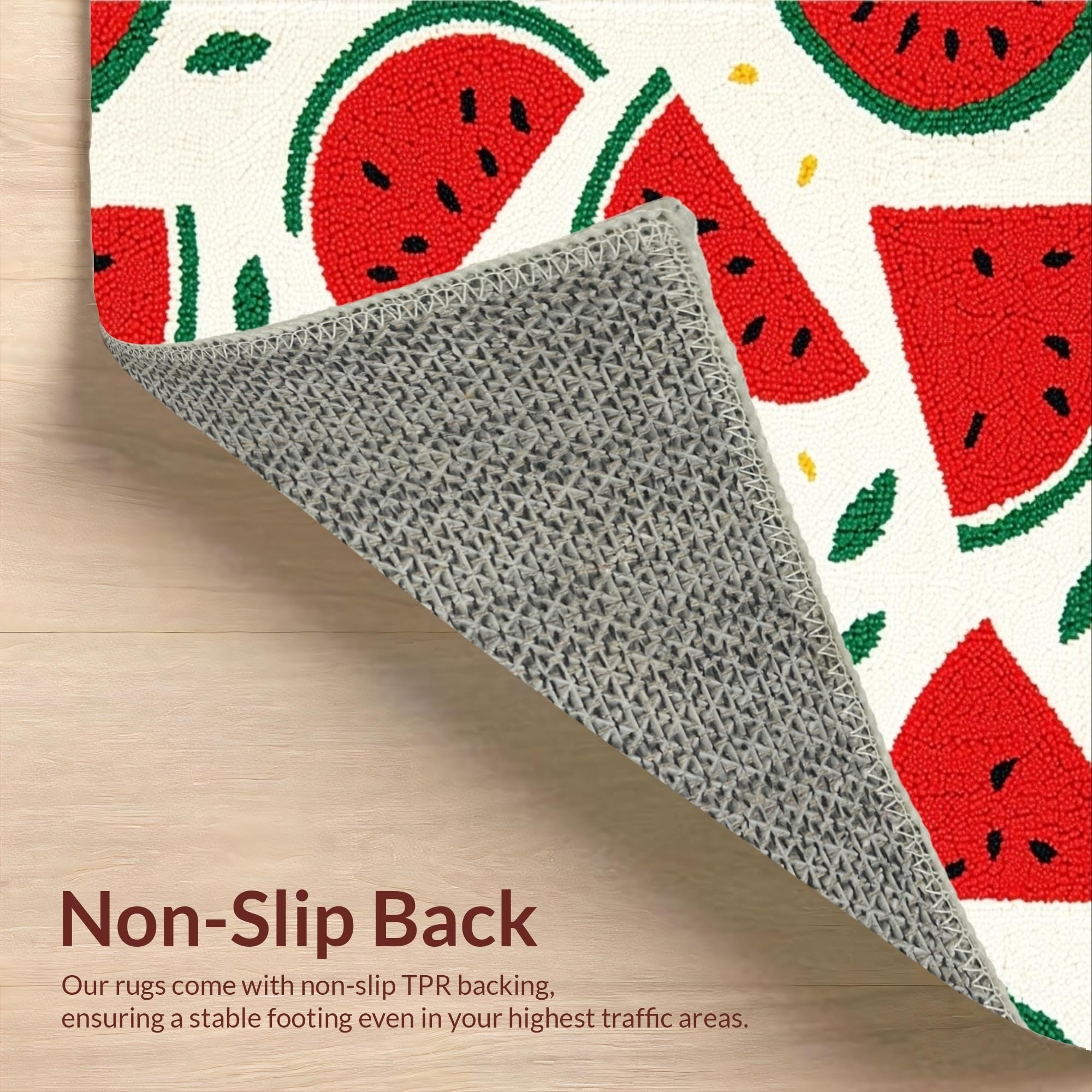Ultra Soft Area Rug, Non Slip, Stain Resistant, Washable Area Rugs for Living Room, Bedroom, Bright Fun Watermelon Artistry(Red) Overview: