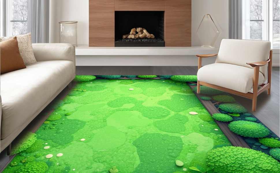 Ultra Soft Area Rug, Non Slip, Stain Resistant, Washable Area Rugs for Living Room, Bedroom, Bright Green Adventure Play Zone(Green) Overview:
