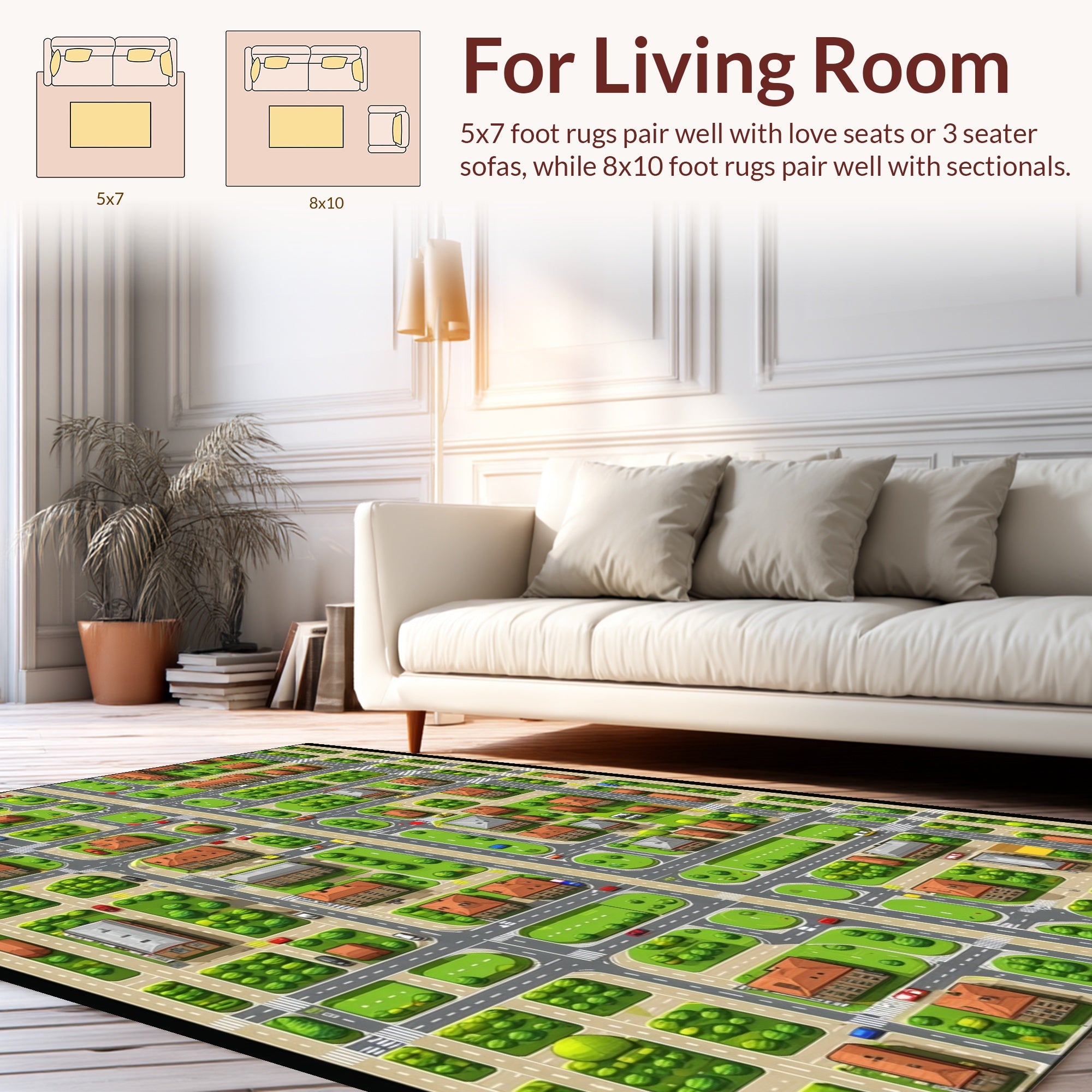 Flatwoven High Traffic Area Rug, Bright Multi Color Transportation Design, Non Slip, Stain Resistant, Washable Area Rugs for Living Room, Bedroom (Green) Overview: